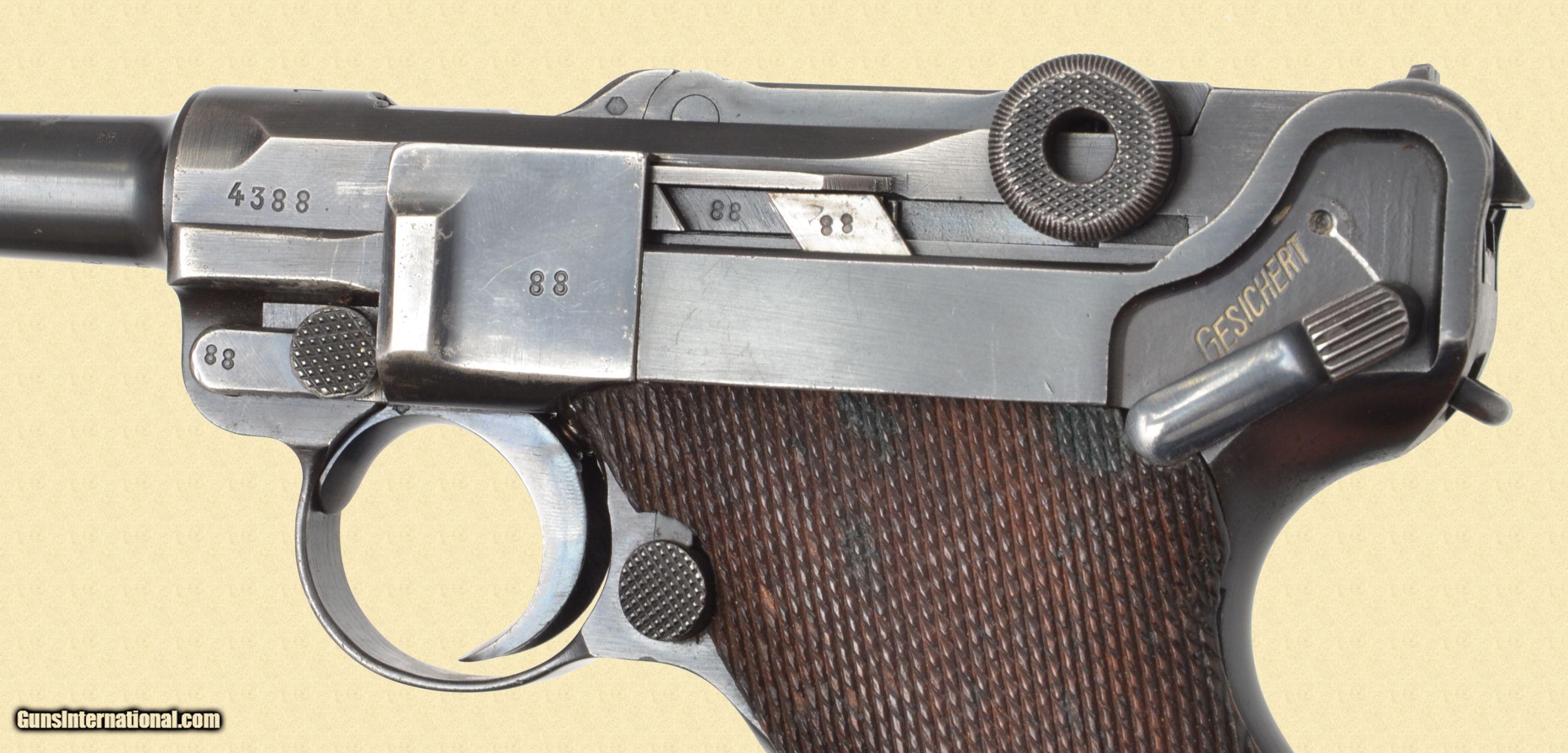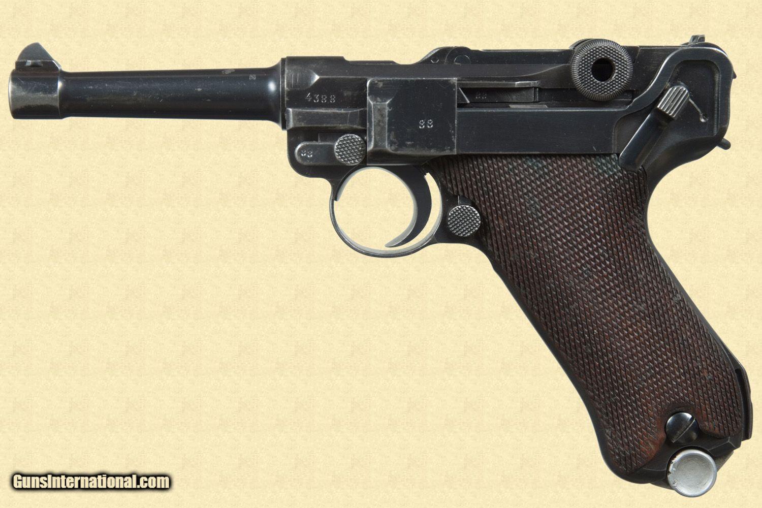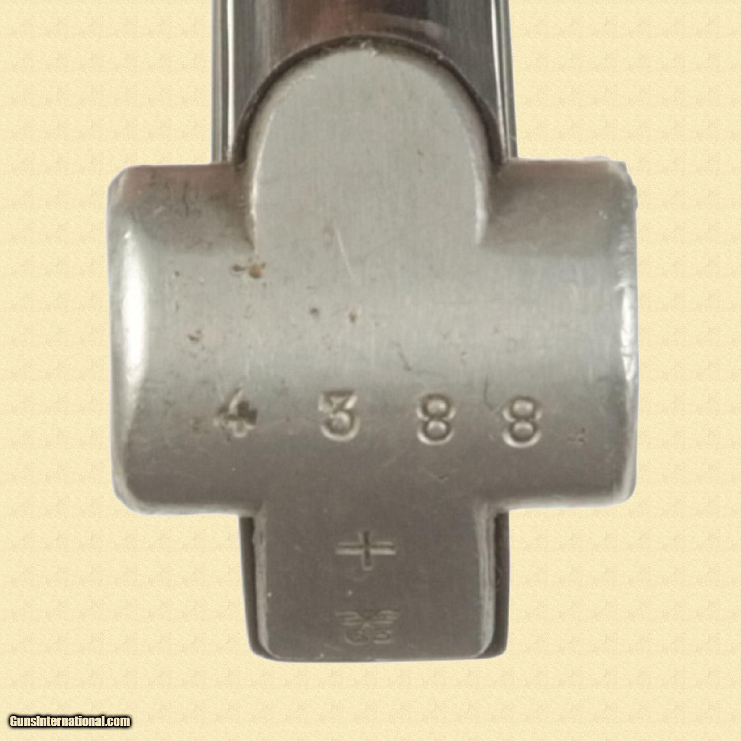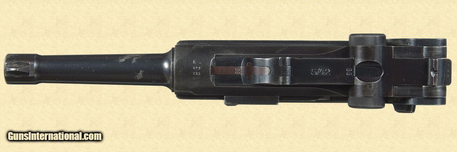 Description: 9mm Luger; 87% blue, fair bore, good grips, 4'' barrel, All blue finish S/42 1937 variation. Original blue finish and checkered walnut grips. Matching including the magazine and grips. Standard markings and proofs, the right side of the receiver is stamped with two stick wing eagle/63 proofs and a droop wing eagle military acceptance mark. The metal finish shows edge wear and high pont holstering wear, with areas of thinning overall. The sideplate appears to have had the finish touched up some. The grips show fairly light wear and handling with well defined checkering. Mechanically fine. The bore has strong rifling however is a bit dark and rough throughout. C&R/FFL Please call (309)342-5800 Tues-Fri, 10 am -6pm (CST), or Sat 1pm-6pm (CST), to speak with our sales team for further information, or to purchase firearms. FEDERAL FIREARMS LICENSE (FFL): is required on all shipments of modern guns. We must wait for a copy from your dealer before we can ship to them. We will also ship C&R eligible firearms to Curio and Relic (C&R) license holders. We accept your signed, legible FFL and C&R licenses via fax at 309/ 342-5730 (always on), email at FFLsimpsonltd or through the mail at Simpson Ltd; 140 S Seminary St; Galesburg, IL 61401. Pre-1898 firearms and non-firearms items are exempt from licensing requirements. All items shipped to an Illinois address will be charged 8.75% sales tax. NOTE: Because of recent shipping restrictions and charges placed on us by UPS and FedEx (handguns must ship via next day or 2nd day air and they have added a $10 surcharge for parcels over 48”. Our return policy lasts a maximum of 3 days from the time you receive your item. If 3 days have passed since you received your purchase, and we have not been contacted by you, unfortunately, we can’t offer you a refund or exchange. If you are not happy with your purchase, please contact us by phone and/or email to arrange for a return. Items must be shipped back to us to arrive with 7 days of notification of return. SOLD Curio/Relic: Yes Serial Number: 4388 |