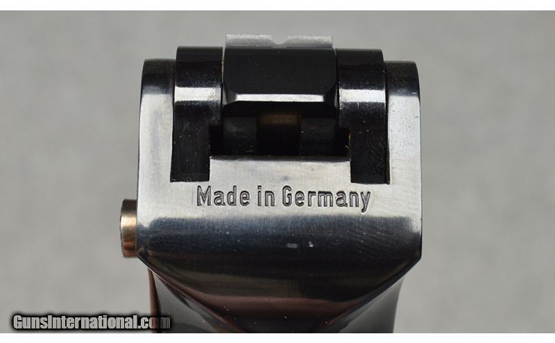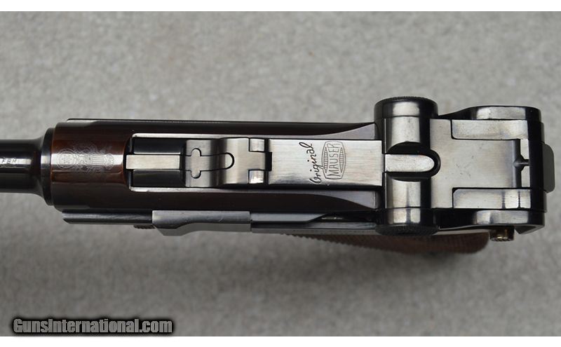 Description: Mauser Luger Swiss chambered in 30 Luger is in excellent condition. It features a 5 7/8" barrel, fixed front and rear sights, a blued finish, an eagle crest on top of barrel, checkered walnut grip panels, and a grip safety. It has small handling marks on the back of the grip. .30 Luger/7.65x21 Parabellum SOLD Metal Condition: Excellent Wood Condition: Excellent Bore Condition: Clean and shiny Barrels: 5 7/8 Weight: 2 lb 1 oz Sights: Fixed Item Location: Fort Worth, TX |