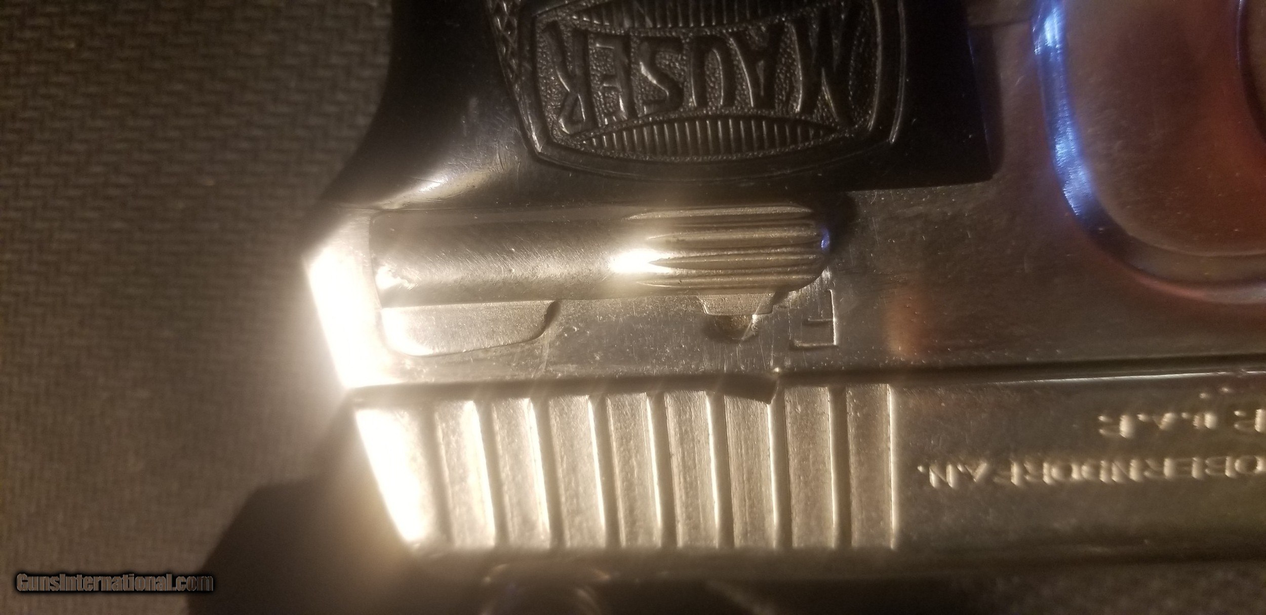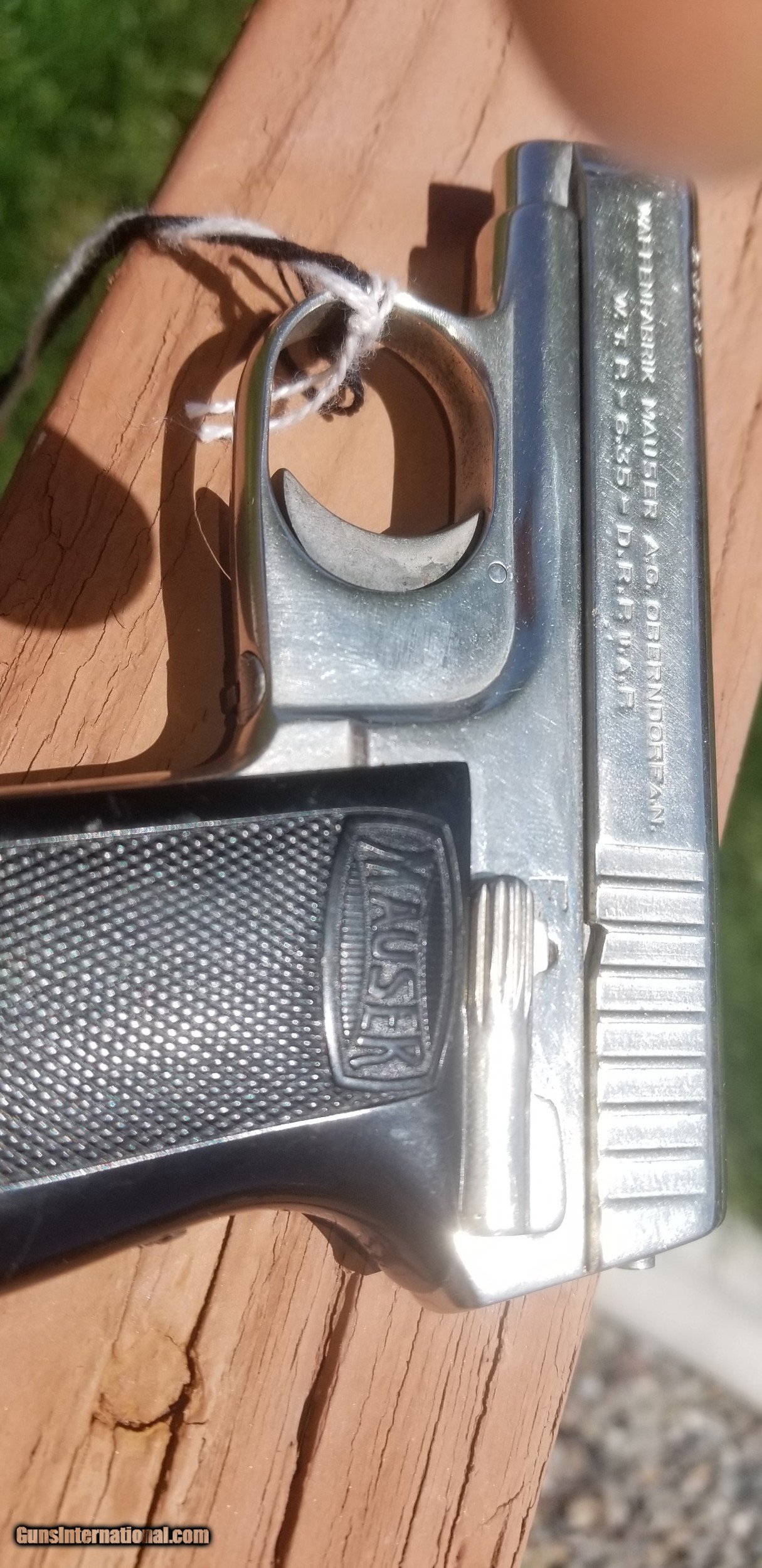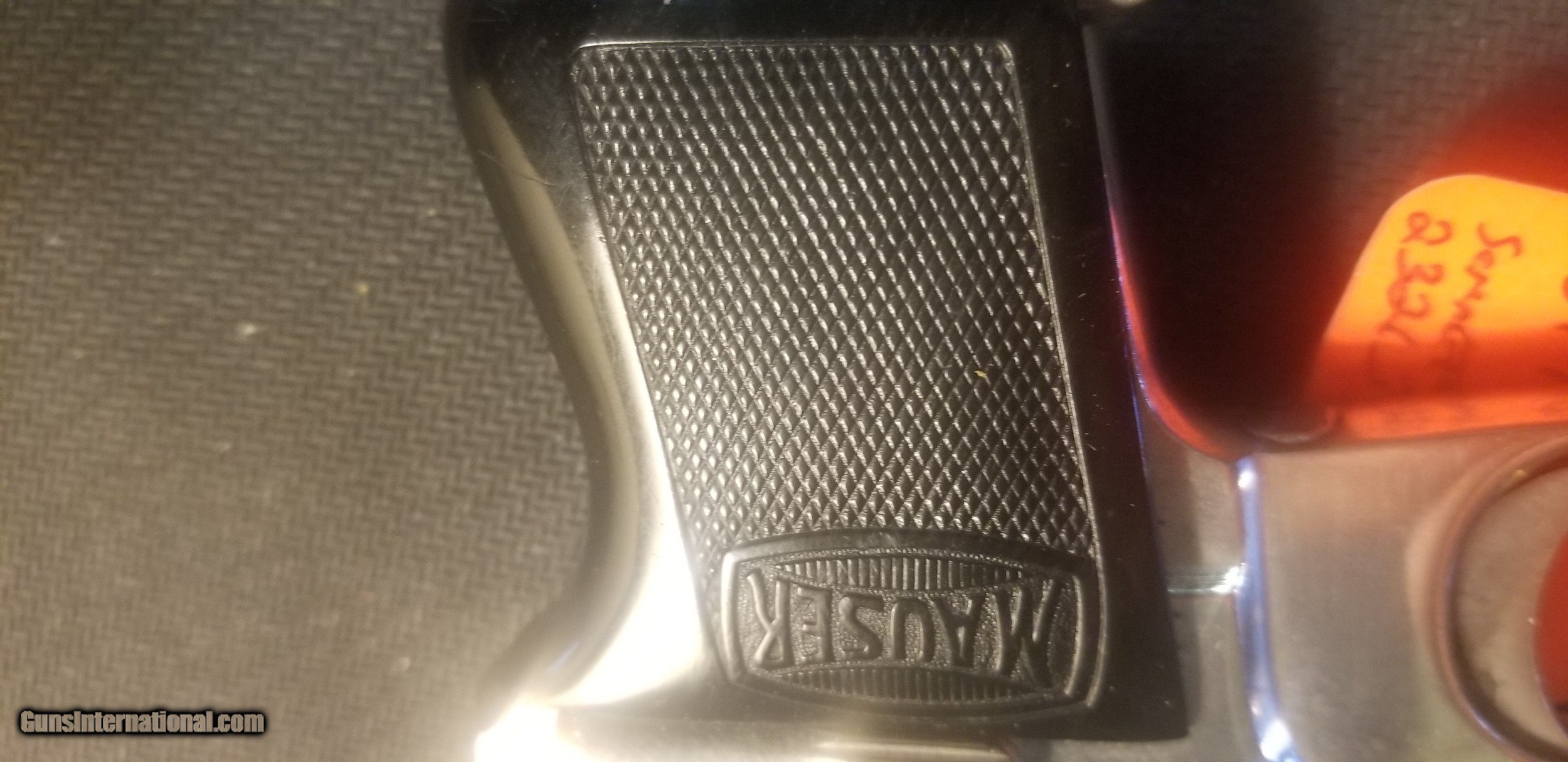 Description: Here we have a mauser WTP I pocket vest pistol in gorgeous nickel finish. Gun is in excellent condition. 95% . Small part of grip is cracked. See photos. Has original holster and magazine plus the cloth mag bag. The nickel is stunning , with no dulling or blems. Excellent bore. Has original magazine. This is the wtp 1 second version. Very rare and hard to find. Photos dont capture the guns real condion. FFL only. Postal money orders only. Shipping at 25.00 plus the cost to fully insure. Please feel free to ask questions. Thanks for looking jay. .. SOLD Curio/Relic: Yes |