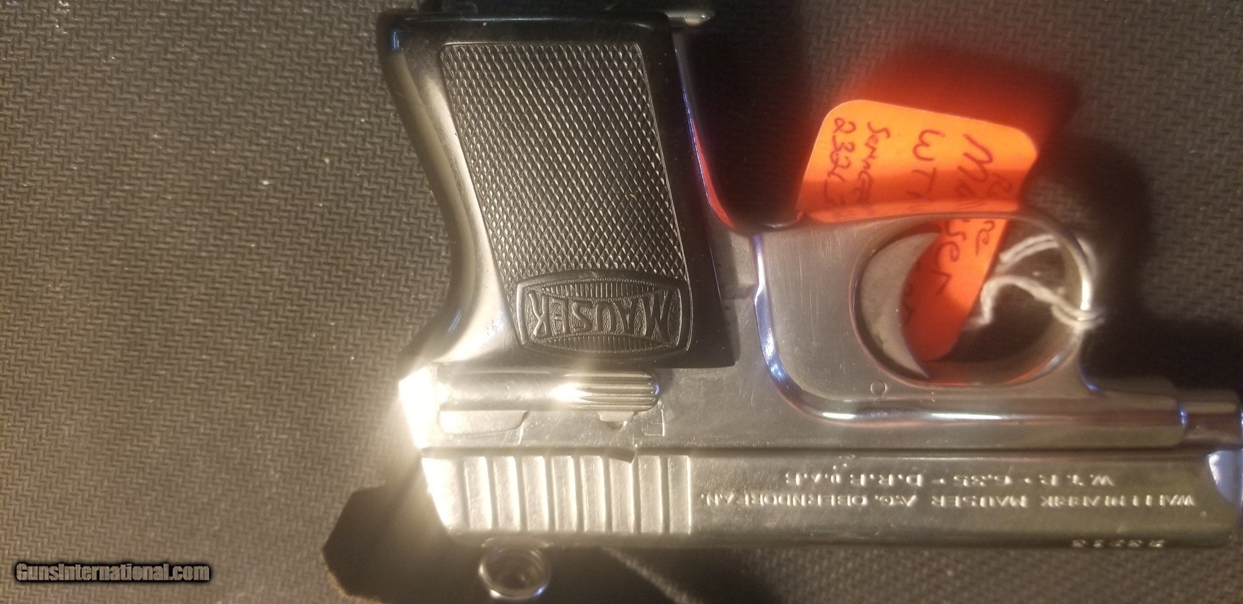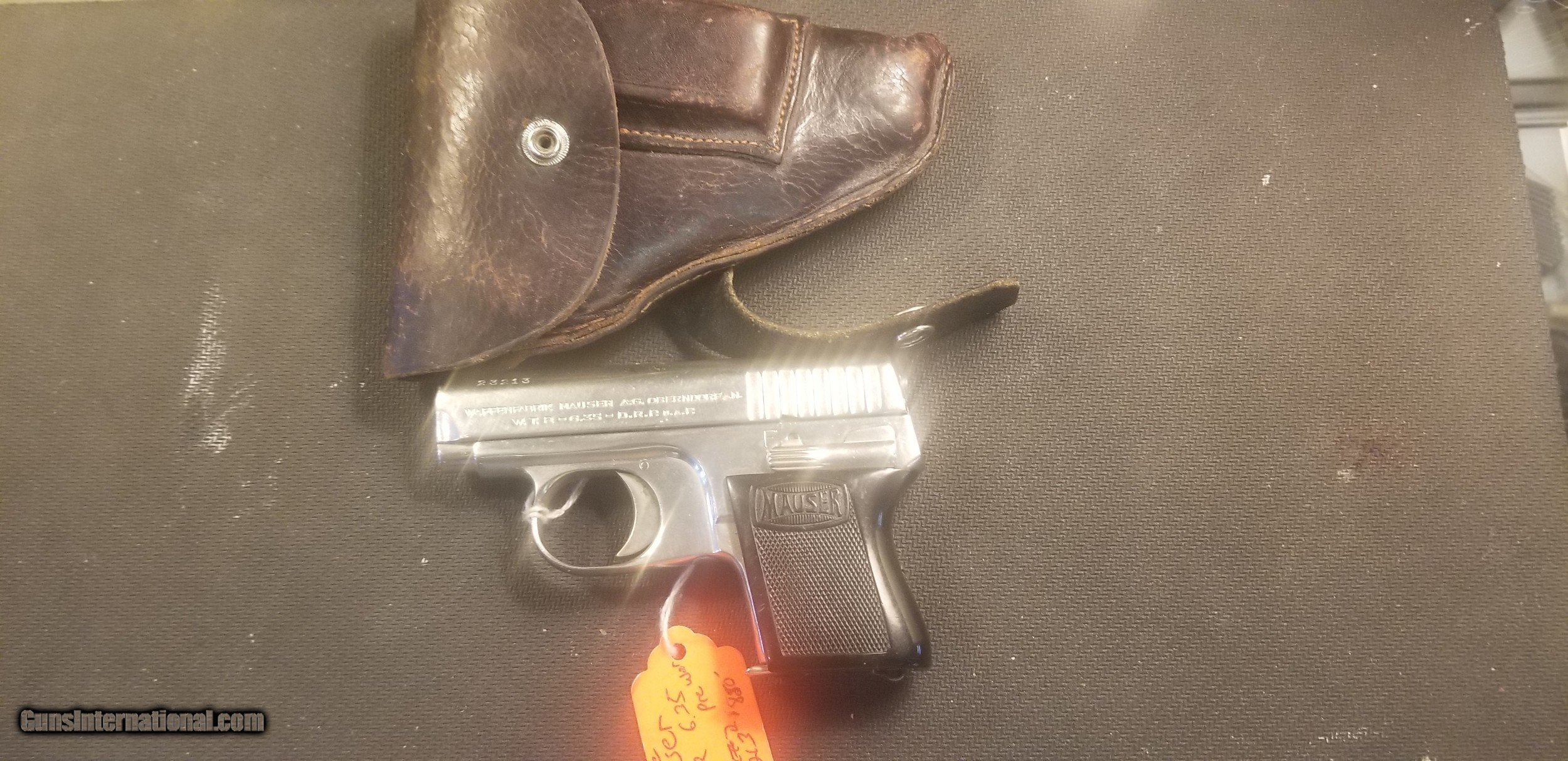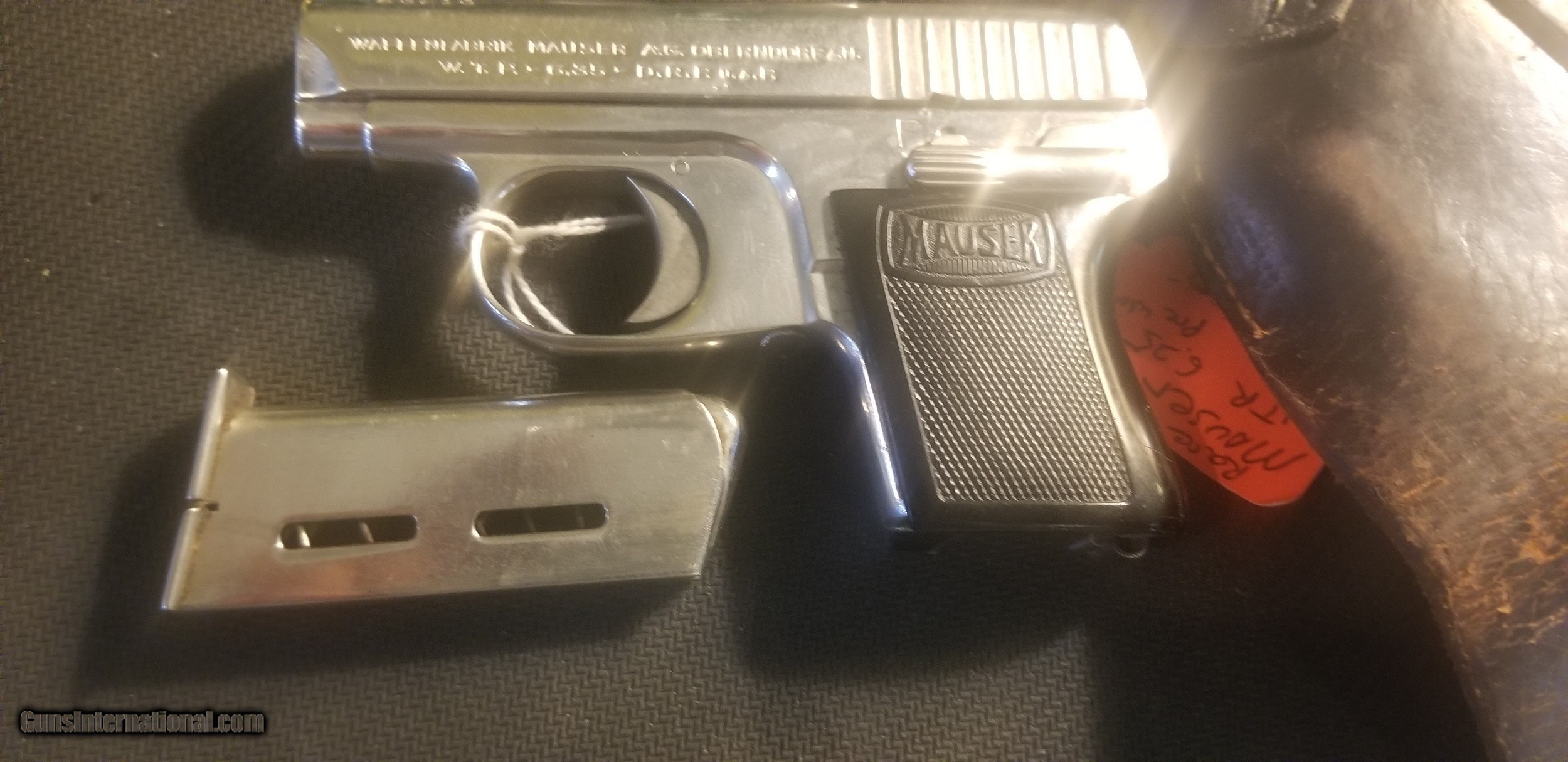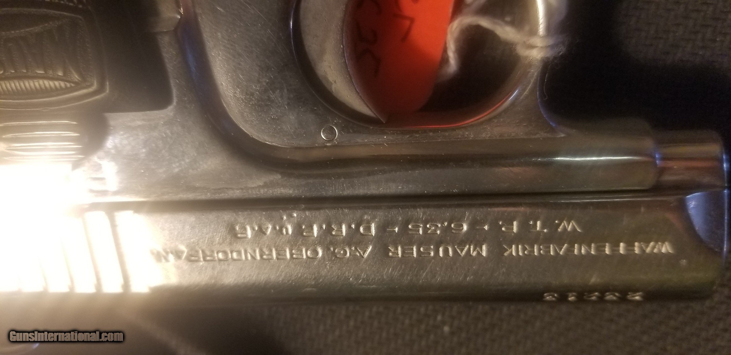 Description: Here we have a mauser WTP I pocket vest pistol in gorgeous nickel finish. Gun is in excellent condition. 95% . Small part of grip is cracked. See photos. Has original holster and magazine plus the cloth mag bag. The nickel is stunning , with no dulling or blems. Excellent bore. Has original magazine. This is the wtp 1 second version. Very rare and hard to find. Photos dont capture the guns real condion. FFL only. Postal money orders only. Shipping at 25.00 plus the cost to fully insure. Please feel free to ask questions. Thanks for looking jay. .. SOLD Curio/Relic: Yes |