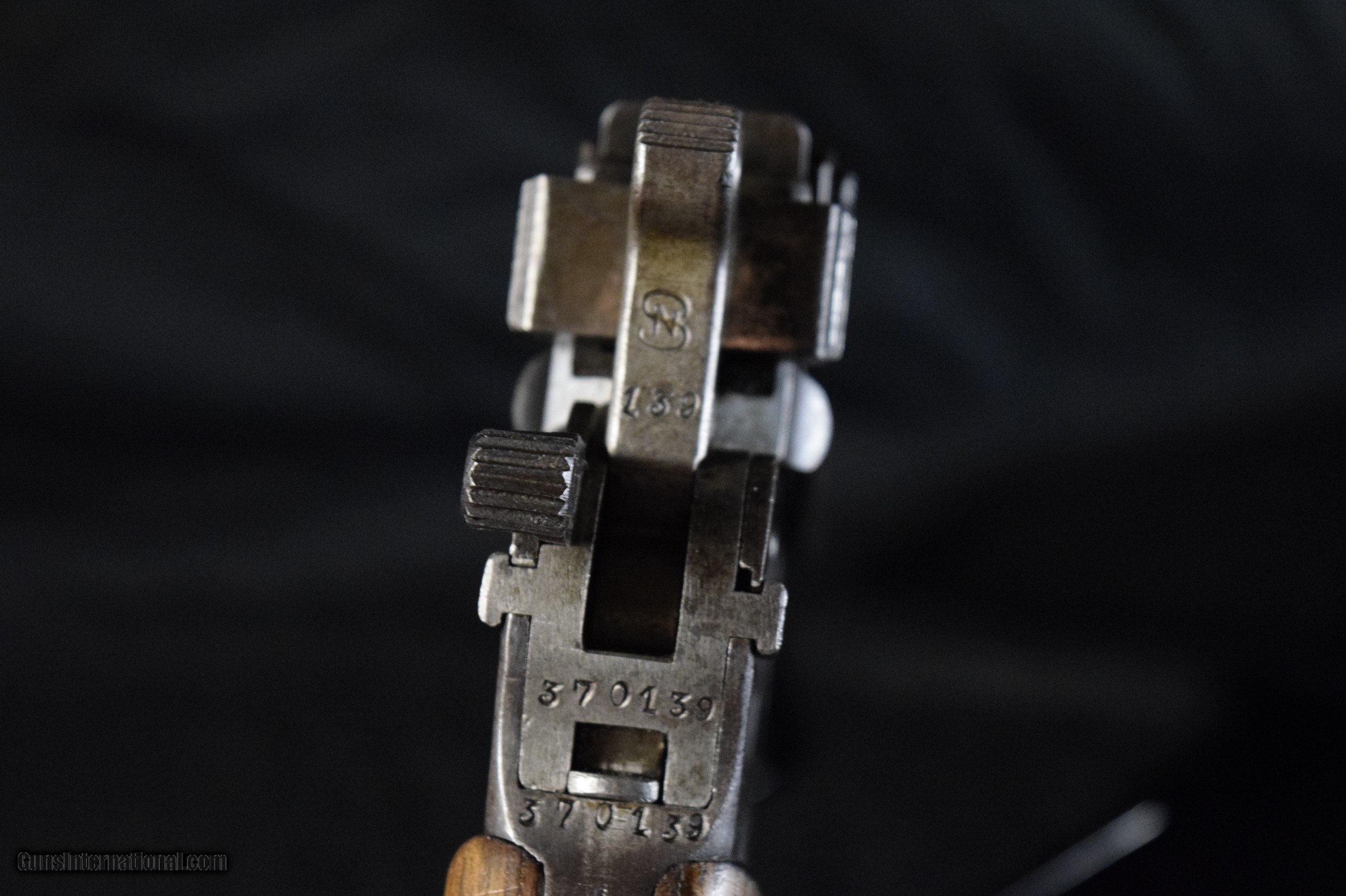 Description: This C96 waffenfabrik mauser oberndorf a neckar is equipped with a 5.5” barrel, blade front and adjustable rear sights, wood grips, and a blued finish. This package DOES NOT come with a case. The overall condition is good with wear on the grips. Pre-Owned - Waffenfabrik Mauser C96 Semi-Auto 7.63x25mm 5.5" Handgun
