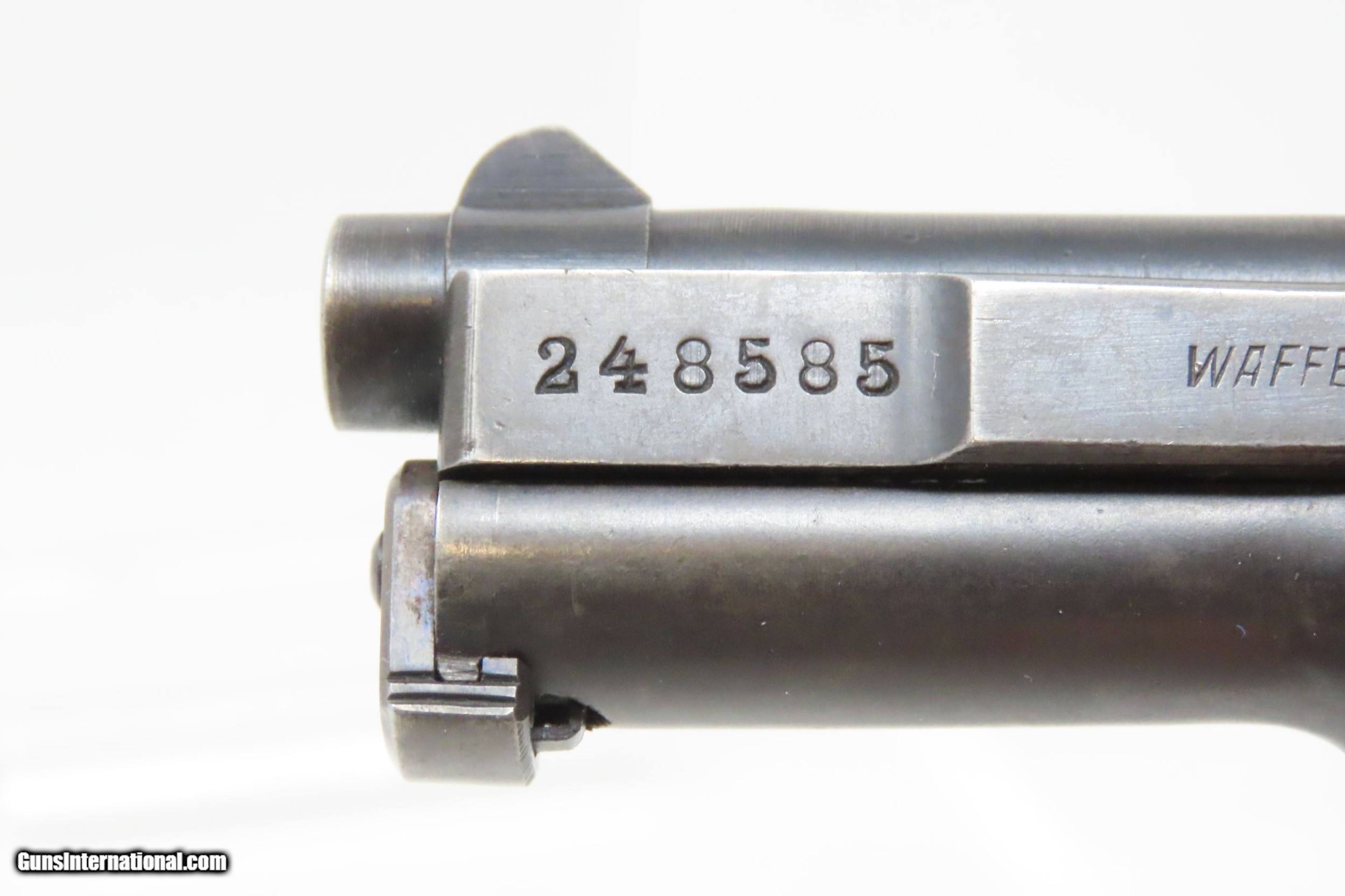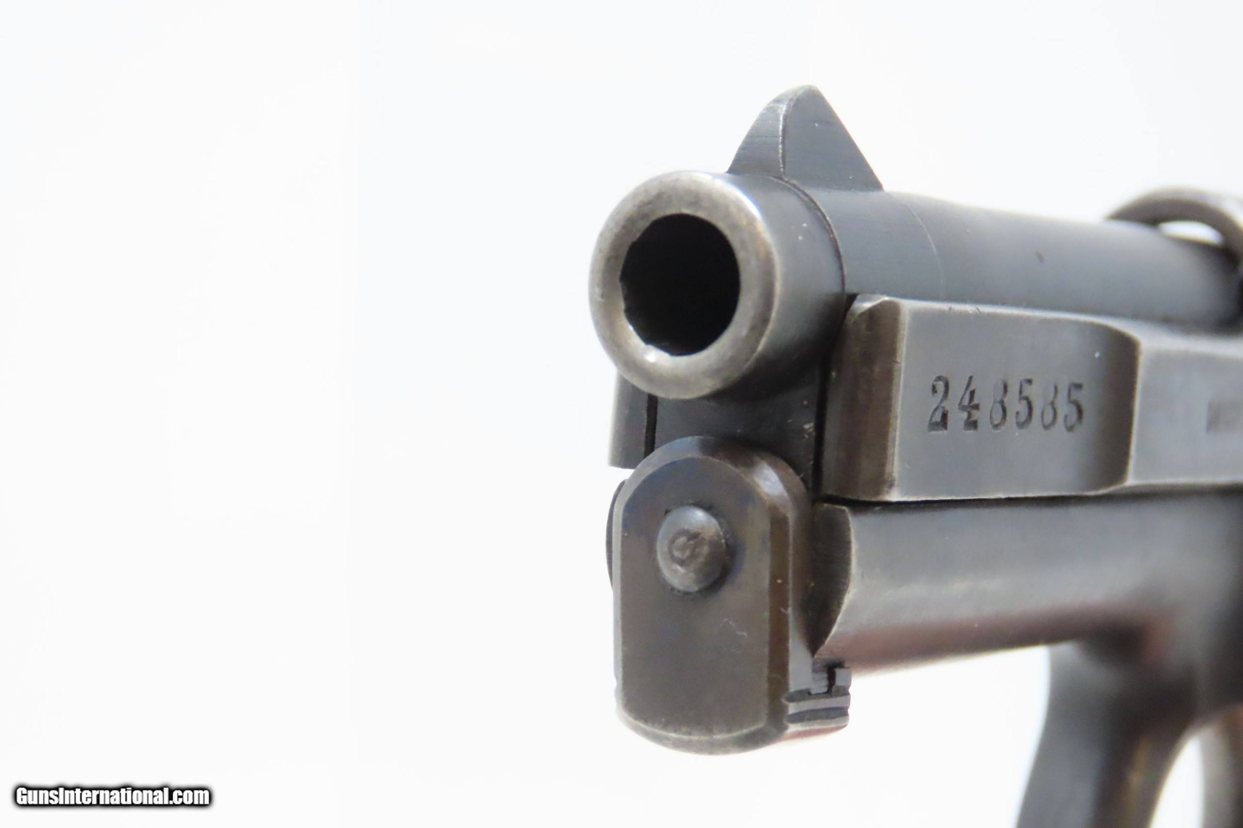 Description: Pre-WWI GERMAN Mauser Model 1910 .25 ACP Semi-Automatic C&R POCKET Pistol German Side Arm Chambered in 6.35mm Browning Auto Here we present a C&R German Mauser Model 1910 Pistol, made circa the 1910s in Oberndorf, Germany. The Model 1910 was an early semi-automatic pistol for Mauser and one that was quite successful. The Model 1910s were in service between 1910 and through the end of World War II in 1945. Paul Mauser’s vision for his new semi-automatic pistol was to create a design that could be essentially scaled up or down to suit the cartridge it was to be used for. These designs were most probably created by an engineer named Josef Nickl whom Mauser had employed in 1904. Nickl produced designs for pistols in 9mm Parabellum, .45 ACP, 7.65 Automatic (.32ACP) and 6.35mm (.25ACP). The development of Paul Mauser’s small pistols was well underway by around 1908, around this time he told the Deutsche Versuchs-Anstalt für Handfeuerwaffen (the German Experimental Laboratory for Handguns) that his company would be producing a small 7.65mm pistol “That would not be larger in weight and size than the well-known Browning 7.65 pistol”. The pistol we now refer to as the Mauser “Model 1914” was the 7.65mm (.32ACP) version and development work on it began after the “Model 1910” was in production. The design of the pistol was almost identical to that of the 6.35mm “Model 1910” but scaled for the larger and more powerful .32ACP cartridge. Despite the fact that Mauser’s company did not actually refer to their designs by model, but rather by caliber, so the two smaller Mauser pistols that were produced in large quantities have tended to be referred to by collectors by model year. The Model 1910 is the nomenclature applied to the smallest of these handguns that was chambered for the 6.35mm cartridge (.25ACP) and the Model 1914 model name for the 7.65mm (.32ACP) pistol. The overall condition is good. Excellent action. Original finish. Numbers match. The bore has a bulge, otherwise it is in good shape with nice rifling. Good grip with average handling wear. This firearm is classified as a Curio & Relic. Barrel is 3 inches. Caliber: .25 ACP (6.35 mm Auto) Overall condition as seen in photos. Very Fast. Very Safe. FREE SHIPPING. Will need to be sent to your local FFL or C&R licensee. This firearm is classified as a Curio & Relic. Guaranteed AUTHENTIC & Includes CERTIFICATE OF AUTHENTICITY. ancestryguns $1100 #217903 SOLD Curio/Relic: Yes |