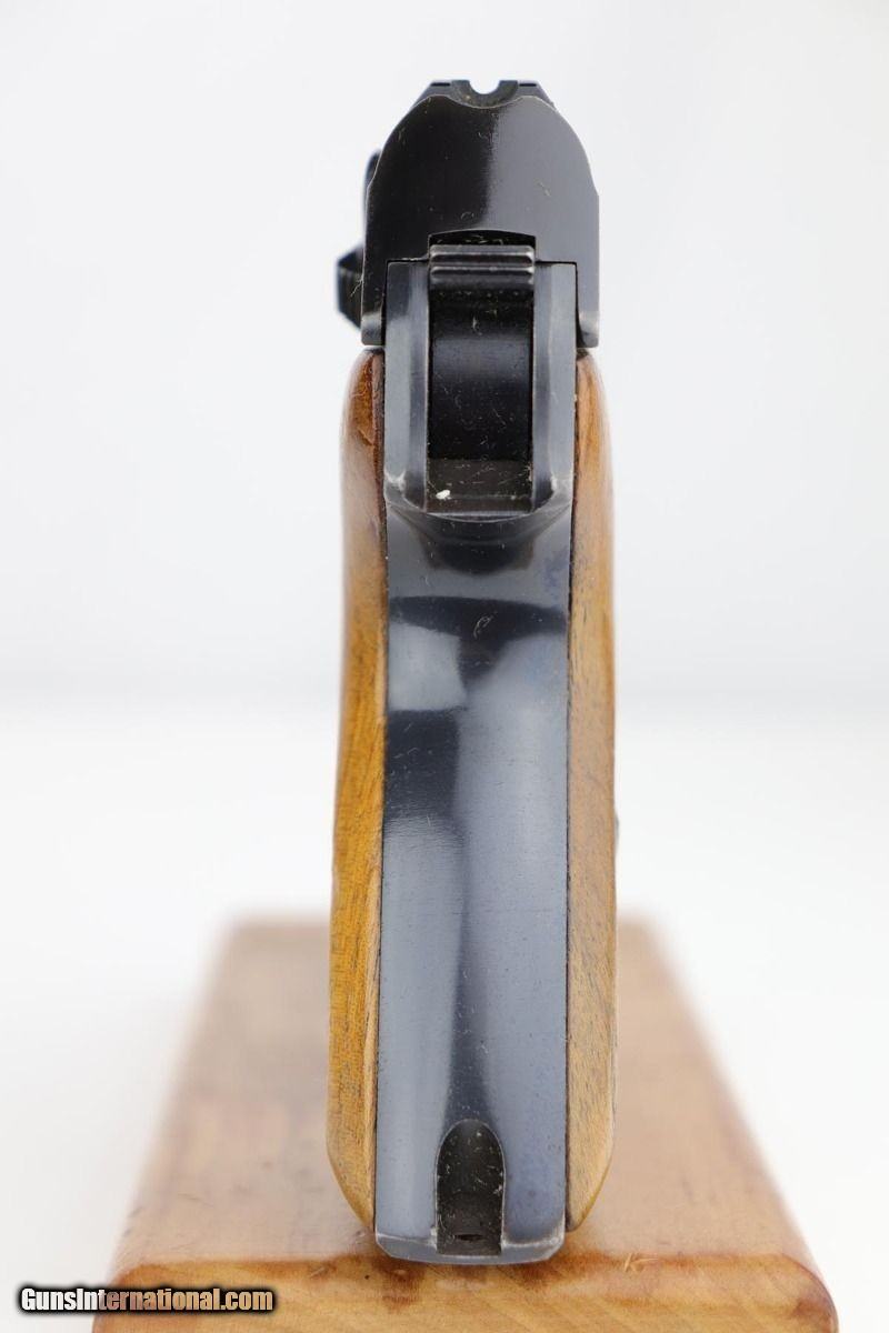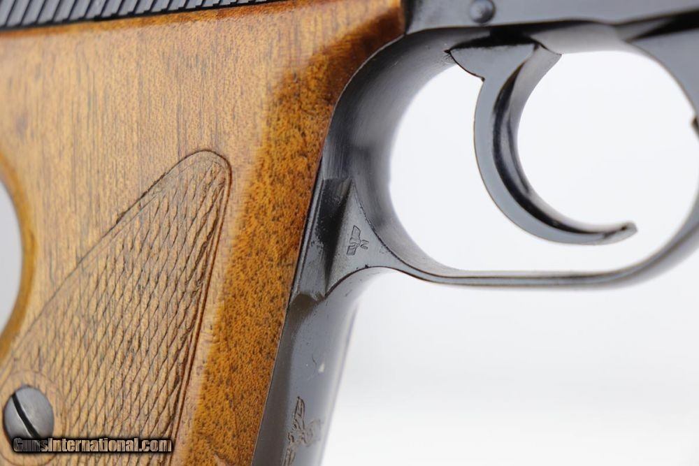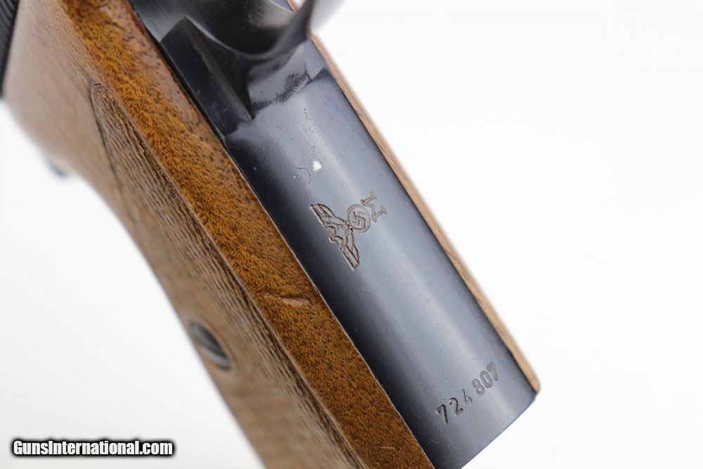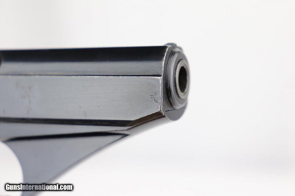 Description: This is a gorgeous example of a rare, Navy-issued Mauser HSc from 1941. It's a second variation example with Navy eagle over M on front strap, and is one of only about 7,000 made. It has 98% of the original blue with a little bit of wear on the left side of the slide, near the muzzle. Also a very minor spot of finish loss on the front strap. Excellent bore and grips. Mauser marked magazine. NOTE: The safety is a little loose on this one but does still function as a safety. SOLD Curio/Relic: Yes Manufacturer: Mauser Model: HSc Serial Number: 724807 Caliber Info: 7.65mm Condition: 98% Bore Condition: 9/10 Manufacture Date: 1941 |