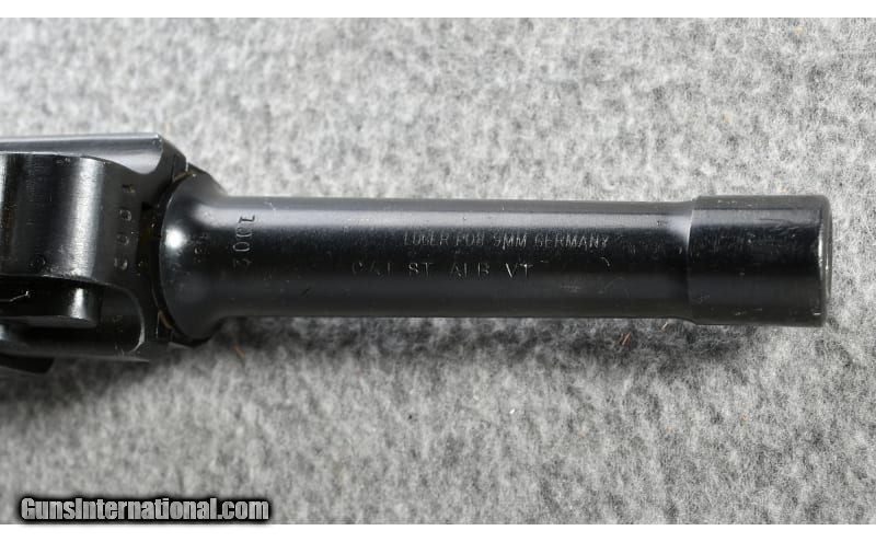 Description: In 1937 these guns underwent salt bluing instead of straw bluing that gave the guns an all blue look.This pistol has all matching numbers except the magazine. It has the stock lug and Waffenamt stamps. This P08 was imported by Century Arms International and has the C.A.I. Guide on the use of the German Model P.08 Pistol plus an article from the American Rifleman on the Luger P08 from August 2023. 9mm Luger SOLD Chambers: 9 mm Luger in an eight round detachable magazine semi-automatic pistol Metal Condition: "Very good, with a few small scratches on the left side of the frame Wood Condition: Grip panels are in good condition and show some handling wear Bore Condition: "Very good, sharp, bright rifling Barrels: 4" Tapered 6 groove bore Triggers: Single action Weight: 34 oz. Sights: Fixed Item Location: Grand Junction, CO |