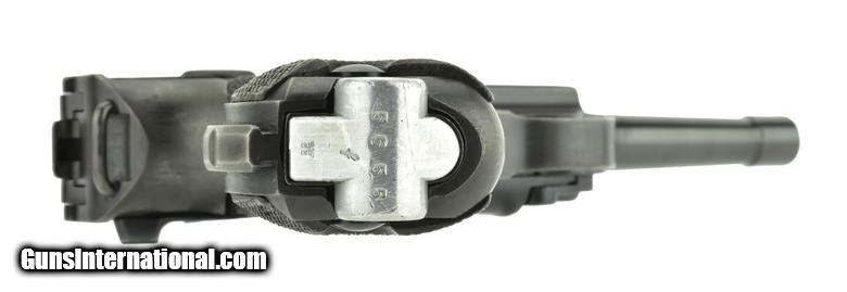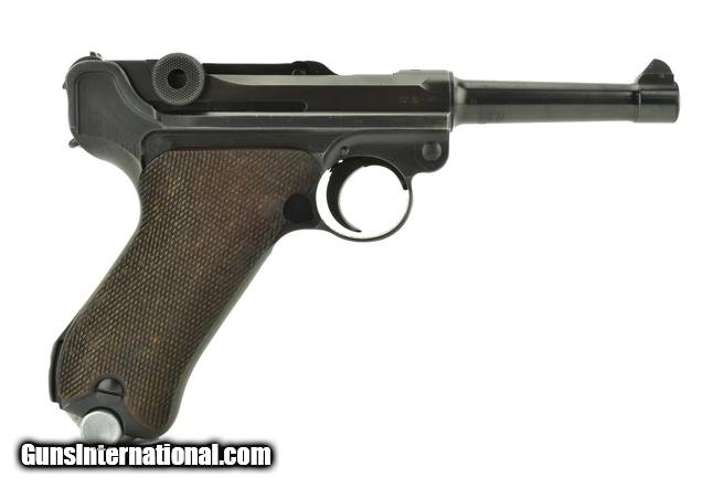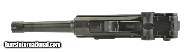 Description: S/42 Mauser Luger 9mm caliber pistol. WWII German Military luger manufactured in 1938. Serial numbers are matching, except for correct era magazine. Bore is very good with strong rifling. Front and back grip straps have a thinning blue turning to patina. Very good plus overall condition s/42 code 1938 dated Luger.