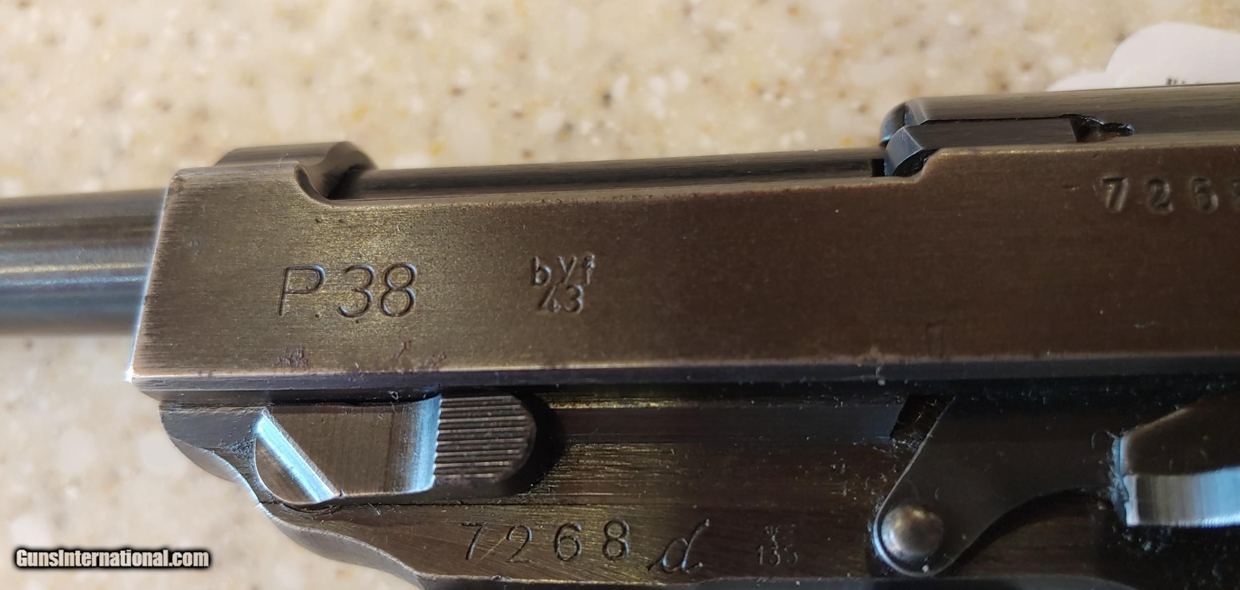 Description: Used Mauser P-38 BYF Numbers Matching 3" barrel 9mm good condition Buyer pays shipping Millers Gun Center Located in New Castle, Delaware "Home of TAX-Free shopping" No Credit Card Fees SOLD Serial Number: 7268D |