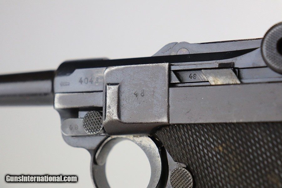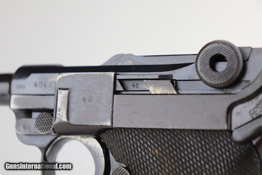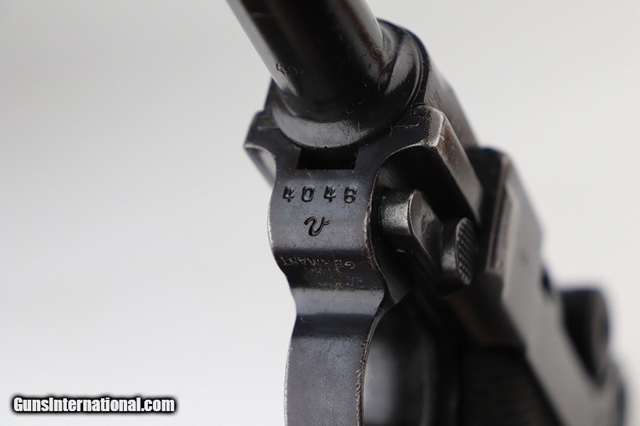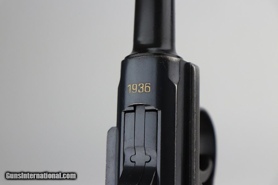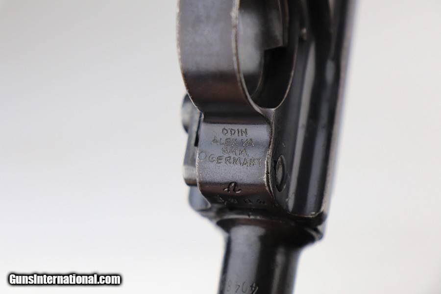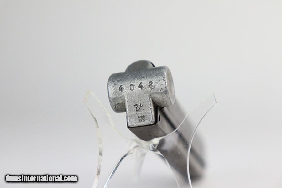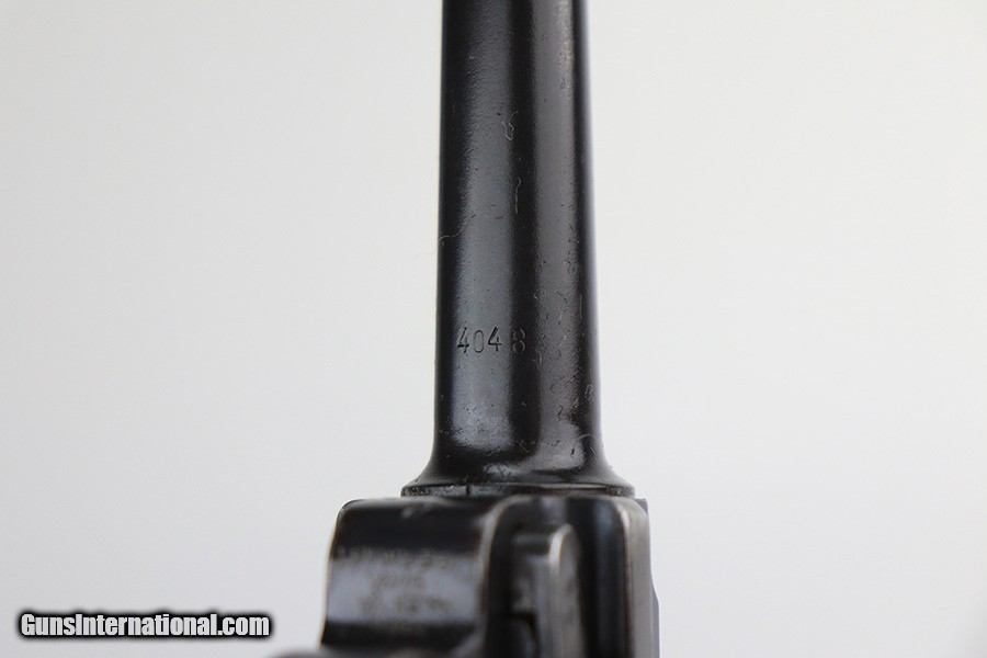 Description: This is a very rare 1936 Mauser Banner Luger that was part of a small contract order by Thailand's government. It was reported only 150 were ordered, and roughly 35 now remain. These saw extensive use and the finish was presumably arsenal re-done in Thailand. It has all matching numbers, including the original magazine and left grip panel, though the right grip panel is mismatched. Strong, shiny bore. The finish shows some visible patina on the grip straps, sideplate and left side frame. Some bluing loss on barrel and right side rail. Smoothing of the checkering on the grips but no cracks or chips. Import mark on trigger guard. SOLD Handgun Caliber: 9x19mm Parabellum (9mm Luger, 9x19mm NATO) Bore: 9/10 Condition: 75-80% |