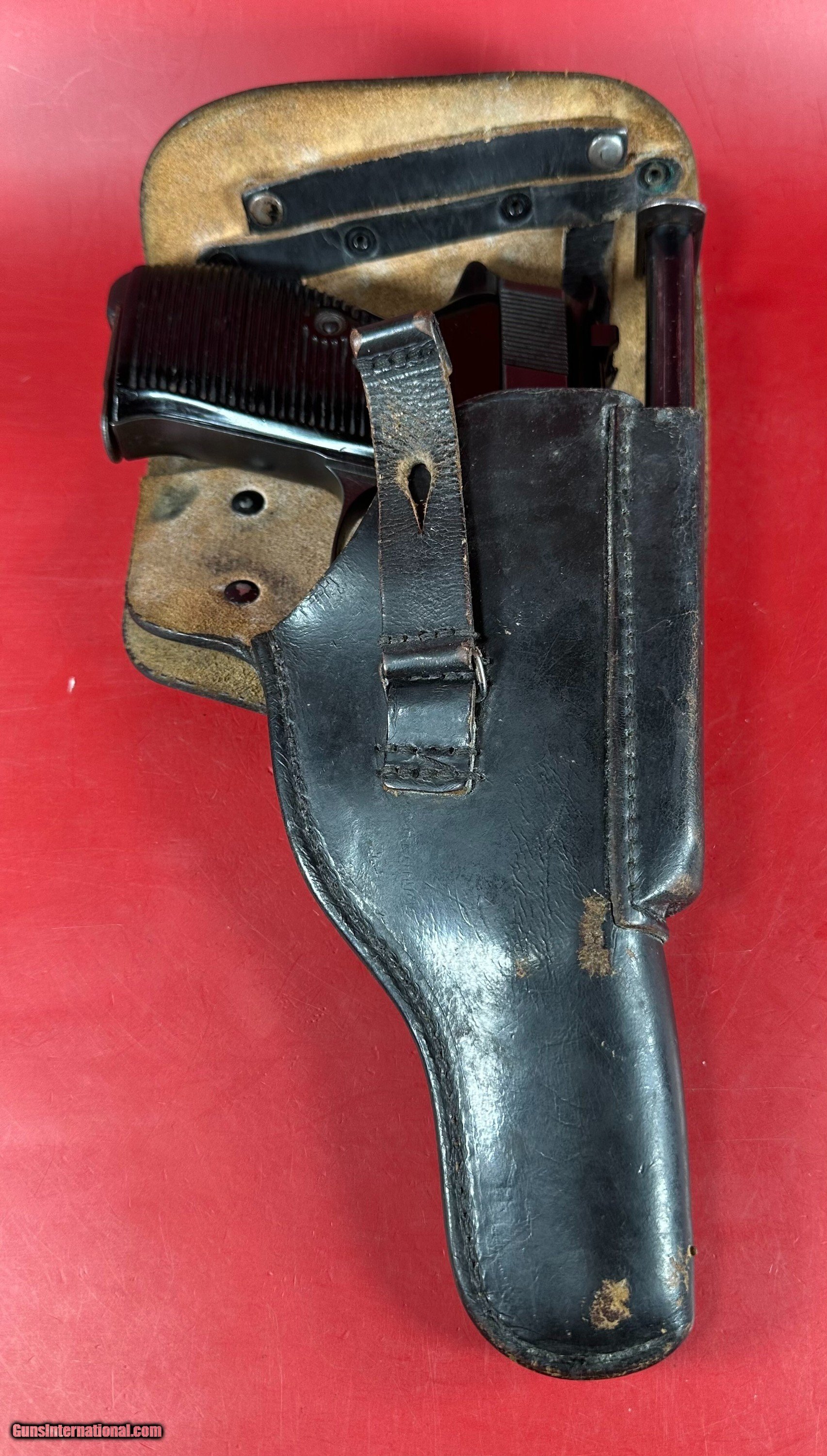 Description: For sale 1944 Mauser (BYF code was assigned to Mauser) P38 (P-38 P 38). This is a historically significant firearm issued to German forces during the final years of WWII. The gun is in excellent condition. The bore is bright with strong rifling. The metal finish is at about 98%, Bakelite grips about 98%. Action functions the way it should. All matching numbers (frame, barrel, slide, locking block). Full rig includes two magazines (one original and one after war) and leather holster. Don't miss your chance to own a piece of history. Layaway and payment plan are available. Handgun Caliber: 9x19mm Parabellum (9mm Luger, 9x19mm NATO) Price: $1,599.00 Shipping: $39.00 Contact Seller |