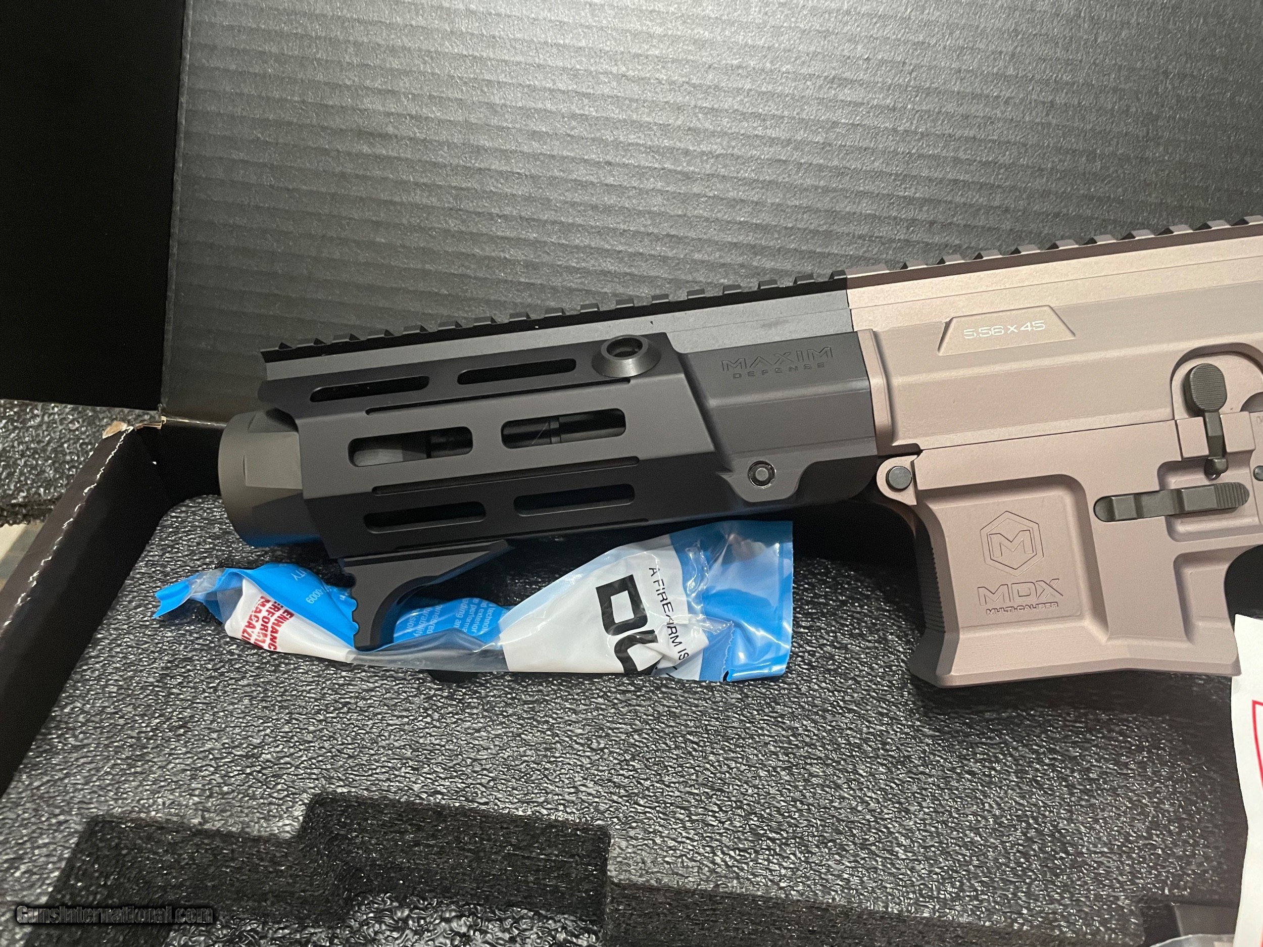 Description: New unfired firearm in original box and papers. 5.5" barrell. One original 20 round magazine included. SOLD Rifle Caliber: 5.56x45mm NATO Handgun Caliber: 5.56x45mm NATO Manufacturer: Maxim Defense Model: PDX 5.56 Barrel Length: 5.5” Condition: New Metal Condition: New Bore Condition: New Sights: No sights Item Location: Hardy Virginia |