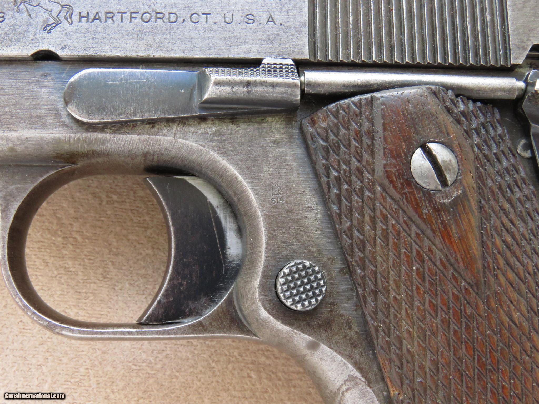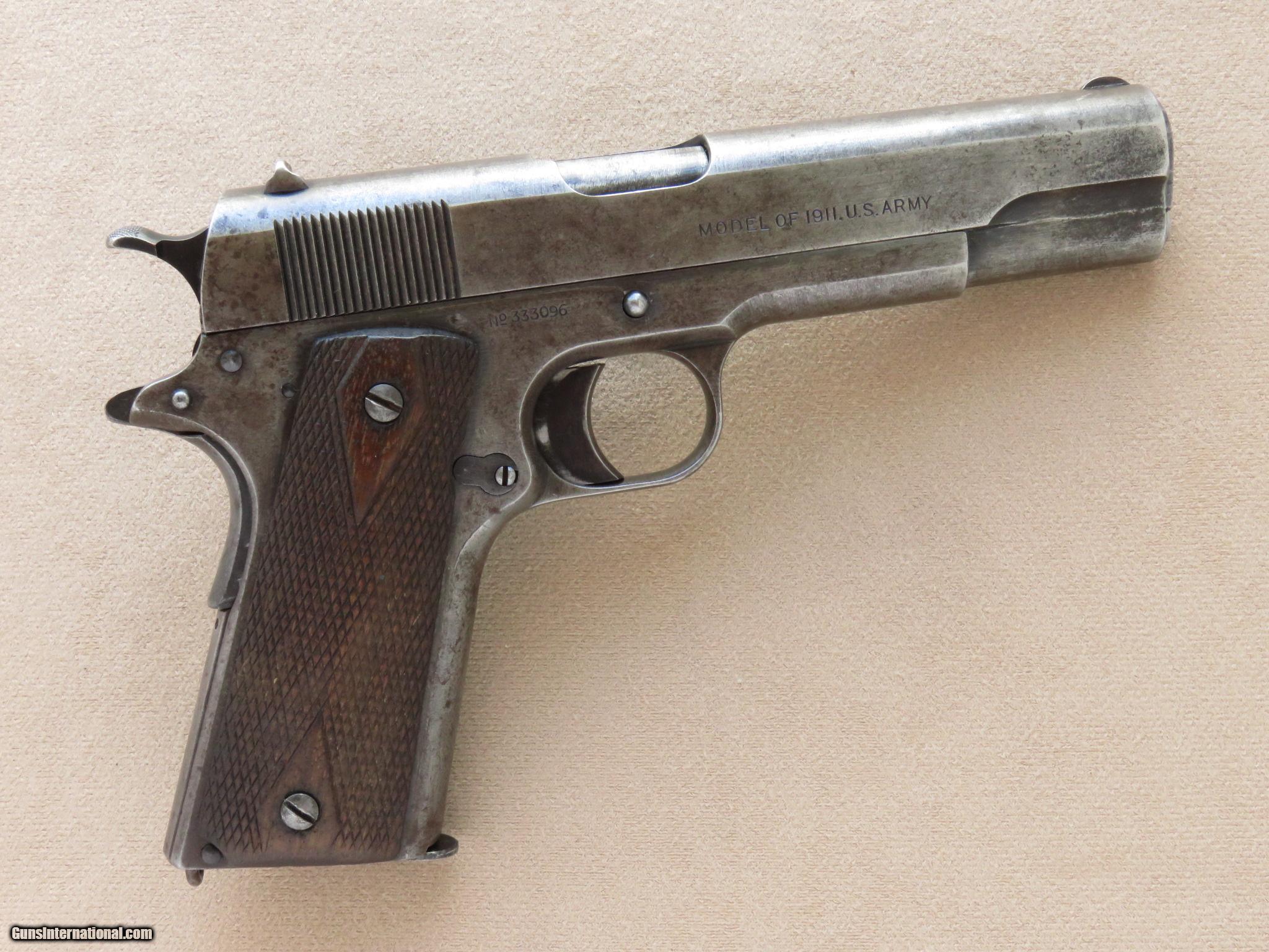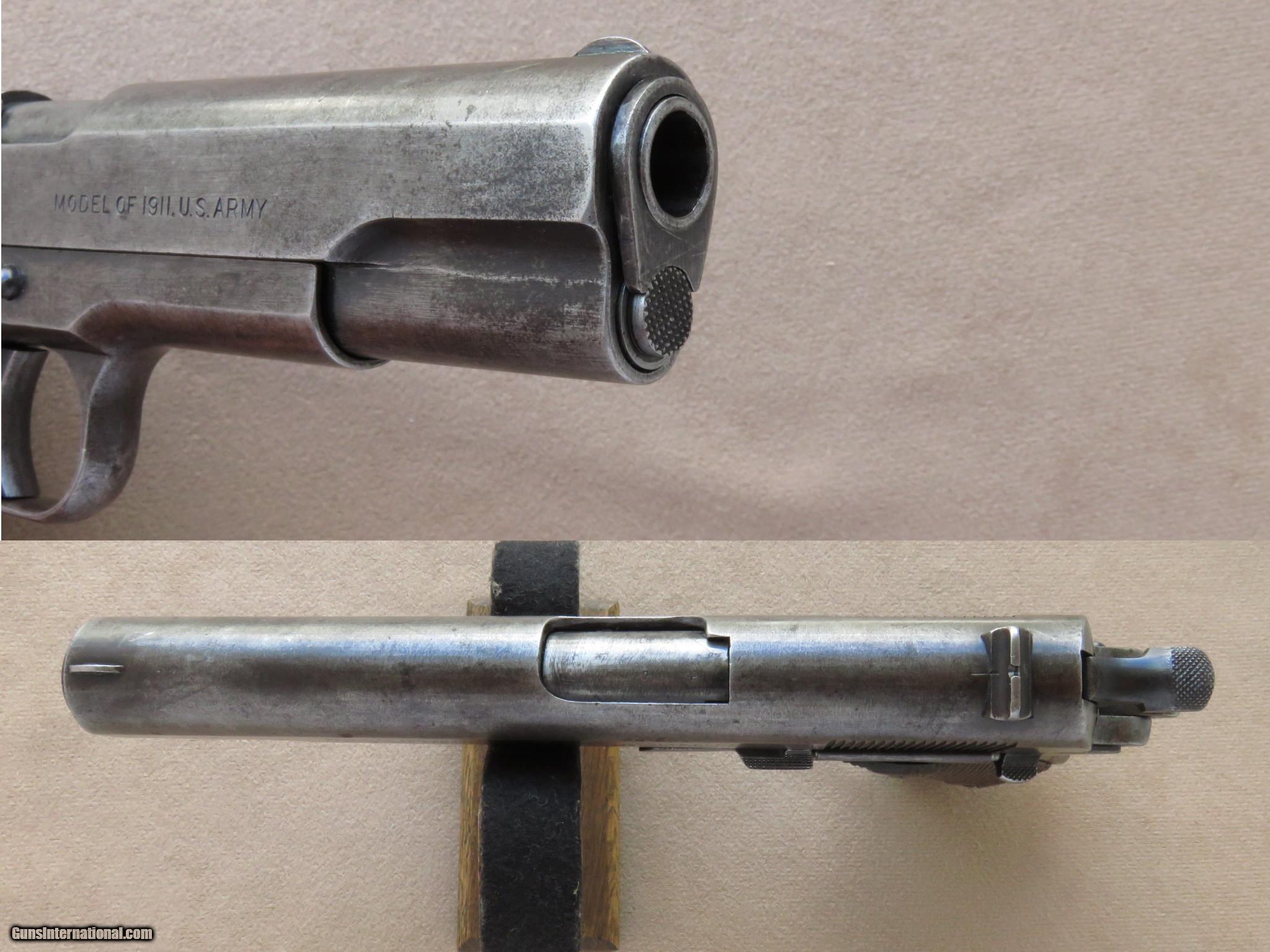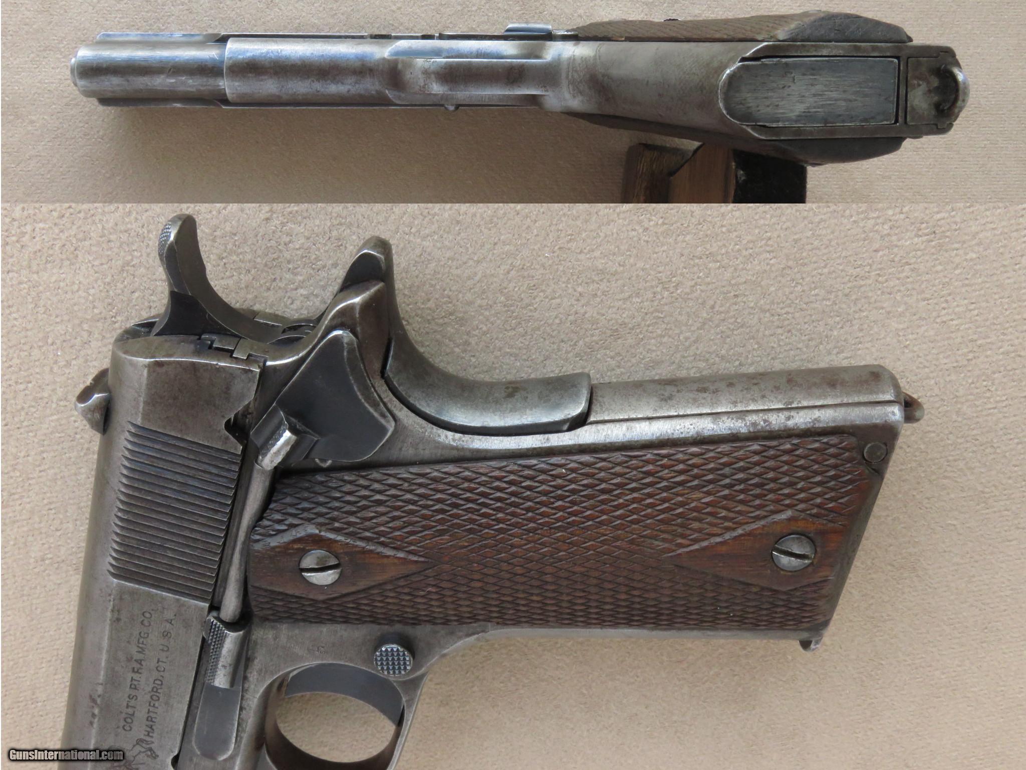 Description: Just received this 1918 vintage Colt 1911 black Army in used but not abused condition. It has lost most of its original finish but is mechanically in excellent condition. The bore is a little frosty but very shootable and the action is tight and fuctions perfectly. The grips checkering is worn smooth but they are sound with only a small chip on the left grip and no cracks. Here's a chance to own a WWI Colt pistols. PRICE: $1,500 We are Antique & Modern Firearms in Lexington, KY, dealer of fine firearms since 1974. PH. 859-276-1419 We Buy, Sell and Trade. Have a interesting firearm or firearms collection to sell, let us know, we can buy or consignment sell it for you. (sales at am-firearms) SOLD Curio/Relic: Yes |