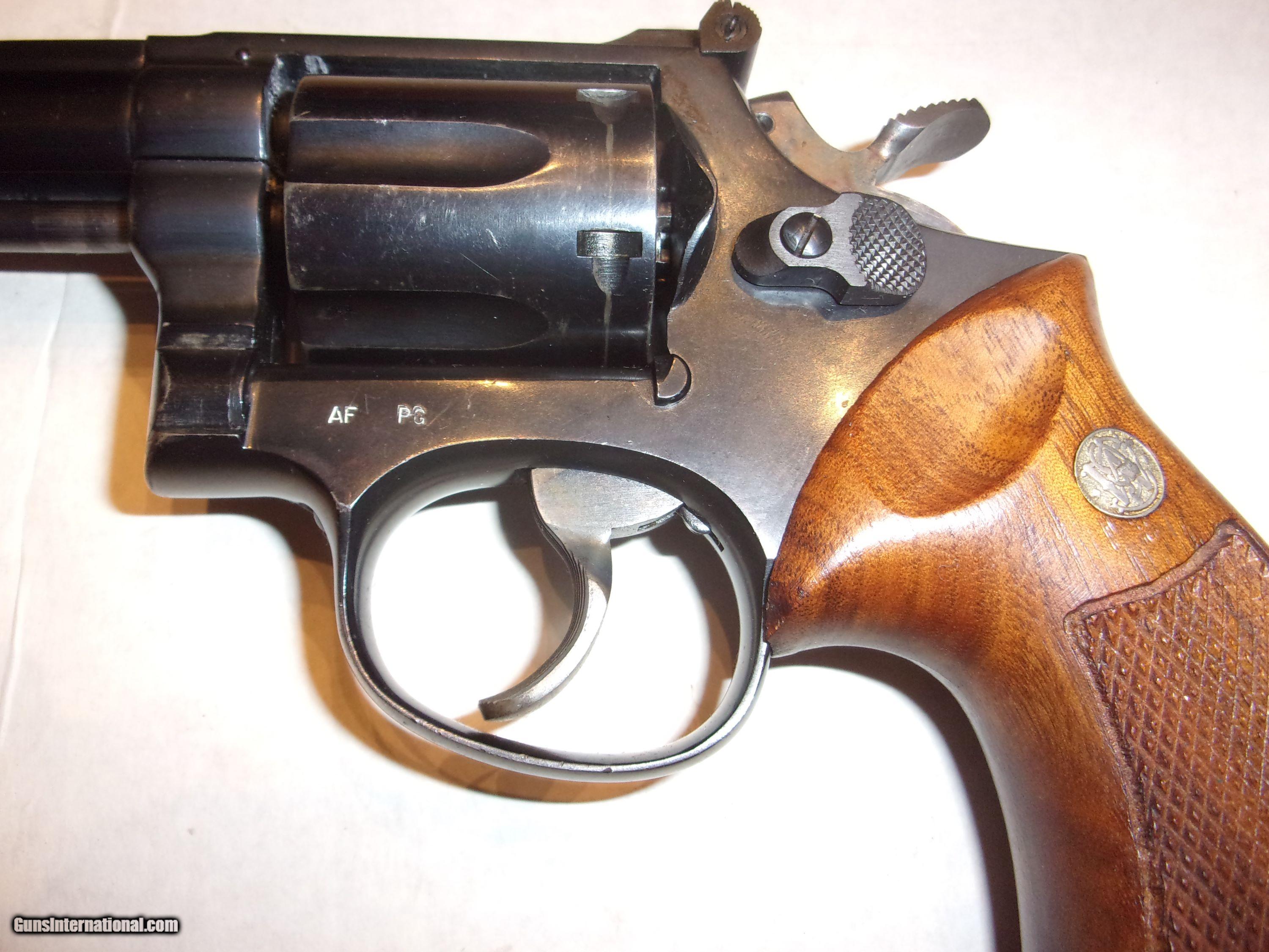 Description: This Smith & Wesson Model 14 was used by the U.S. Air Force pistol shooting team. It is in excellent condition with 97% of the original factory blue finish and case colors on the target trigger and hammer. The 4 inch barrel has a bright bore. The magna grips are unnumbered. The left side of the frame is marked AF PG Air Force Premium Grade) under the cylinder. Target sights. SOLD Curio/Relic: Yes Manufacturer: Smith & Wesson Model: Model 14 Serial Number: K405872 Caliber Info: .38 Bore: bright Chambers: 6 Condition: Excellent Metal Condition: excellent Excellent Stock: Excellent Finish: Blue |