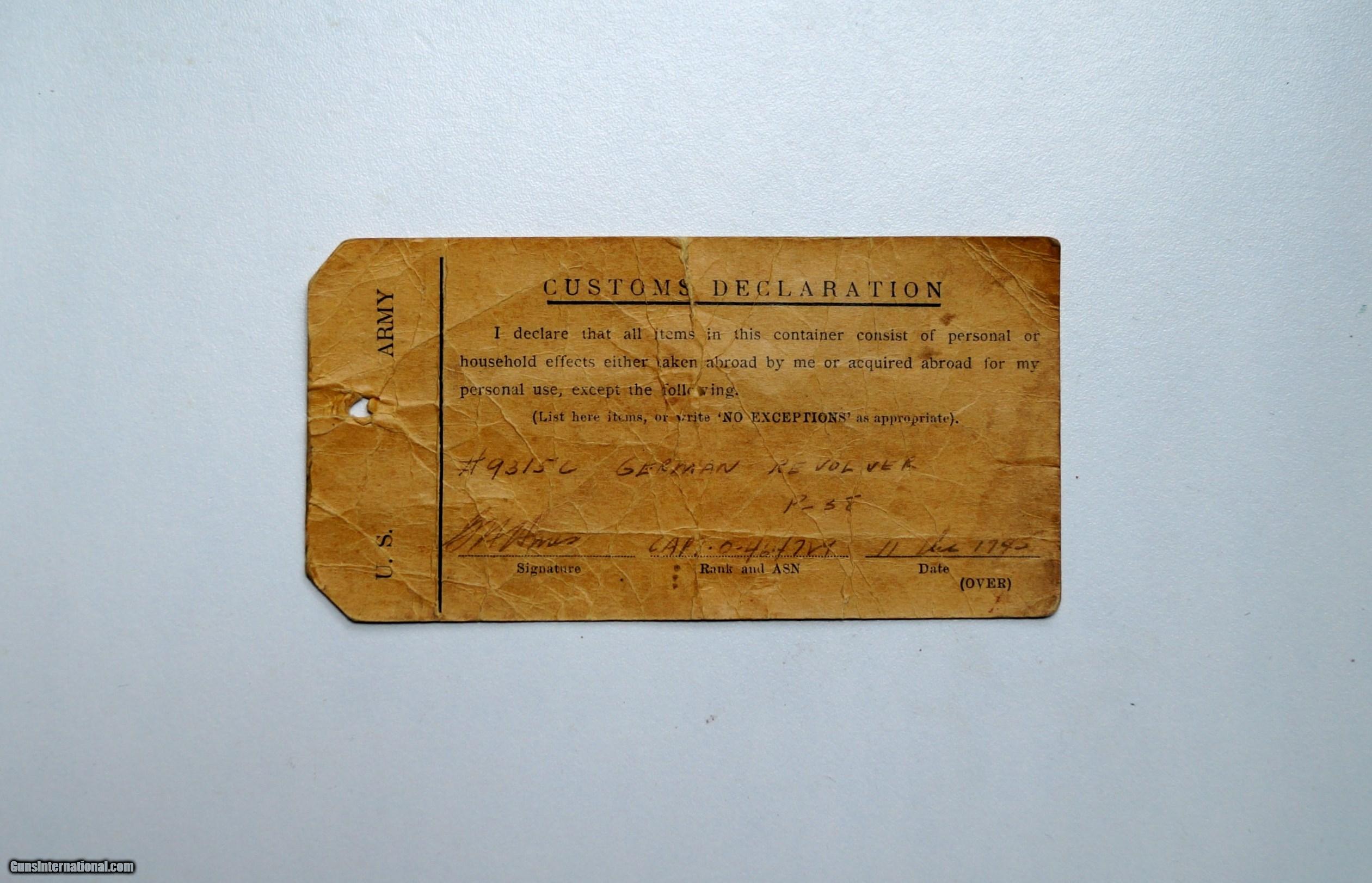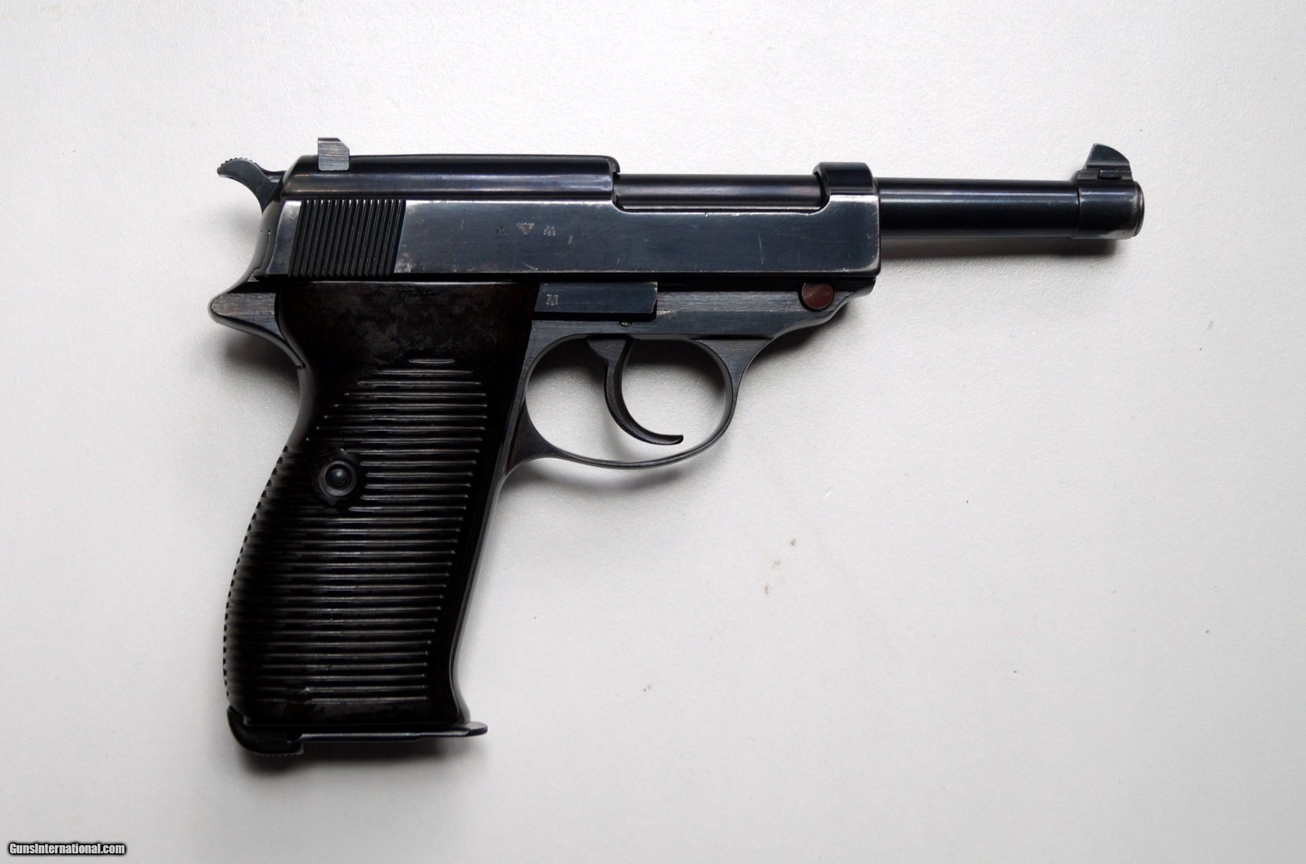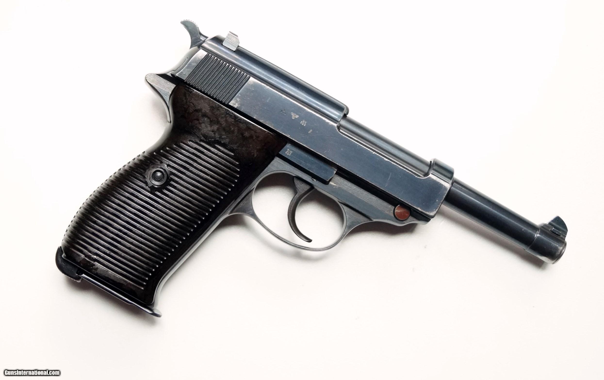 Description: THIS IS A P 38 AC (WALTHER) NAZI PISTOL, 9MM. THE PISTOL IS IN VERY GOOD CONDITION, ALL ORIGINAL, NUMBER MATCHING, VERY GOOD BORE AND GRIPS (GRIPS ARE ORIGINAL AND NAZI MARKED), MECHANICALLY CORRECT AND TIGHT. A VERY NICE RARER WWII NAZI P 38. NOTE: THIS P 38 IS THE 2ND VARIATION AND WAS THE LAST MILITARY P 38 TO BE MADE WITH A HIGH POLISH FINISH. THE ORIGINAL MAGAZINE IS NUMBERED TO THE GUN. ORIGINAL WWII BRING BACK PAPERS ALSO COME WITH THE PISTOL. THESE ARE VERY RARE TO FIND ANYMORE. SOLD Curio/Relic: Yes |