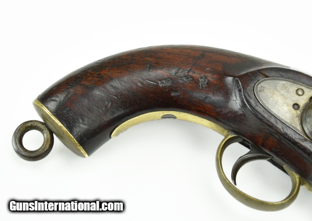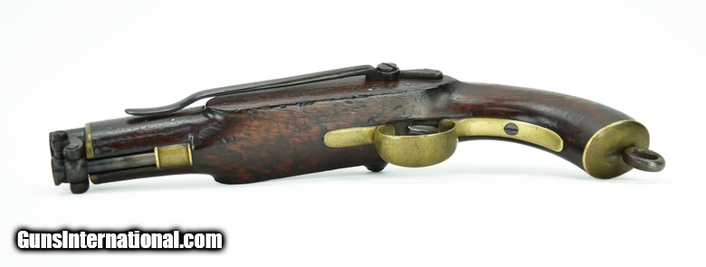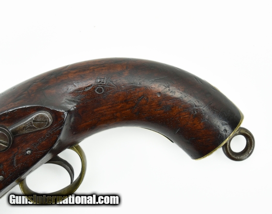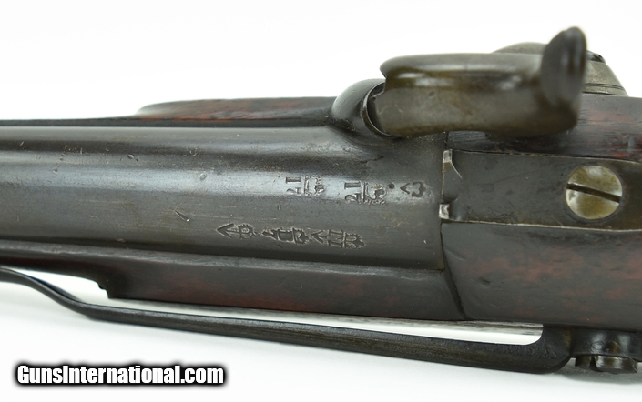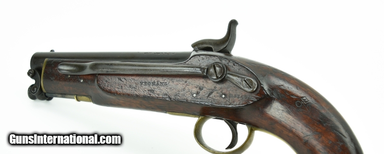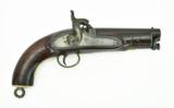 Description: British Model 1840 Sea Service pistol with bolt hook. Bore is .58 cal. Lock marked crown VR 1844, designed by George Lovell. Gun has a captive ramrod. Stock has several inspection marks and the board of ordnance marked. SOLD |