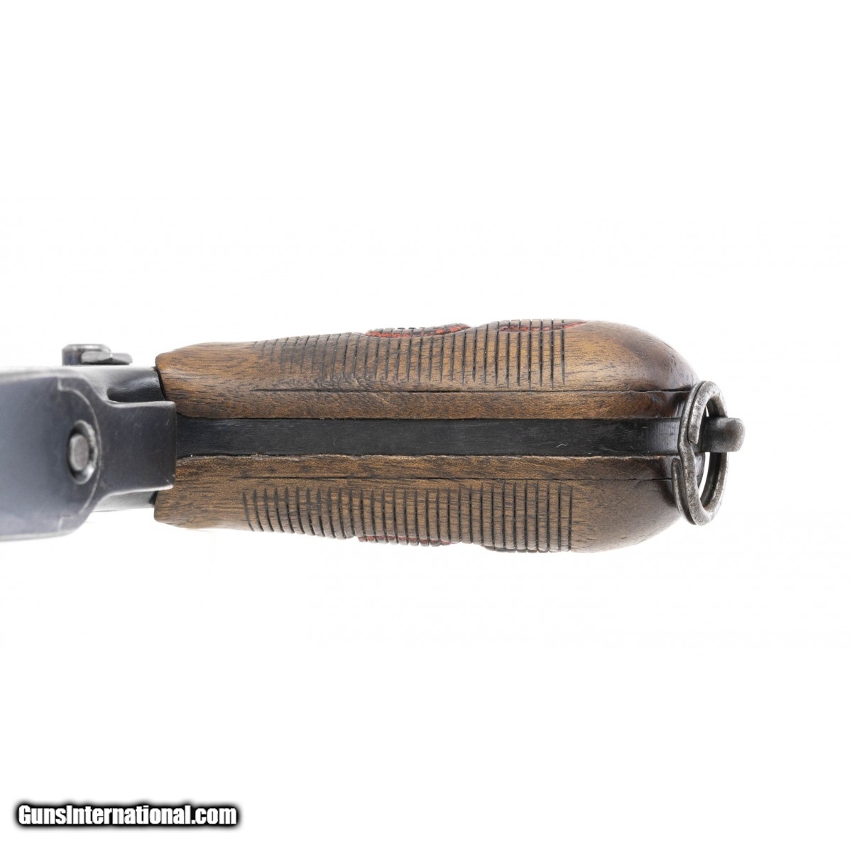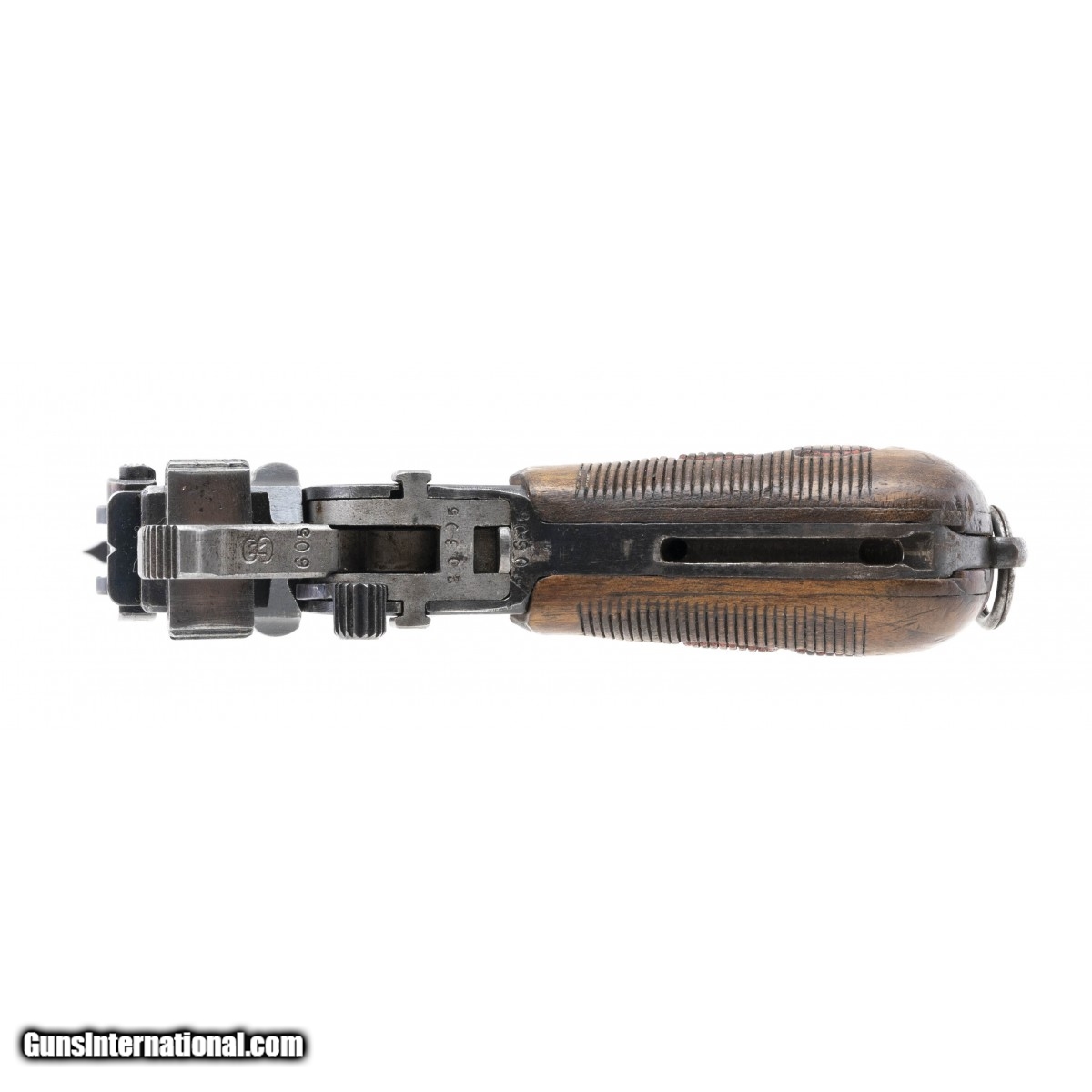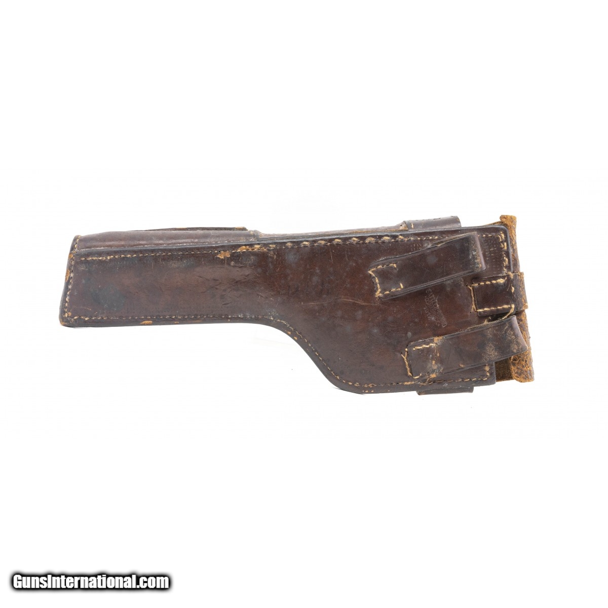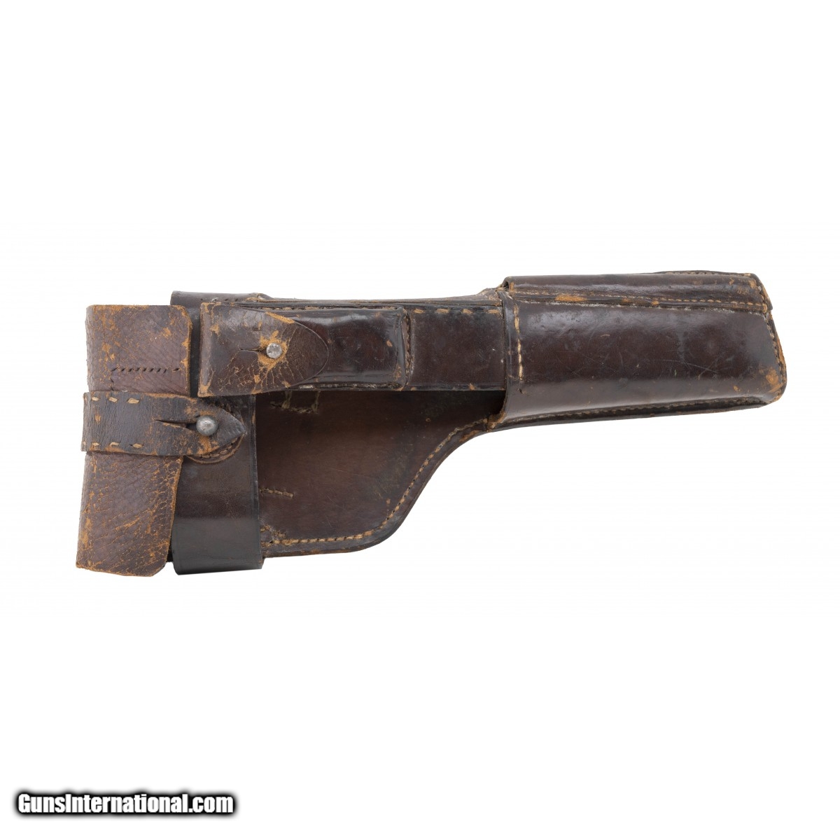 Description: " Very desirable WWI German Red Nine made by Mauser. Early production with serial number 20,605. Serial numbers are matching. Bore is excellent. Comes with an original shoulder stock. Leather strap on front of holster has broken off. Back of leather is dated 1917 and marked ""Sattler-Innung Osnabruck"". Front pouch has an extra spring. Shoulder stock is numbered, but not to pistol. Metal has approximately 95% original finish with some minor loss on underside of barrel due to being removed from shoulder stock holster. Right side of chamber is marked with a crown over a gothic M. Very good plus overall condition. A fantastic example. SOLD Curio/Relic: Yes |