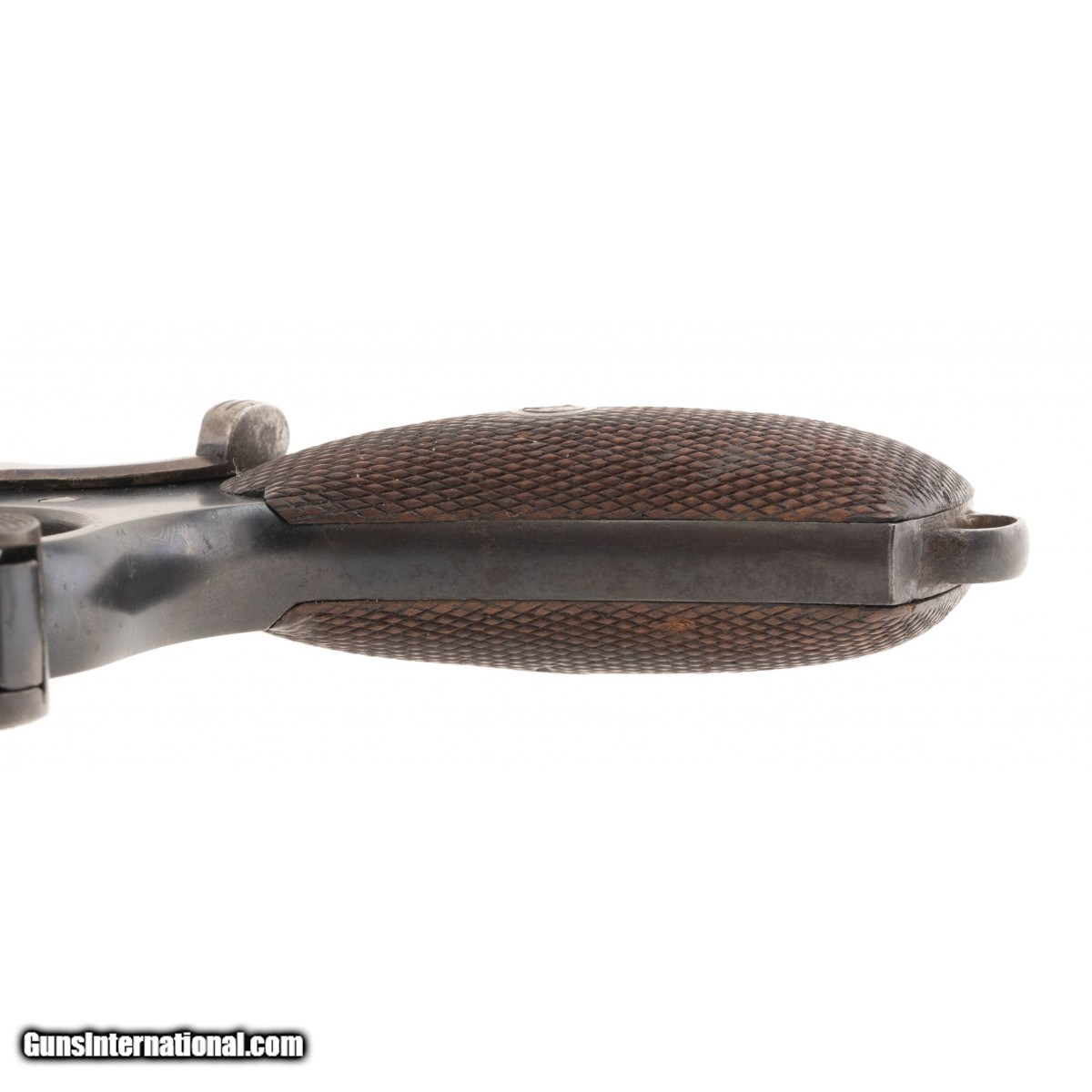 Description: " Rare Bergman semi-auto pistol. This is the 3rd variation, made 1896-98. Barrel length is 4.5"" with excellent bore. The metal has 98% beautiful factory blue. Grips are excellent. The straw parts have strong straw colors. A beautiful Bergman 1896 No.3. Top condition for any Bergman. This pistol is antique and requires no FFL. Note: A correct stripper clip type magazine with ammo is available for $500. The magazine is much more rare than the pistol! SOLD |