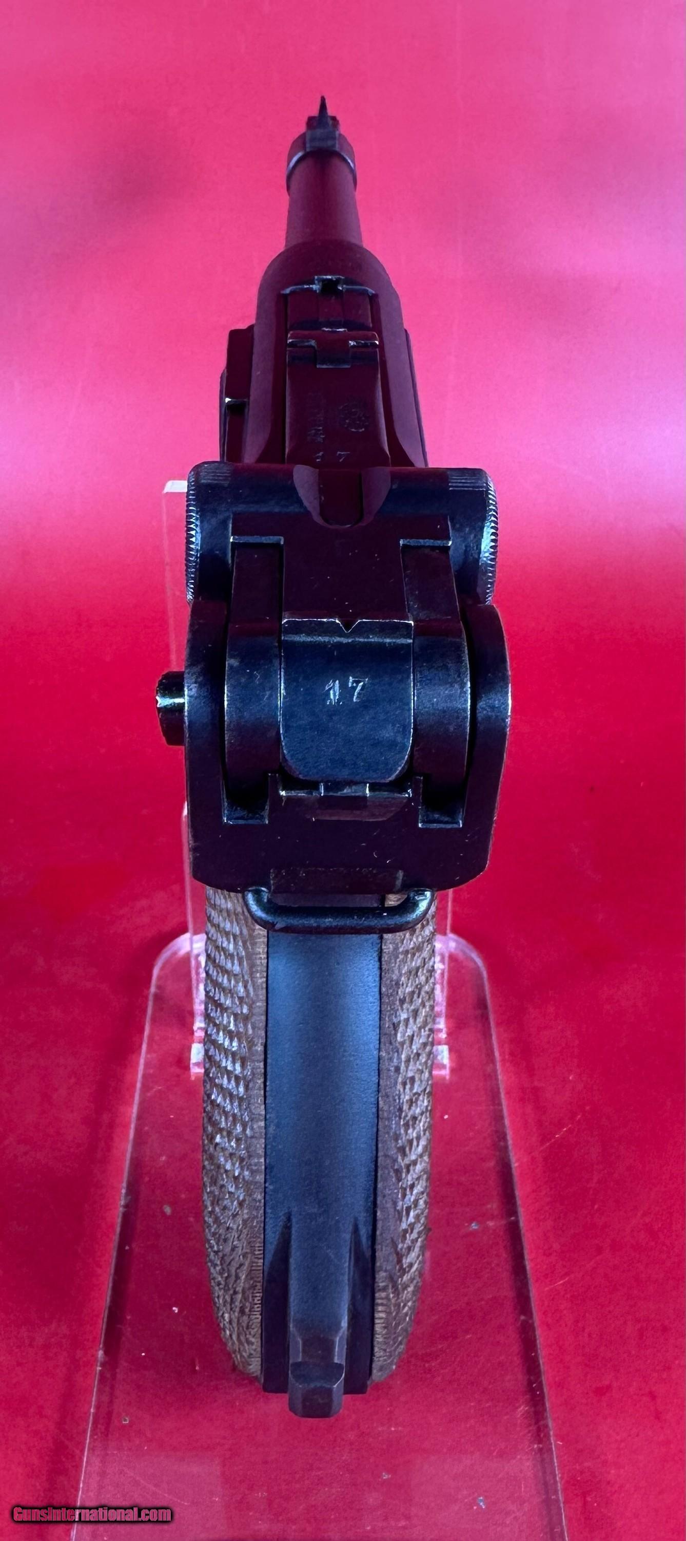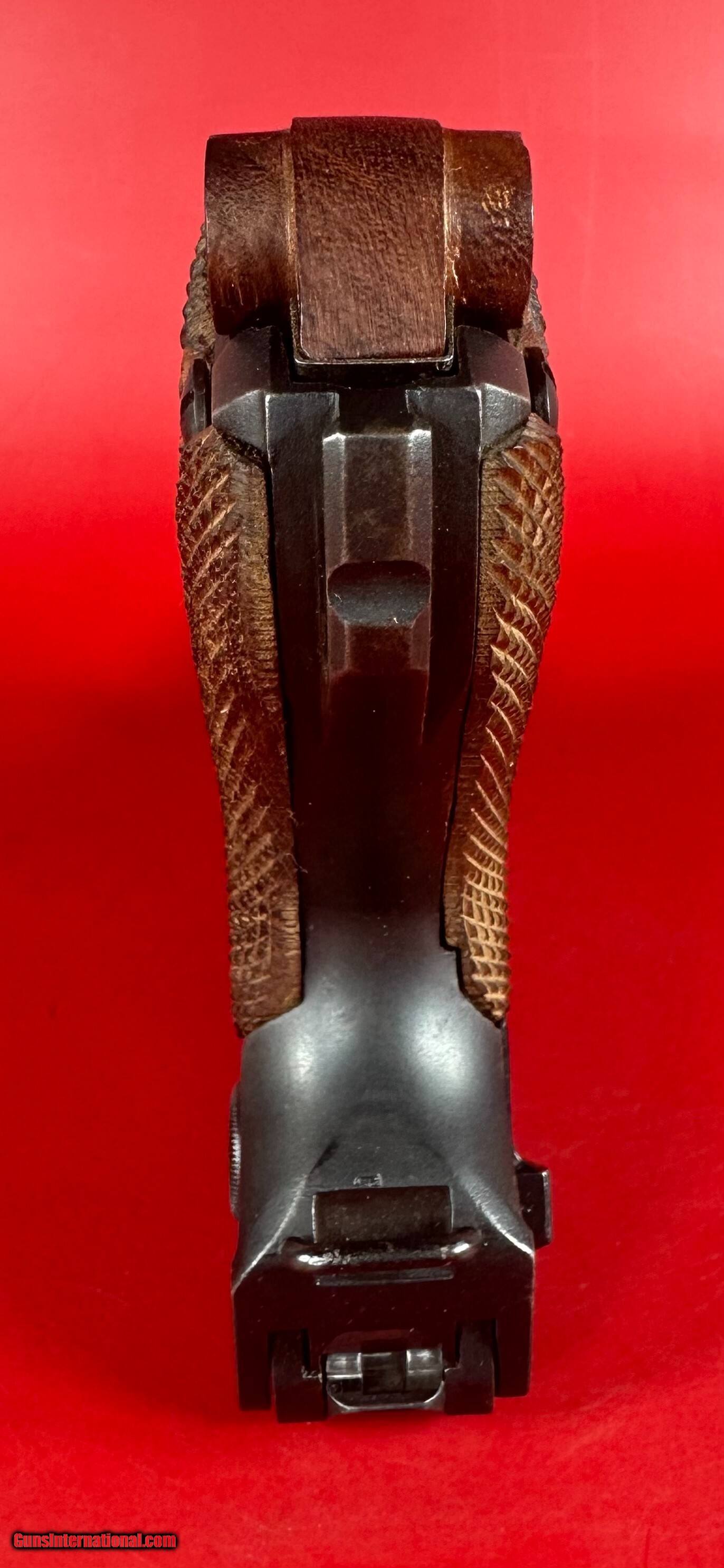 Description: For sale an iconic German semi automatic pistol 1916 Erfurt P08 Luger. This is war (WW1 WWI) production and has Army proofs. The example is in excellent condition. Sale includes 2 magazines, leather holster and luger tool. Bright bore with very strong rifling. Bluing is about 98%, wood grips are about 98%, no chips or cracks. Action functions the way it should. All visible and internal numbers are matching. This gun will make a great addition to any collection. Specifications Manufacturer: Erfurt Model: P.08 Luger ( P08, P 08, P-08, P.08 ) Caliber: 9 mm Capacity: 8+1 Barrel Length: 4" Finish: Blued Stock/Grips: Checkered wood grips Sight/Optic: Rear V notch groove, Front blade Magazines Included: 2 x 8rd mag Layaway and payment plan are available. Handgun Caliber: 9x19mm Parabellum (9mm Luger, 9x19mm NATO) Price: $2,299.00 Shipping: $39.00 Contact Seller |