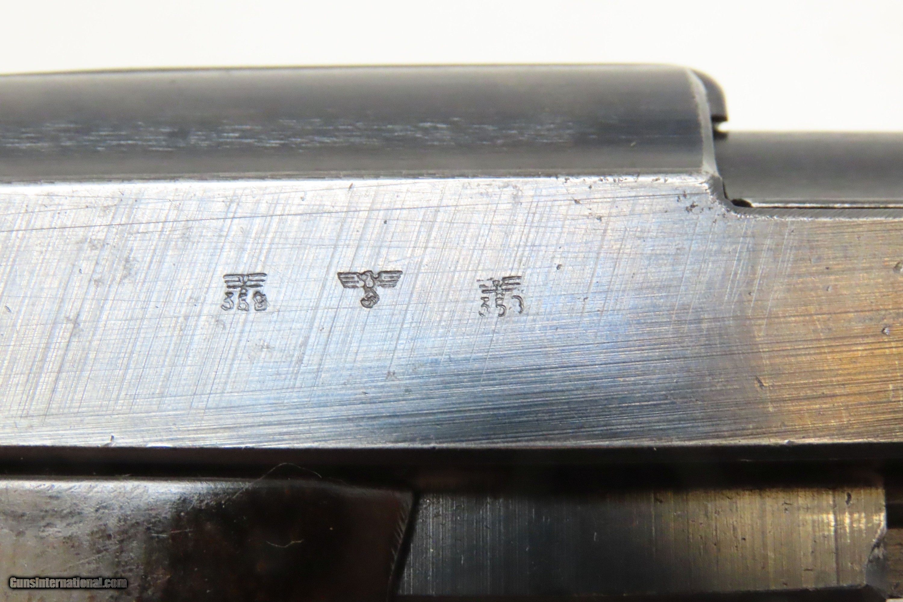 Description: 1943 WWII Walther “ac/43” Code P.38 Pistol & HOLSTER 9x19mm THIRD REICH C&R German Wehrmacht Sidearm WaA Here we present a C&R German Third Reich Walther “ac/43” code P.38 Pistol, made in 1943 in Zella-Mehlis, Germany. The P.38 was designed by Walther to replace the Luger P.08 as the standard service weapon for the Third Reich’s Wehrmacht. The Luger was a ground-breaking design, but quite expensive to produce. The P.38 was the first locking breech pistol to feature the double/single action firing mechanism with a decocking safety lever, a prelude to many modern pistols to come. It also features a loaded chamber indicator that is both visible and tactile, extending out of the top rear of the slide, just above the hammer. The falling block locking mechanism was also carried into future pistol designs. Many of these design features are found in the Beretta 92 or U.S. M9 pistols. The Wehrmacht was the primary buyer of these pistols, but the German police also used about 6,800 P.38s. The left side of the slide is marked “P.38” and “ac/43”, the code for Walther and the year of manufacture. This pistol bears the acceptance/proof marks “Eagle/359” and “Eagle/Swastika”. Also included is a “joa/1943” marked, “Eagle/WaA706” proofed, and “Eagle/Swastika” marked P.38 black leather holster. This holster was produced by Carl Heinichen of Dresden in 1943. It is quite rare, as most P.38 holsters were being made in hardshell versions. The overall condition is fine. Great blued finish. The action is excellent. The bore is shiny bright with sharp rifling. The grips are solid. The numbers match. The leather holster is likewise in fine shape with clear markings. This firearm is classified as a Curio & Relic. Barrel is 5 inches. Caliber: 9x19mm Luger (Parabellum) Overall condition as seen in photos. Very Fast. Very Safe. FREE SHIPPING. Will need to be sent to your local FFL or C&R licensee. This firearm is classified as a Curio & Relic. Guaranteed AUTHENTIC & Includes CERTIFICATE OF AUTHENTICITY. ancestryguns $2500 #230827 SOLD Curio/Relic: Yes |