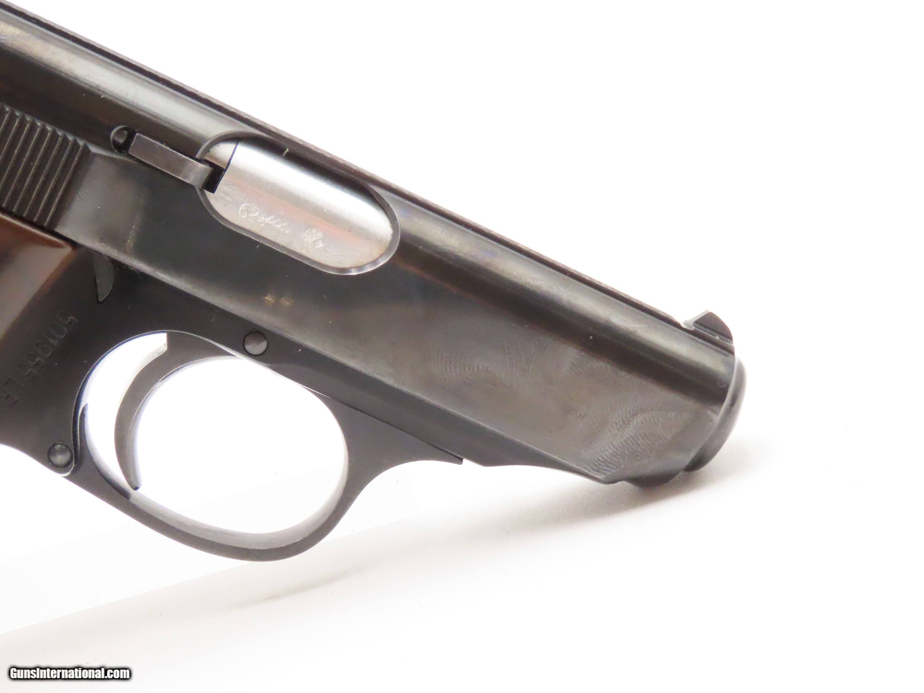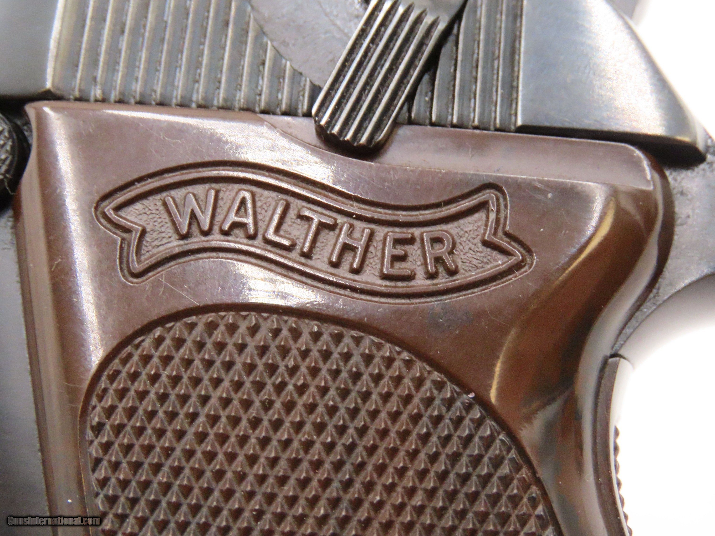 Description: 1962 ORIGINAL BOX SET German WALTHER Model PPK-L DURAL .22 LR Pistol C&R w/MATCHING FACTORY BOX, EXTRA MAGAZINE & BORE BRUSH Here we present a C&R Walther Model PPK-L Pistol in .22 Long Rifle. Also known as the "PPK-Dural", this post-war pistol was made in West Germany in 1962 using a steel slide and a Duralumin alloy frame. It includes the original "snake skin" box and an extra flat base magazine. The Walther PP pistols are semi-automatic pistols developed by the German arms manufacturer Carl Walther. The PP and the PPK were among the world's first successful double action semi-automatic pistols. The PP, or Police Pistol (Polizei Pistole) was a handgun designed for use by the German Police. This weapon found considerable use across both military and civilian markets and proved to be one of the most famous of its kind, which was really the first truly successful double-action semi-automatic pistol using an external hammer. When WWII began, many different organizations within the Third Reich Party and outside made use of these handy and reliable pistols. The PPK was the smaller version of this pistol and most famously used by the fictional spy, James Bond, but was also the pistol supposedly used in Hitler’s alleged suicide. The PPK is still manufactured by Walther, but the PP went out of production in 1999. These little pistols have been widely copied over the years. They feature an exposed hammer, a traditional double-action trigger mechanism, a single-column magazine, and a fixed barrel that also acts as the guide rod for the recoil spring. The Walther TPH pocket pistol is a smaller caliber pistol introduced in 1971 identical in handling and operation to the PPK. Various PP series have been manufactured in Germany, France and the United States. In the past, the PPK version was manufactured by Walther in its own factory in Germany, as well as under licenses by Manurhin in France, Interarms in Virginia, and by Smith & Wesson in Maine. Since 2018, PPK and PPK/S models have been built at the factory of U.S.-based subsidiary Walther Arms, Inc. The overall condition is very fine. Original finish. The action is excellent and the bore is shiny bright and well-rifled. Solid grips. The box shows a little storage wear but is in fine overall condition with papers, extra magazine and bore brush. Own the original! This firearm is classified as a Curio & Relic. Barrel is 3-1/4 inches. Caliber: .22 Long Rifle Rimfire Overall condition as seen in photos. Very Fast. Very Safe. FREE SHIPPING. Will need to be sent to your local FFL or C&R licensee. This firearm is classified as a Curio & Relic. Guaranteed AUTHENTIC & Includes CERTIFICATE OF AUTHENTICITY. $2400 #258217 Curio/Relic: Yes Price: $2,400.00 Buy Now Pay with ![]() Contact Seller |