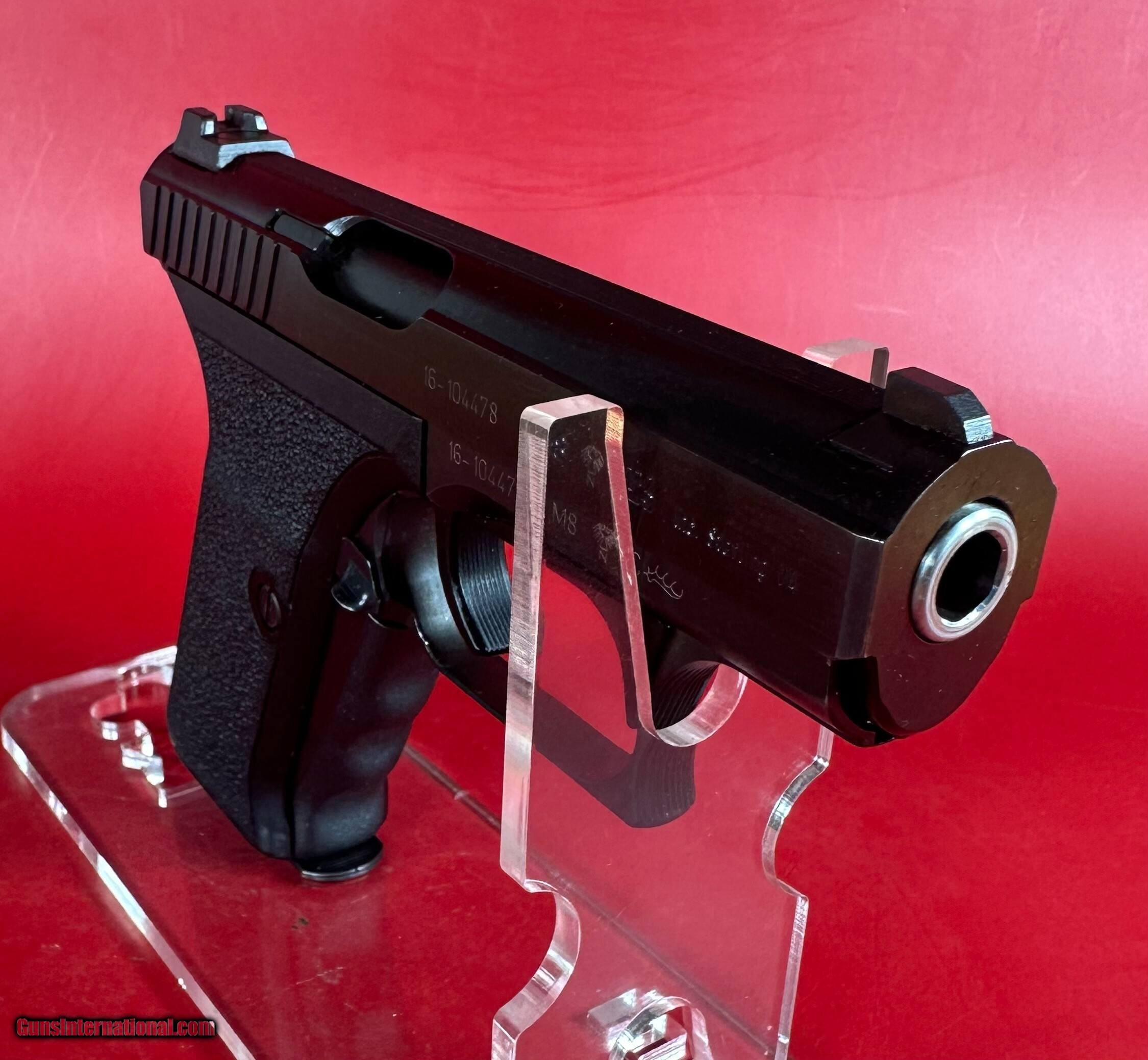 Description: For sale 1992 Heckler & Koch P7M8. For many collectors the P7, "squeeze cocker" is a sought after example of HK’s design excellence. At seven inches long, five inches tall, an inch and a quarter wide, and weighing almost two pounds, the P7M8 is a improved version of the P7. P7 design is based on the Barnitzke system, a gas-retarded blowback system that utilizes bleed-off gases from each round fired to drive an operating rod which cycles the slide. In many ways this system is similar to modern piston driven rifles (AK and AR ) but in other ways the system is unique. The example is in excellent condition. Bore is excellent, metal and grips about 98+%. The sale incudes two original magazines, original box, serialized to the gun, manual, and tools (gas chamber brush and gas chamber scraper-take down tool). Don't miss your chance to own one of the most iconic firearms in the history. Manufacturer: Heckler & Koch Model: P7 M8 W. Germany Caliber: 9mm Barrel: 4" Bore Condition: Excellent Year Manufactured: 1992 Layaway and payment plan are available. P7m13, p7m10, psm8, psp, p7 m8 m10 m13 Handgun Caliber: 9x19mm Parabellum (9mm Luger, 9x19mm NATO) Price: $4,499.00 Shipping: $50.00 Contact Seller |
