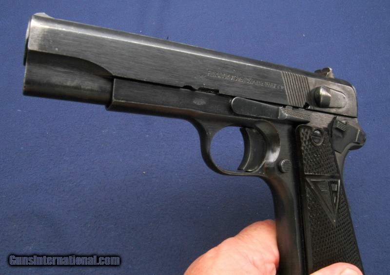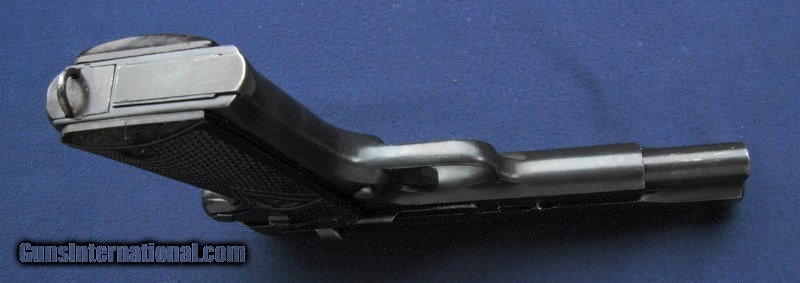Description: Lovely original pistol just as it came back after WW2! All numbers match on the Radom, frame, barrel and slide. Even the grips are numbered to the gun. 2 original WW2 magazines. Bore is a little dark, but with strong rifling and no pitting. Gun is stamped several times with Eagle over WaA77. The only issue is that the hammer drop safety does not work. I am told that is common and an easy gunsmith fix. $35 shipping to the lower 48, 3% surcharge for using a CC. If you choose to pay with a personal check, we will hold the item for up to 10 days to make sure that it clears. Please expedite such pymts as we will hold an item on your word for 5 days. SOLD |