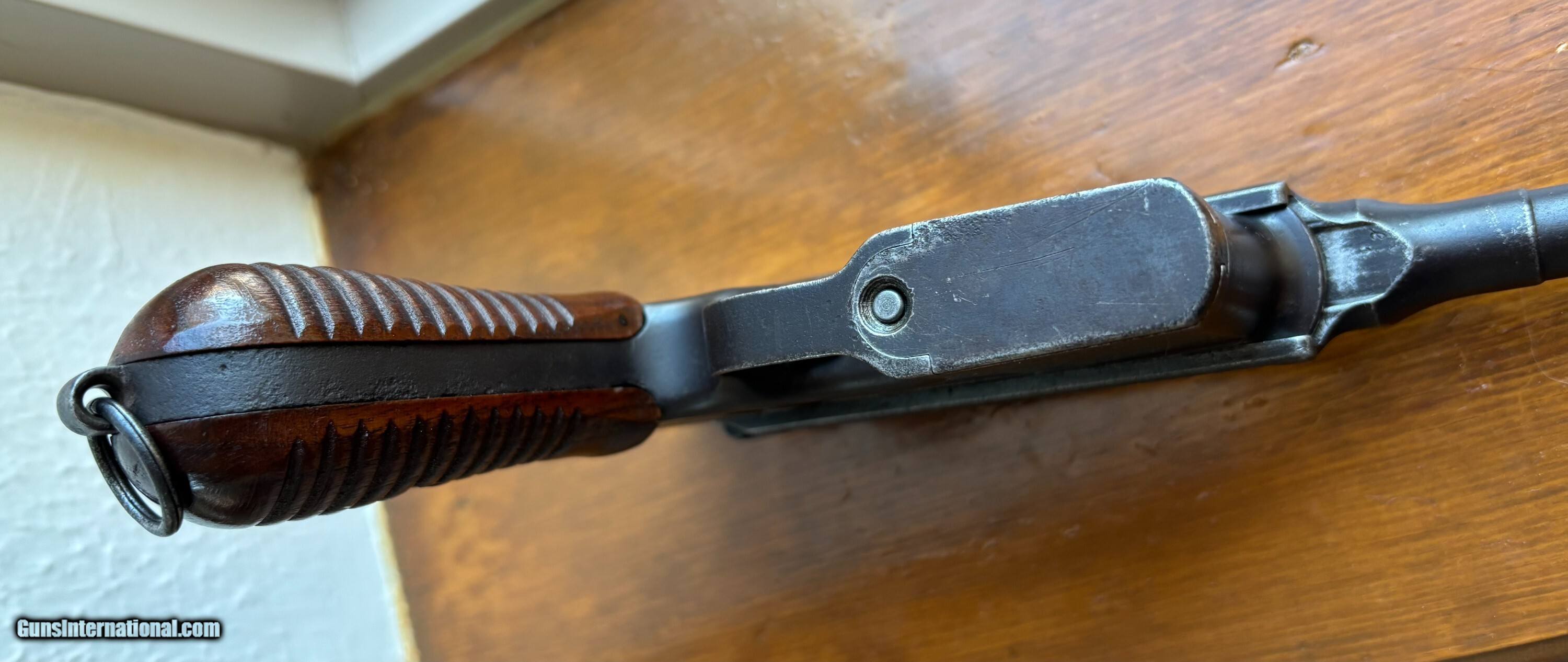 Description: Considering that vast majority of guns that came from China are literally in a relic condition, this gun is fairly nice, with decent amount of orginal blue shifting to patina. Bore is like mirror with strong rifling which you dont see on 99% of the guns that came out of China. The gun has only one serial number which is correct for model 1930 C96. Made in 1930s at Mauser factory in Oberndorf, shipped to China pre WWII, marked with 3 Chinese characters on the mag well. Action and safety work. Grips are correct 12 grove type but were probably replaced later on in the life of this pistol. CR license is acceptable for this gun. Price: $1,899.00 Contact Seller |