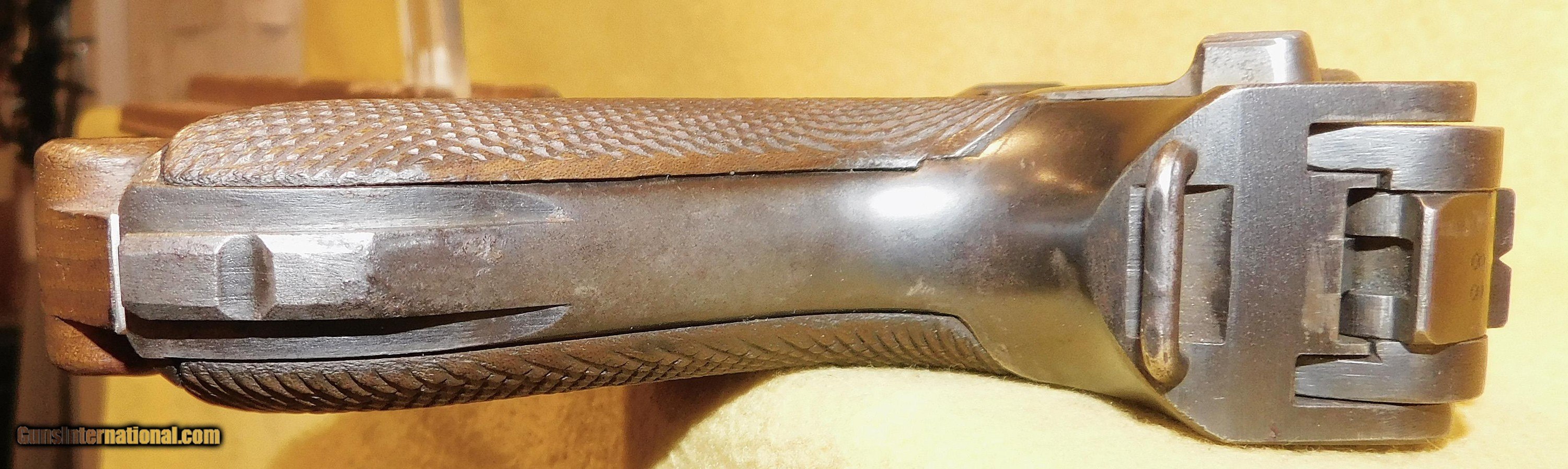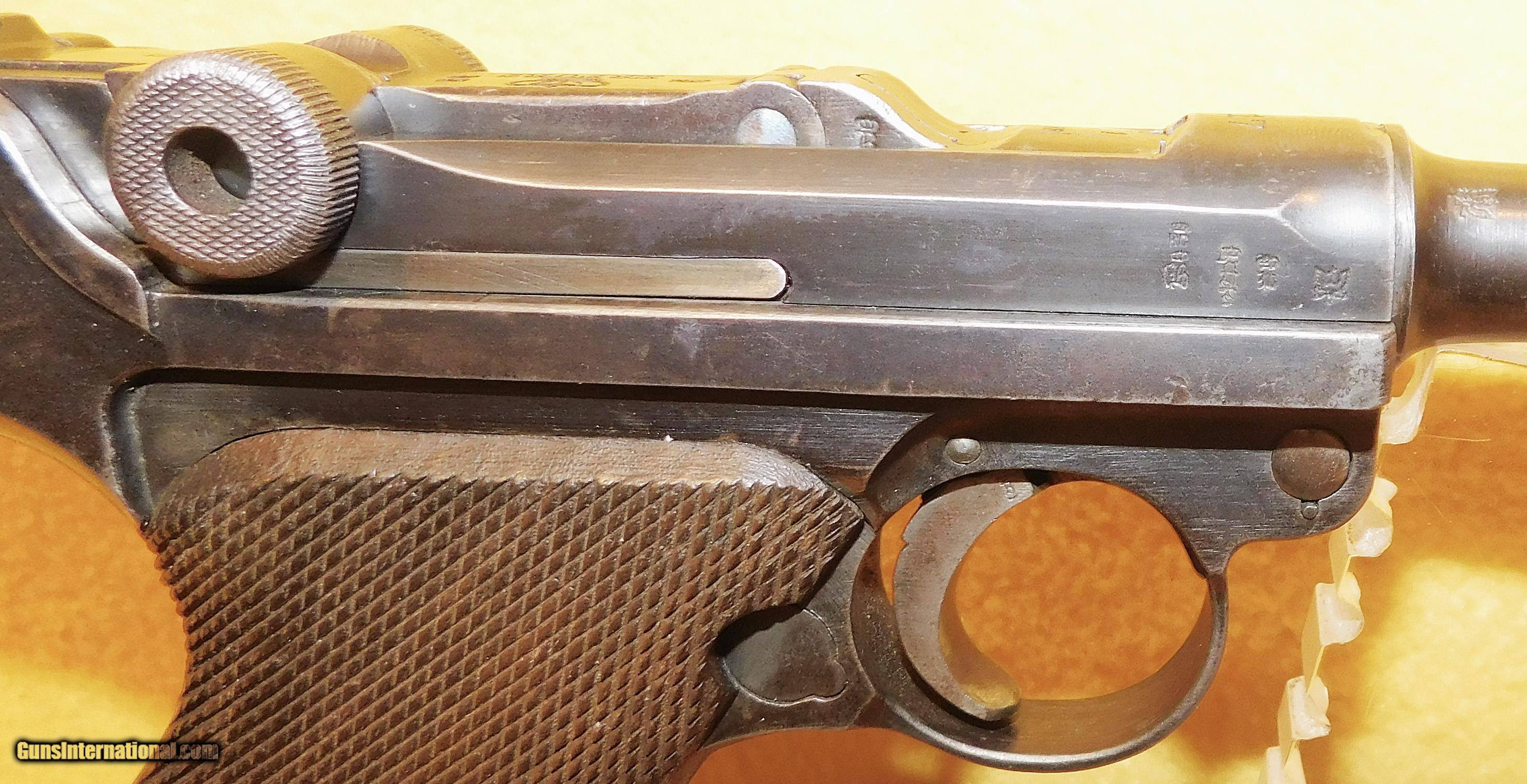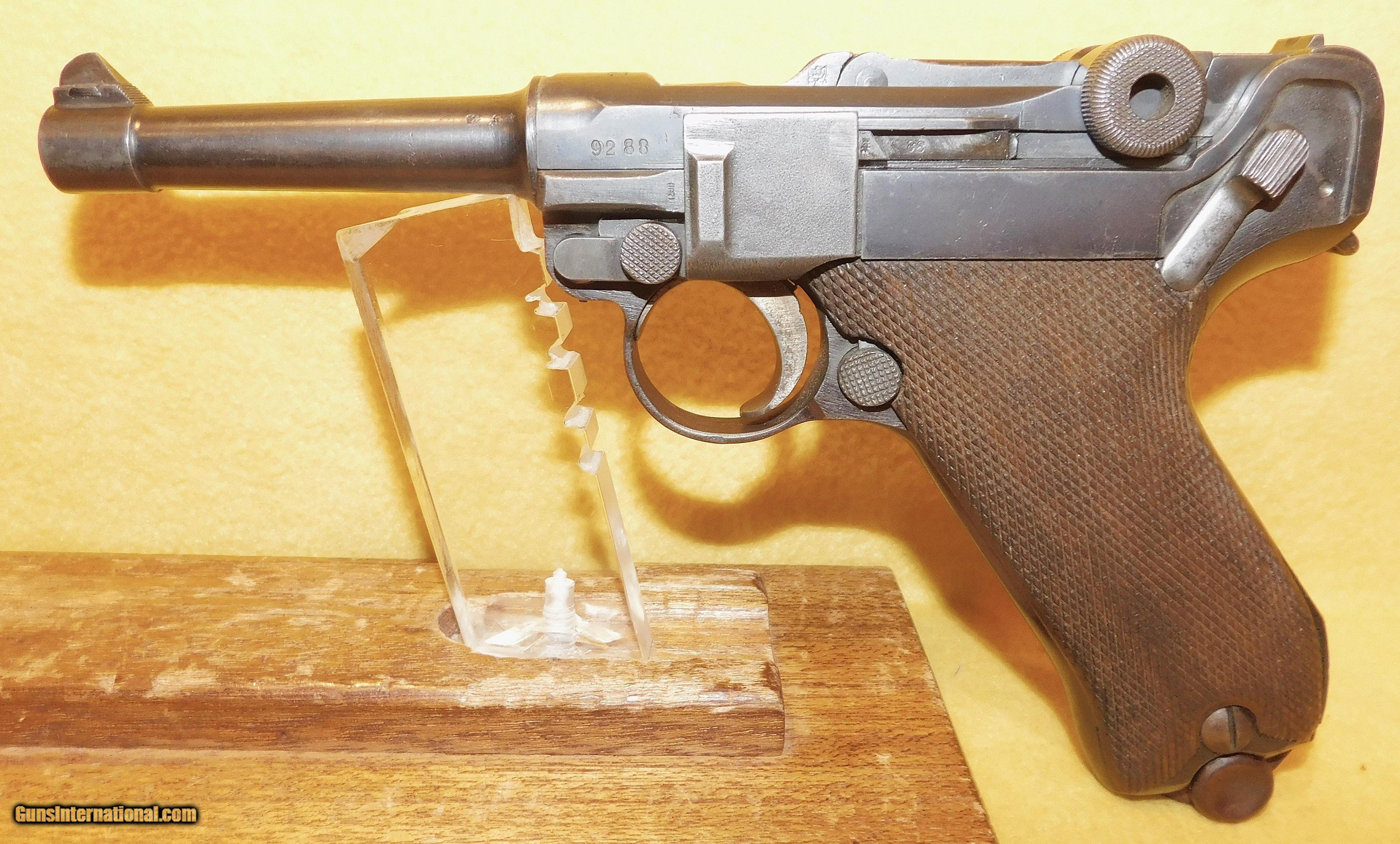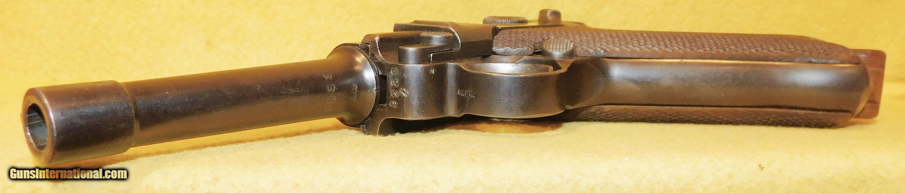 Description: ERFURT 1917 P08 (LUGER) IN 9MM CAL., WITH 4" BARREL. COLOR BLUE. CONDITION 95%. SERIAL NUMBER 9288 i. ERFURT MODEL 1917 P08 LUGER (CIRCA 1917) IN 9MM CALIBER, MIRROR BORE, GRIPS ARE EXCELLENT AND SERIELD TO THE FIREARM, ALL MATCHING NUMBERS EXCEPT FOR THE SIDE PLATE AND TAKE DOWN LEAVER, FIRING PIN IS SERIAL TO THE P08, COMES WITH ONE WOOD BASE MAGAZINE WITH WRONG SERIAL NUMBER, 95% OVERALL CONDITION, OUR STOCK # D8116 Price: $1,395.00 Contact Seller |