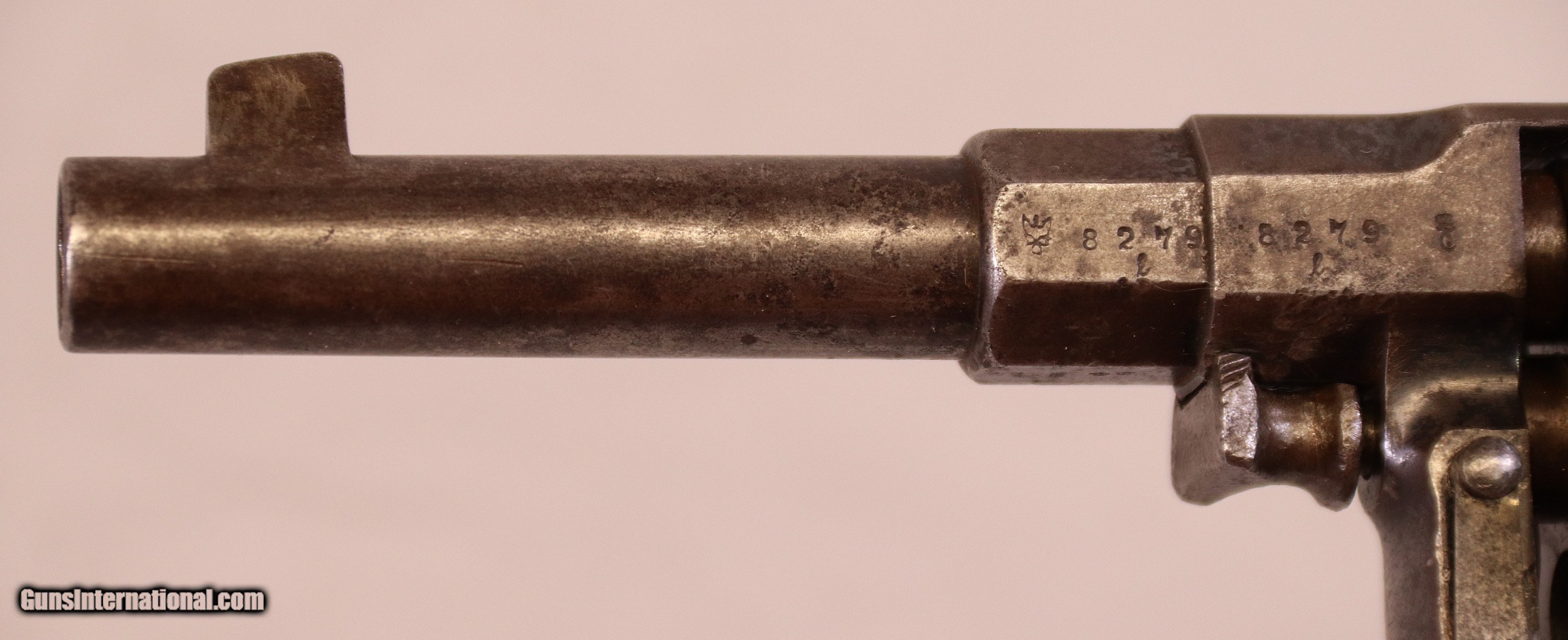 Description: The M-1883 Reichsrevolver was the predecessor to the Luger in the Imperial German Army. This particular revolver was made in 1894 and is Unit Marked “1.F.M.6.G. 173”. All numbers are matching, including the screws. The finish is generally brown and the bore is rough. The action functions, with a typical heavy mainspring. Its hard to believe that when the U.S. Army was issuing Colt M-1873 SAA’s that the Germans were issuing this crude revolver. It remains an interesting collectable because, among other things, it was recalled and replaced with the Luger Pistol. What an interesting contrast of arms. Serial Number 8279, Cal. 10.6mm with a 4 ¾” barrel. ANTIQUE Beaver Creek Arms TERMS & CONDITIONS Objective: As a collector of 35 years and Licensed Firearms Dealer since 1989 I have a clear definition of a satisfactory transaction. I will be paid as we agreed to, and you will be satisfied with your purchase. My goal is to establish a client list of satisfied repeat customers who will recommend me to other collectors. It’s just that simple. Exiled Saudi princes with secret funds needing change from an over paid purchase need not apply. Notice: ALL Federal, State, & Local firearms laws will be followed. I will take NO shortcuts in the process of a legal sale or transfer, so please don’t ask. SHIPPING: Normally shipments are made via U.S.P.S. Priority Mail, Insured, with Signature required. Typical Packing, Shipping and Insurance cost for a handgun is $30.00, and for a Long Gun is $45.00. Checks to be made out to: Steve Clark Mailed to: 380 Beaver Creek Rd. Dillsburg PA 17019 FIREARMS: Modern firearms, post 1898, can only be shipped to a Type 01 Federal Firearms License address. Curio-Relic firearms, as defined by the BATF list, can usually be shipped to a Type 03 Collectors License address. Some states have additional restrictions such as CA, CT, DC, IL, NJ and NY. A signed valid FFL license copy either mailed or emailed will be required for shipment to only the license address. Antique firearms, pre 1898 do not require a Federal License. For purchase, a copy of a Government Issued Identification (Drivers License, Etc), showing date of birth and current address will be required. GUARANTEE: Your complete satisfaction is assured, see objective above. If you are not satisfied, please contact me within 3 days of receipt. Please don’t fire the weapon, safety, function and accuracy are NOT Guaranteed. Any weapon offered by Beaver Creek Arms is never test fired nor is there any representation the gun is functional and safe to fire. These guns are sold for collectors and only represented as used firearms that must be checked by a competent person, observe all the necessary safety precautions prior to attempting to load and fire one of these weapons RETURNS: Returns must be made within 3 days of receipt. They must be received in exactly the same condition with no parts exchanged. If it has been altered, damaged, or fired, a refund will not be made. Packing, shipping and insurance cost will not be refunded. All layaway purchases are returnable for merchandise credit only. PAYMENT: Bank check, Personal check, and Money Orders are preferred. Visa and MasterCard are accepted with a 3% processing fee. For Visa and MasterCard orders please provide the account number, code number, expiration date, name on card, phone number and card billing address. This information can be phoned in, or E-Mailed. All orders must be paid in advance, C.O.D. orders are not accepted. Checks, both Bank and Personal must clear before the order will be shipped, usually a 2 week delay. LAYAWAYS: A 20% deposit is required. Balance is due in 60 days. Deposits are non-refundable and are forfeited after 60 days. Layaway sales are returnable for merchandise credit only. SALES TAX: Pennsylvania state sales tax is 6% for in state purchases. The payment of other states sales tax, if applicable, for shipped items is the buyers responsibility. DISCREET: Client information will remain Confidential. Your privacy is protected. SOLD Antique: Yes |