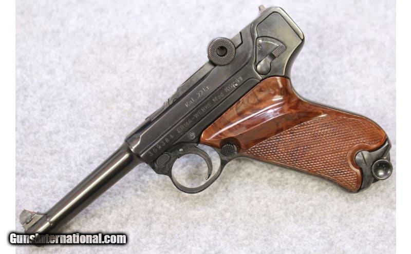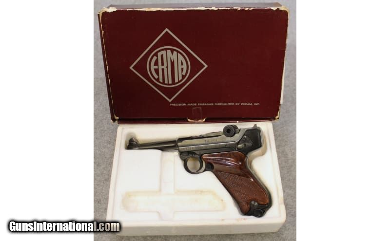 Description: This Erma KGP 69 chambered in .22 LR is in excellent mechanical shape. The Blue finish is excellent besides wear on the safety track and a scratch on the right side frame by rear sight. .22 Long Rifle SOLD Metal Condition: Excellent Bore Condition: Bright Barrels: 4 Weight: 1.7 lbs. Item Location: Hoffman Estates, IL |