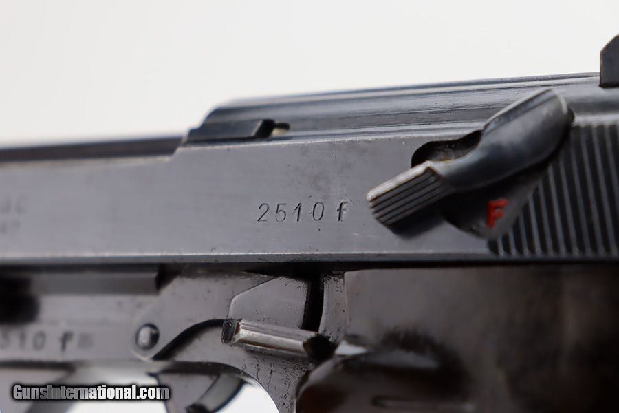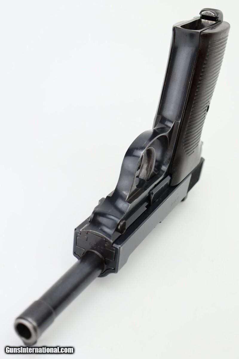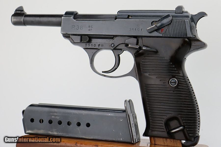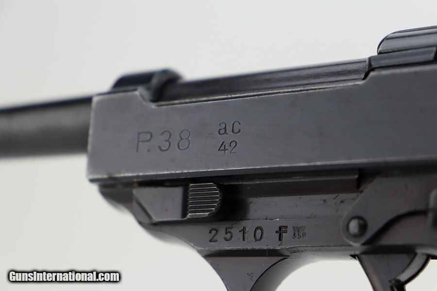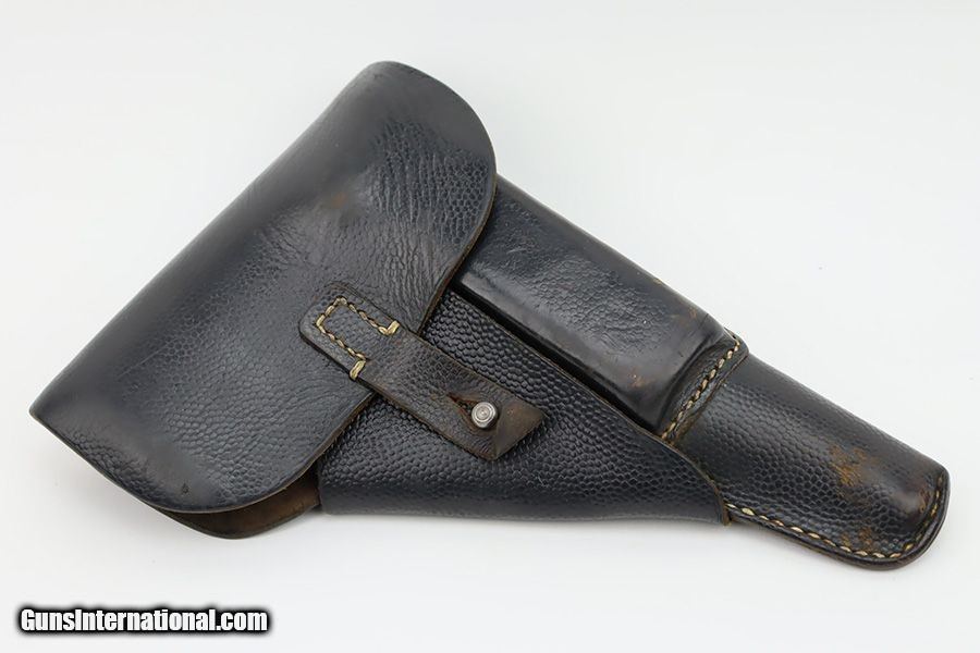 Description: This is an excellent example of an AC 42 Walther P.38 issued to the Nazi military in 1942. All matching with the proper "Eagle 359" military acceptance proofs throughout. It comes as a rig with a very nice 1944-dated pebble grain holster, one numbered but mismatched magazine, and one post-war magazine. The gun itself has retained about 96% of its original finish with just minor wear around the muzzle and front edges of the slide. Some very light freckling along the barrel and on small spot on the left side of the slide. Fitted with excellent period-correct bakelite grips. Very nice bore with great rifling. De-cocker is functional. SOLD Curio/Relic: Yes Handgun Caliber: 9x19mm Parabellum (9mm Luger, 9x19mm NATO) |