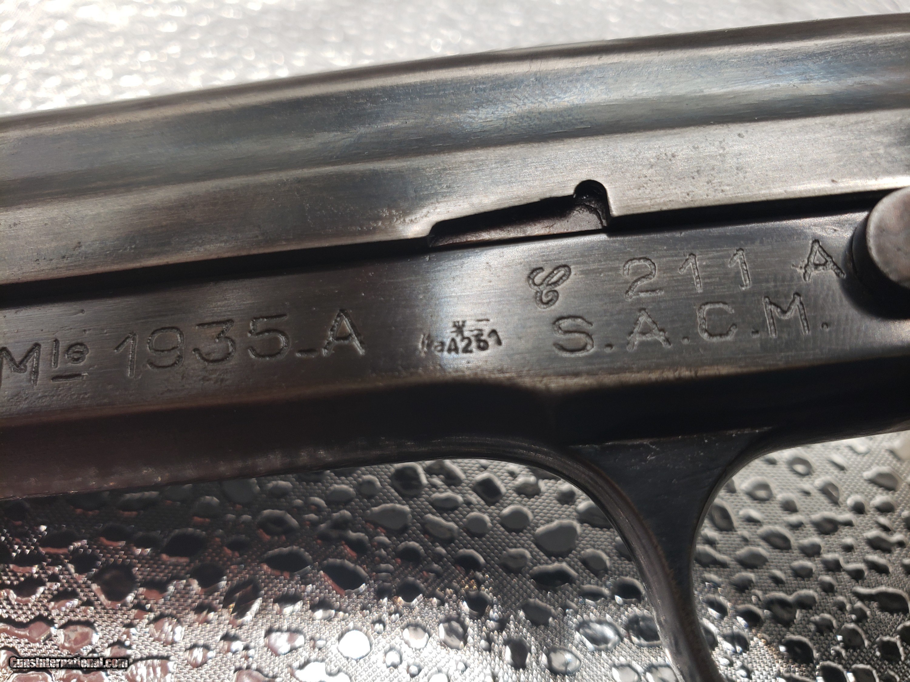 Description: I have a French military Modele 1935 Automatique Pistol with a German Waffenampt aceepatence mark. The 1935 was patterned off of the Colt 1911; the French were so impressed by the 1911 during WW1, that they produced their own version in a light weight model. The pistol is produced by SCAM. Production of the model 1935 started in 1937. When the Germans overran and occupied France in 1940, they were impressed enought by the pistol that they continued production (unitl 1944) and issued them to their own troops. This paticular pistol was produced in 1943 ( script "C" in front of the serial number 211 A). These 1943 prodctions were sent to the depot at Paris for distribution. The waffenampt acceptance mark (A251) is clear in front of the SACM mark. This particualar gun came in a lot of my uncles Nazi bring back souvineers. I've had the gun for about 40 years and recently had a gun smith professionally break it down and clean it. It's fully functional and shows wear and use marks from being in/out of a holster. Please see pictures. If you have any questions, please let me know. I'm open to solid offers. SOLD Curio/Relic: Yes Handgun Caliber: 7.65mm Longue (7.65mm MAS, 7.65mm Long) |