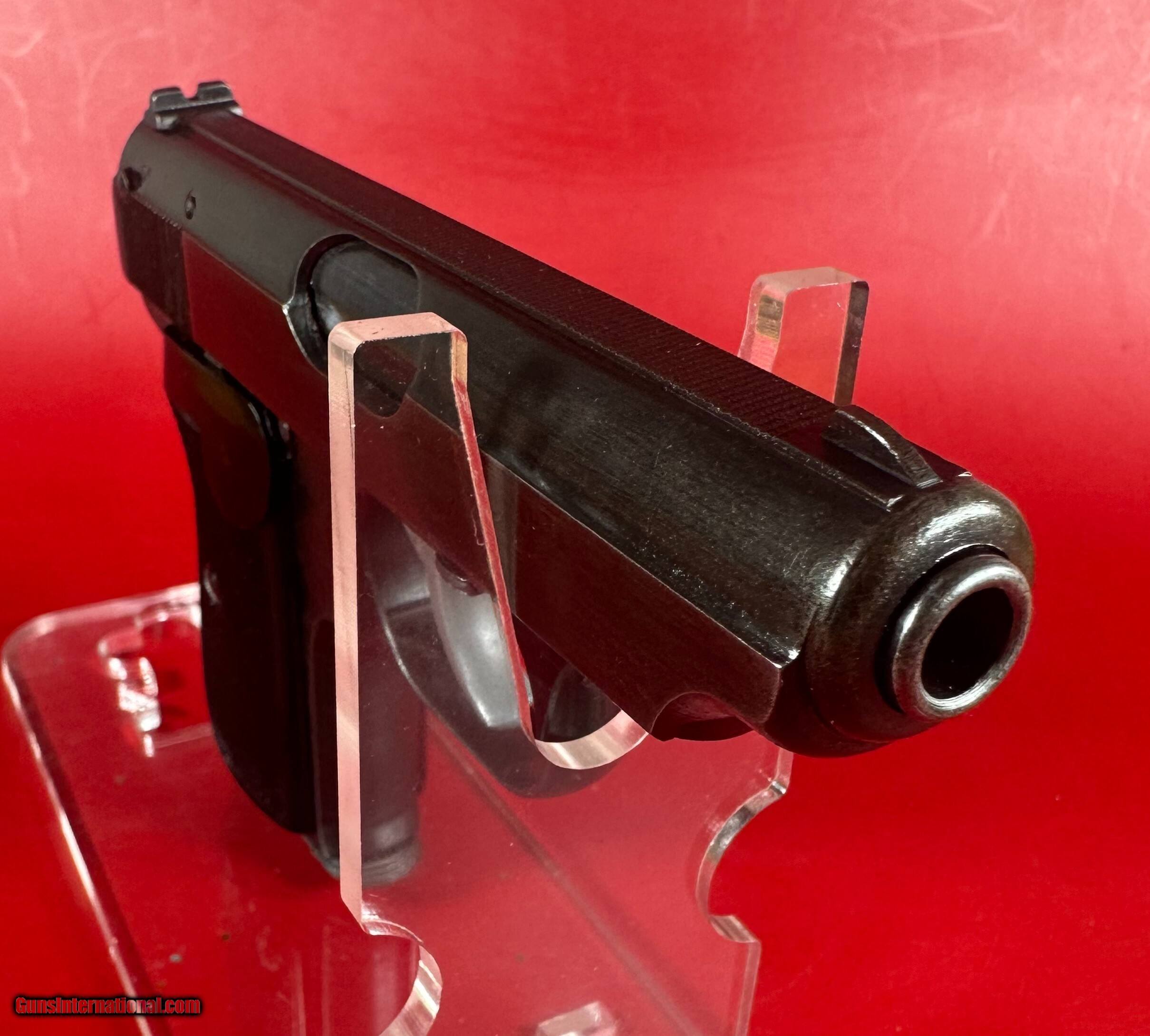 Description: For sale is a Sauer & Sohn 38H, 7.65mm. The gun has a rare German Army eagle 37 proof on the left trigger guard, eagle on the frame and eagle on the slide. This gun was one of the guns issued to the Army instead of the Police. This has the early slide legend with decoker and thumb safety. Matching numbers. The blue rates about 97%, grips 98% and the bore is excellent. Everything functions the way it should. Sale includes one magazine in excellent condition. Amazing gun in amazing condition. Great addition to any collection. Layaway and payment plan are available. Handgun Caliber: .32 ACP (7.65x17mm Browning SR) Price: $1,199.00 Shipping: $39.00 Contact Seller |