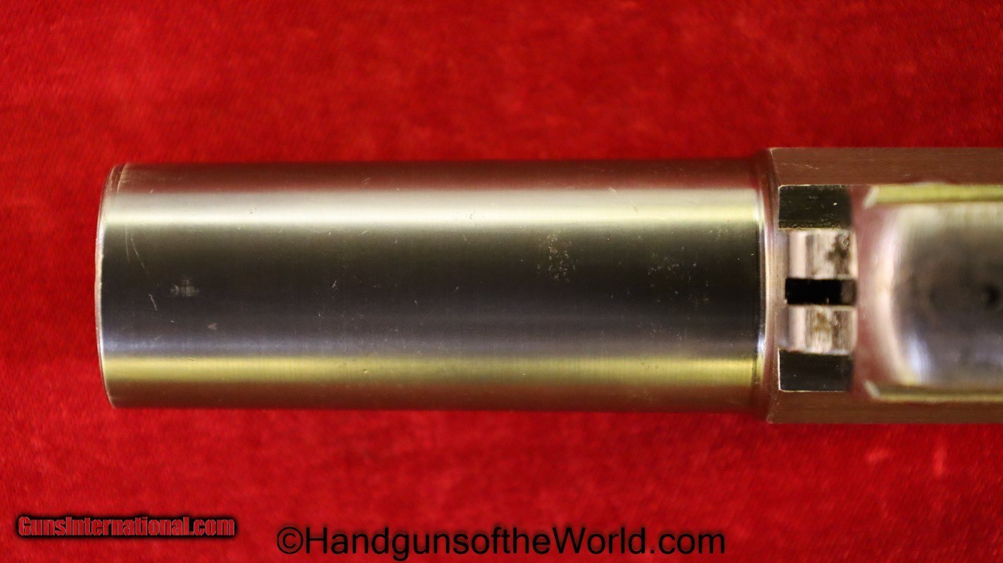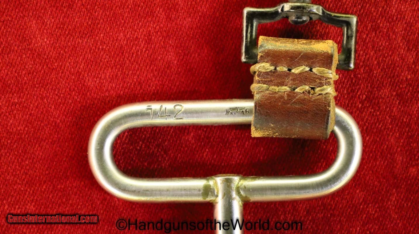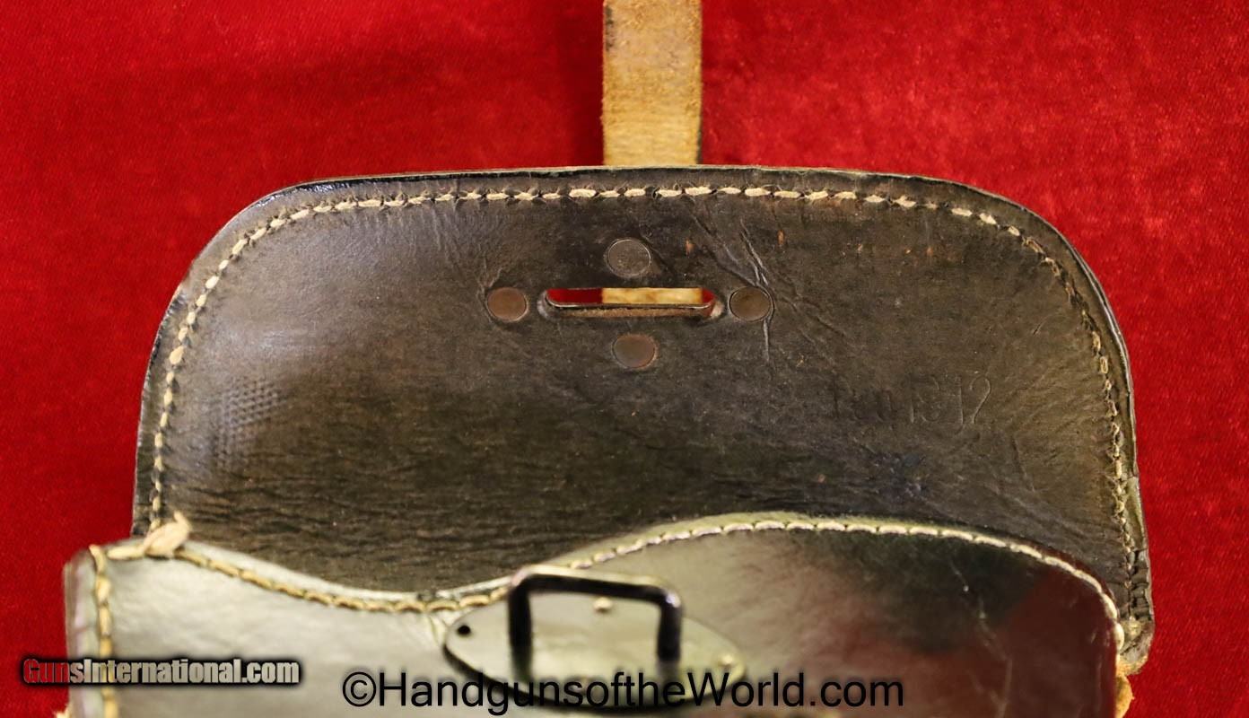 Description: We have a German WWII Herr Flare Pistol, 26.5mm. Maker marked/dated AC 43 on the frame for made by Walther in 1943. This all Steel pistol has the rare 6″ barrel and rarer serrated beechwood grips. About 99% blue remains and the bore is excellent. This Full rig includes a black Ersatz holster, maker marked -FUQ-1942 WaA inside the lid. An original, steel cleaning rod with a WaA proof is included. Manufacturer: Walther Model: Herr Price: $1,975.00 Shipping: $35.00 Contact Seller |