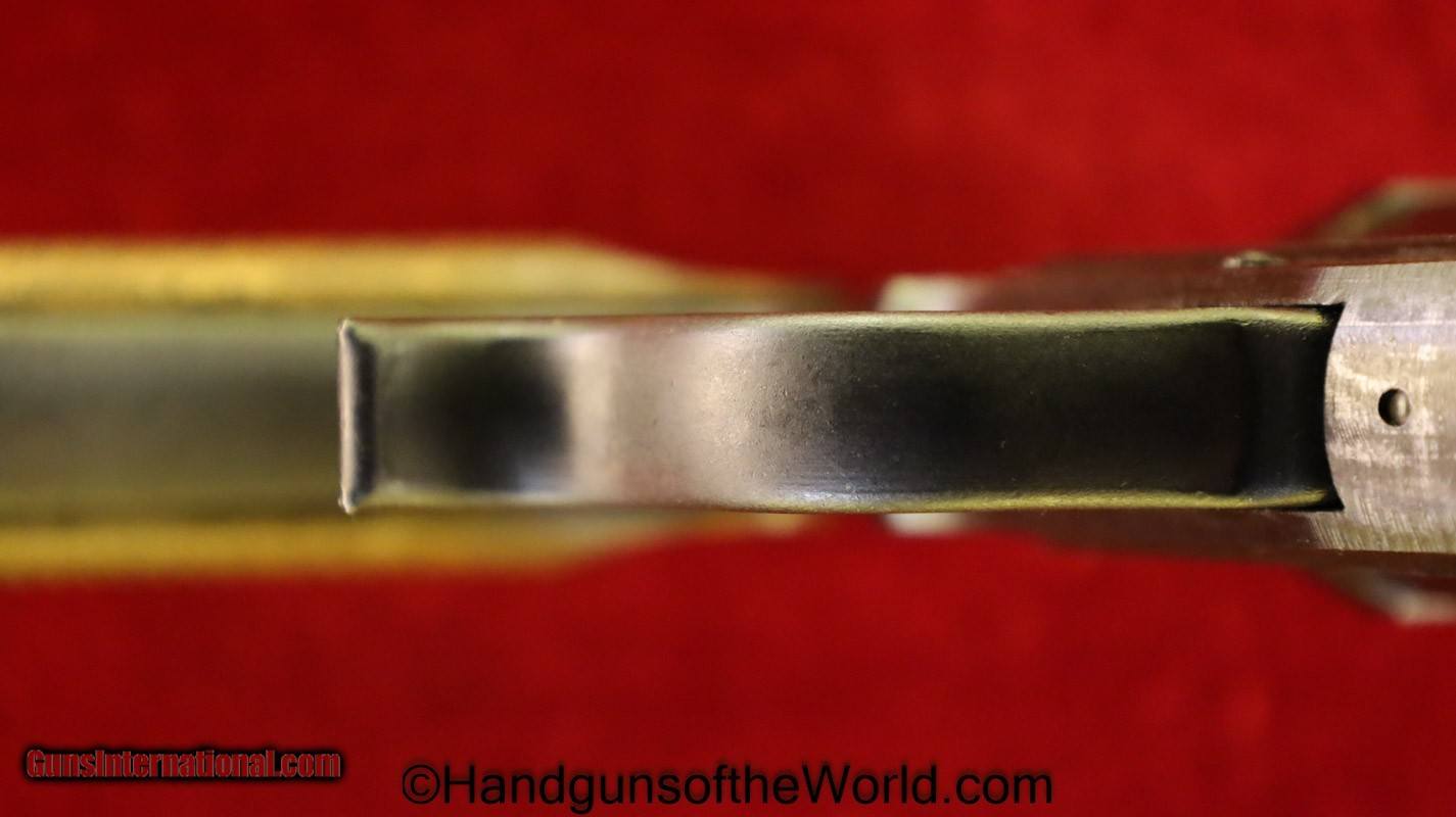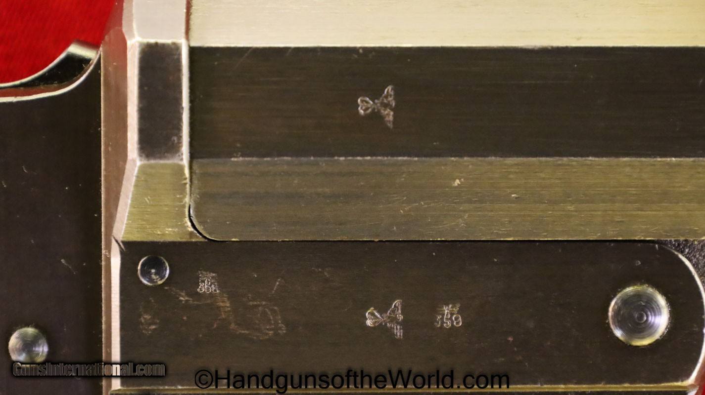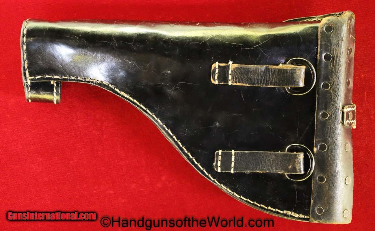 Description: We have a German WWII Herr Flare Pistol, 26.5mm. Maker marked/dated AC 43 on the frame for made by Walther in 1943. This all Steel pistol has the rare 6″ barrel and rarer serrated beechwood grips. About 99% blue remains and the bore is excellent. This Full rig includes a black Ersatz holster, maker marked -FUQ-1942 WaA inside the lid. An original, steel cleaning rod with a WaA proof is included. Manufacturer: Walther Model: Herr Price: $1,975.00 Shipping: $35.00 Contact Seller |
