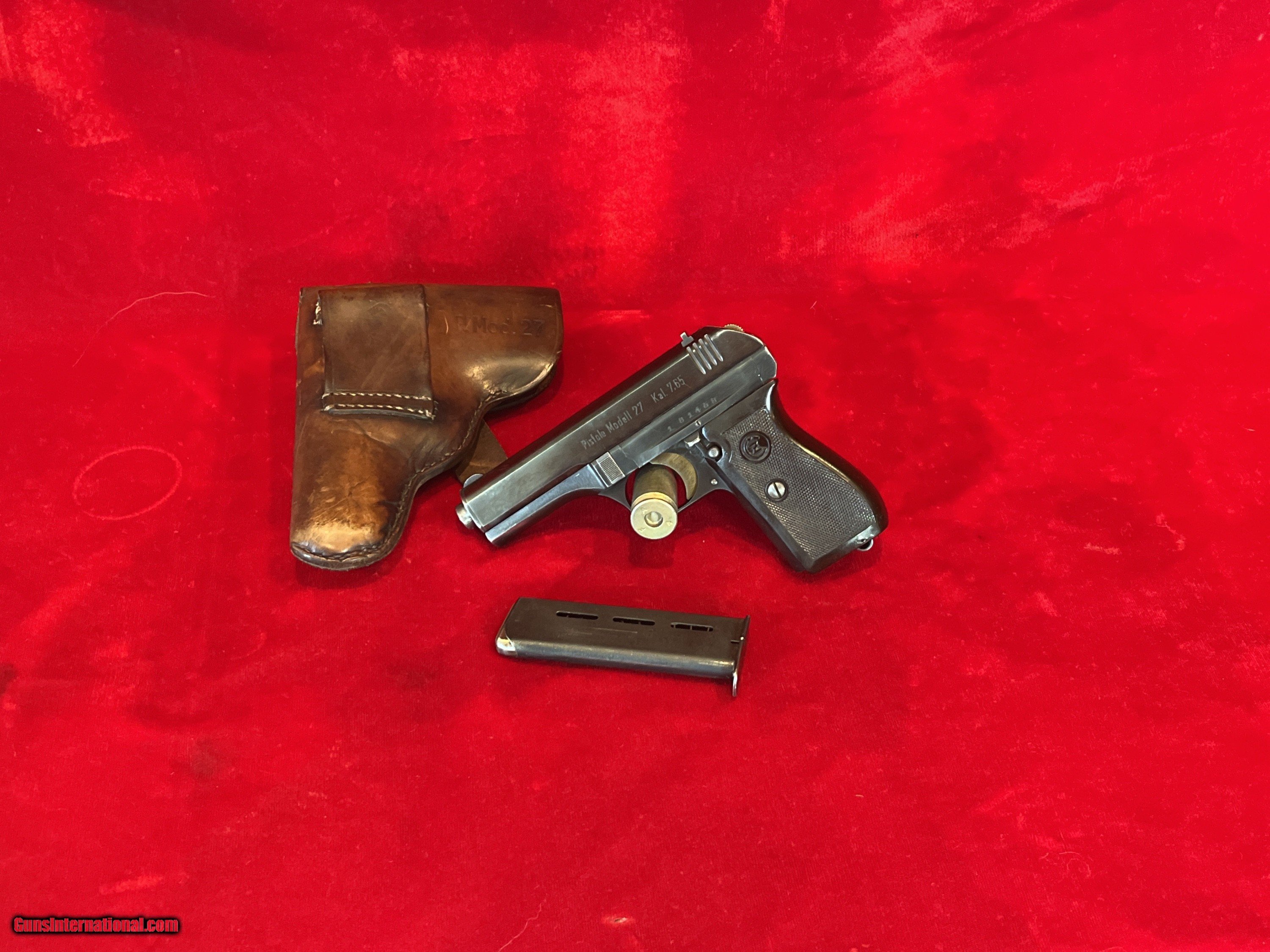 Description: For your consideration is a nice example of a .32 Cal CZ 27 manufactured in 1942 in Checkoslavakia under German occupation. Marked as "Bohmische Waffenfabrik A.G. In Prag". SN 181458. All matching. Great finish and burnished trigger as original. This pistol is in great shape throughout, featuring original high polish metal finish and the grips are in original but do have a missing edge on the top right and rear of the pistol as shown. WaA76 German proofs on both the pistol and holster. All serials are matching and no import mark present. Highly marked original Wermacht holster as shown, also dated 1942. Only one mag included as shown. The second mag is NOT IN THE HOLSTER. Shipping will be 40 dollars. To purchase this firearm simply send me a message via GI with your contact info. I will respond via e-mail with all the information required to complete the purchase. If you must contact me via phone, please text. I work a full time job and its not in a gun store. Keep in mind I am on the West coast and if you call me at 4AM before I've had my coffee we will be off to a rough start. I am an FFL. I will provide my FFL with the shipped item. Total price is sales price plus shipping price plus insurance if desired (1.50 per 100 dollars declared value-optional but recommended). Shipping will be 40 dollars for USPS Priority, Signature required. SOLD Curio/Relic: Yes Handgun Caliber: .32 ACP (7.65x17mm Browning SR) |
