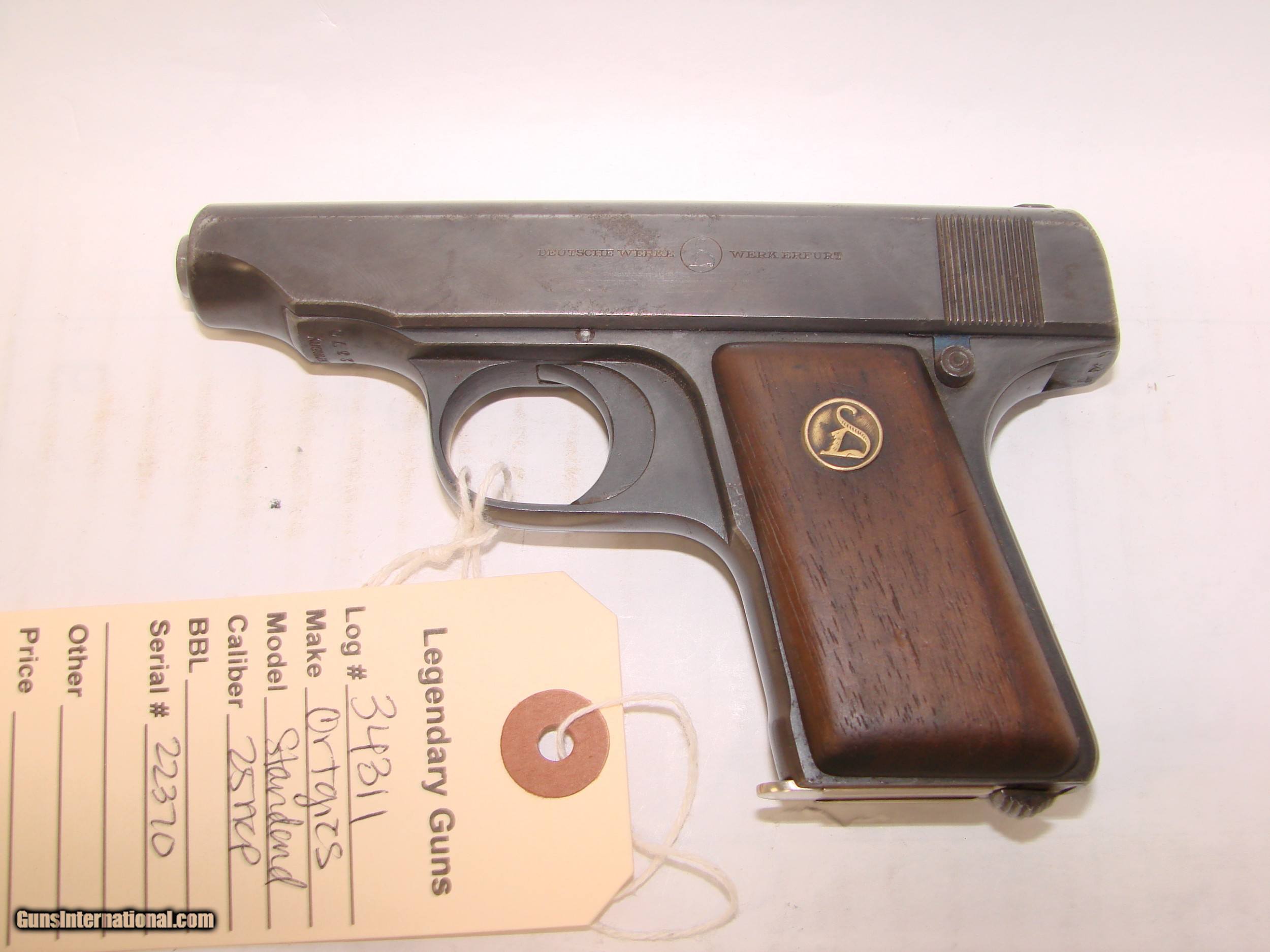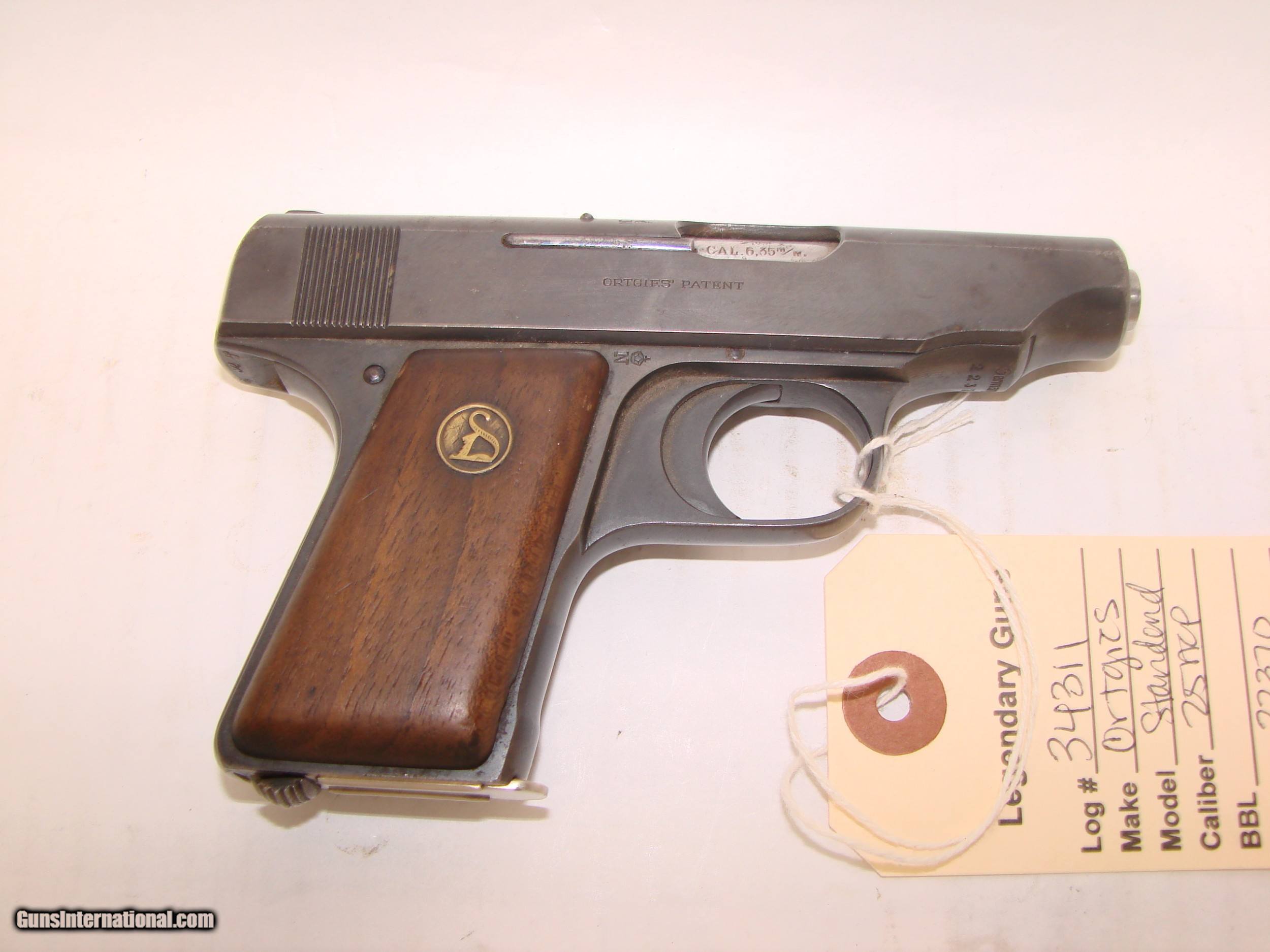 Description: German Ortgies Standard in 25acp with wood grips. Pistol is used in good condition, has some freckling on slide, bore is very good. *Legendary Guns in Phoenix AZ 602-242-1195 Hours of operation Tuesday-Friday 10-6 Sat 10-5 Closed Sundays & Mondays *No Additional Credit Card fees, You only pay for the cost of the item and shipping. We accept all Major credit cards, Postal Money orders or Certified Bank Checks{Checks & Money order payments ship after payment has cleared} *Shipping is $50 for rifles/shotguns {AK & HI Extra} and $35 for handguns. Arizona Residents Must Pay Sales Tax. We do not ship Internationally *We offer a 60 day layaway on purchases of $500 or more. Items require 1/3 of the total price as down payment which is NON-REFUNDABLE and you have 60 days to pay off the balance. *Please call or email the shop for any questions and to confirm availability before buying. We are happy to answer all questions. All items online are also for sale at our Phoenix location *We offer a 3 day inspection period with a full refund if item was misrepresented. We accept returns for any reason within the 3 day inspection period with NO REFUNDS ON SHIPPING CHARGES and a 15% restocking fee. *We Only accept/consider trades that can be brought to our Store in Phoenix. *If it’s legal in your area we will sell it, that includes California. P65Warnings.ca.gov SOLD Caliber Info: 25 ACP |