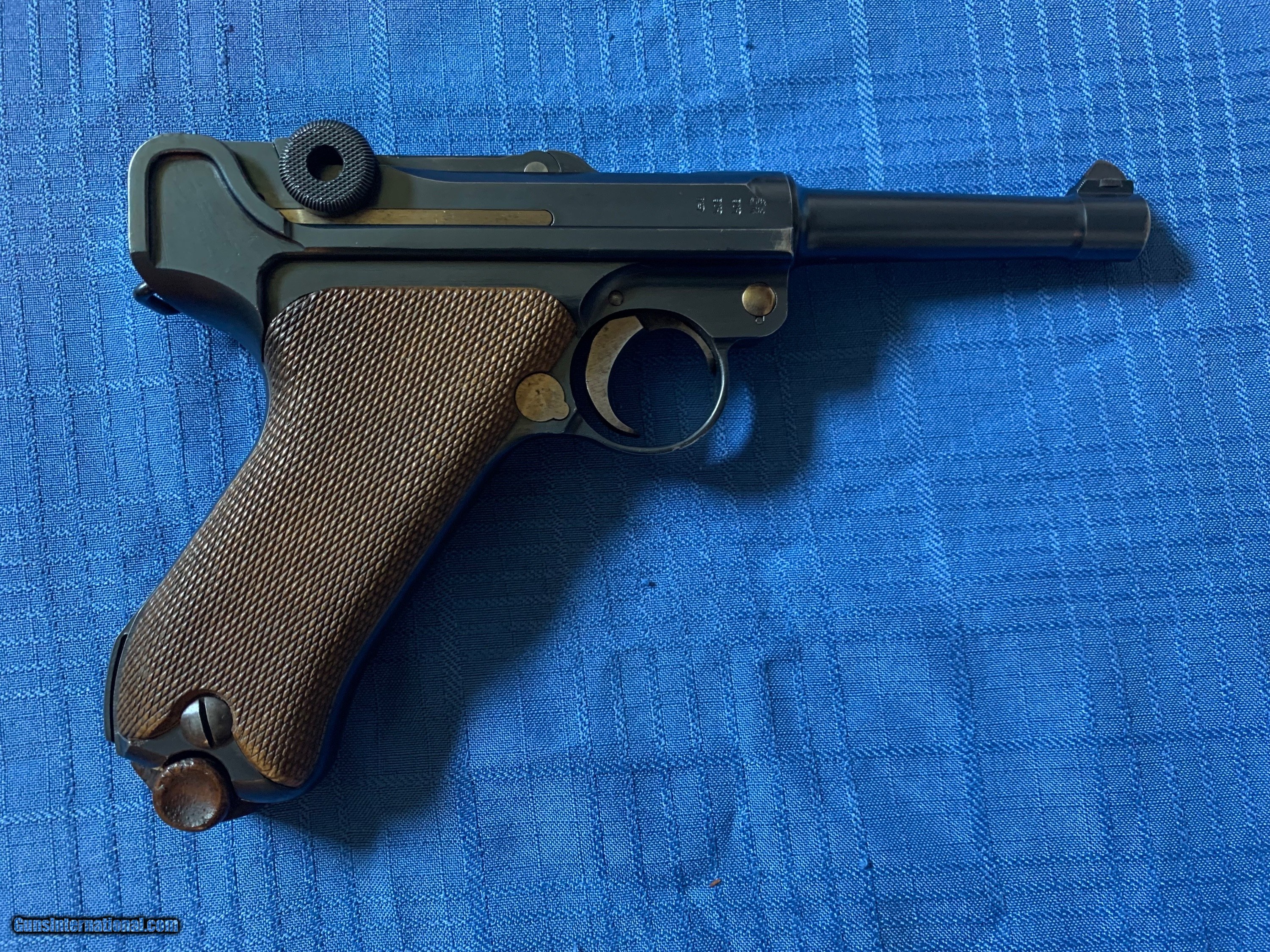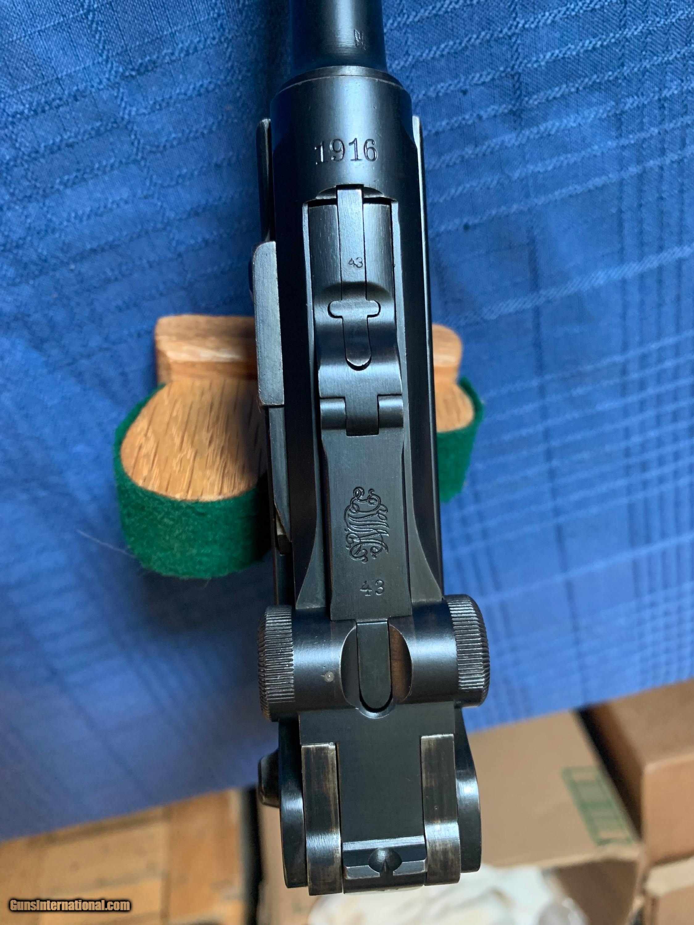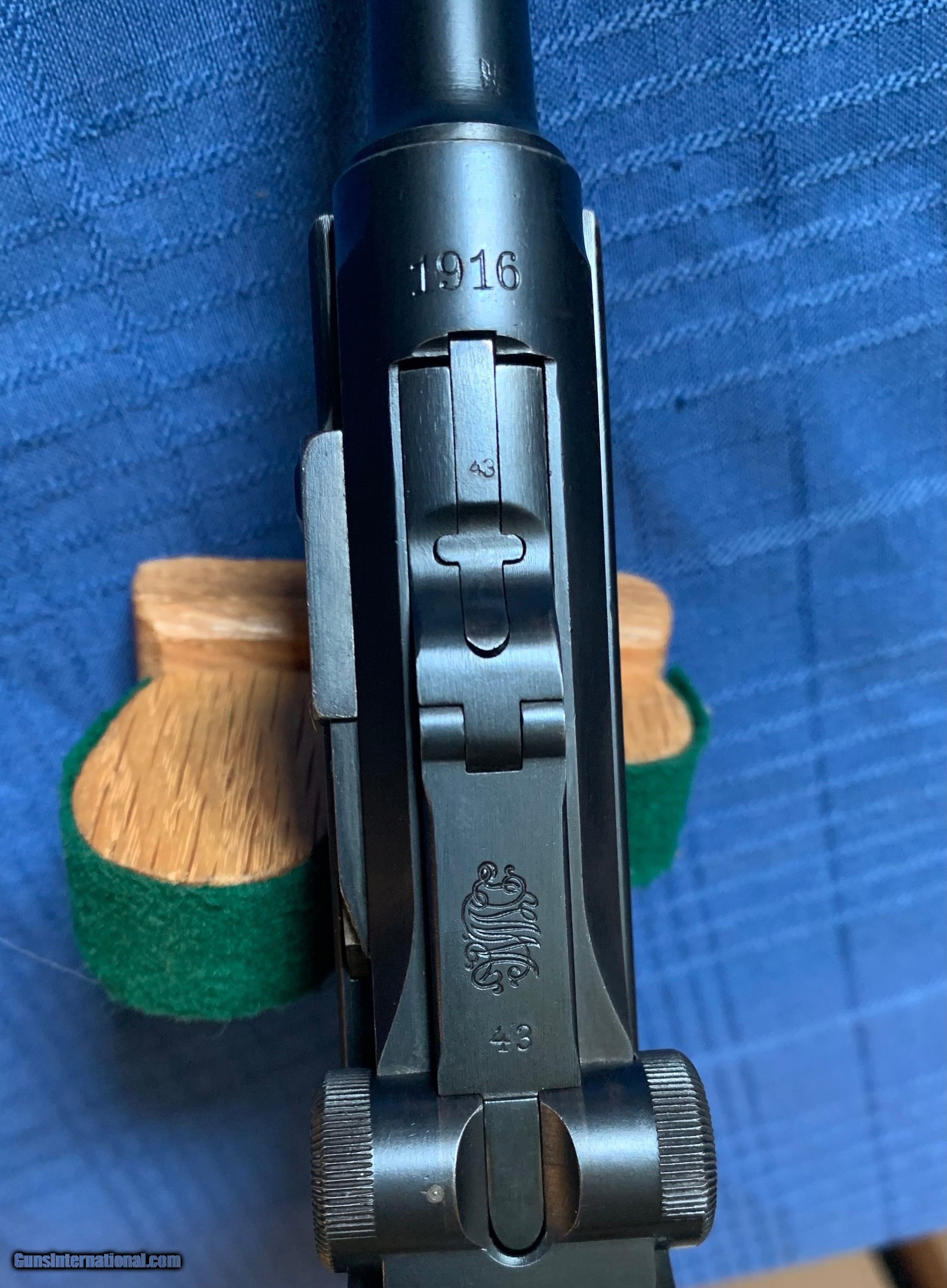 Description: Here a rare German Luger rig ! Luger DWM dated 1916 . All matching numbers. Comes with 2 matching number magazines! Even the Tool is Matching number ! Comes with a original hard holster well maker marked and original to this gun ! Gun is in excellent plus condition with very light wear in a few spots . Gun has all of its original finish still remaining ! Most of the Straw finish still remains on the small parts ! Very sharp markings ! Original grips are in near mint condition ! Gun was unused ! Bore and mechanics are in excellent condition , excellent working condition! Holster is in stunning original condition ! Maker marked . Beautiful holster . This is a Collector Quality Condition Luger with 2 matching numbers magazines and a original hard holster with a matching number tool ! Please review my photos and please email me with any questions ? 3 day inspection as allways ! Thank you for looking, Little Jo SOLD Curio/Relic: Yes Manufacturer: DWM Model: Luger Serial Number: 1843 Condition: Near mint |