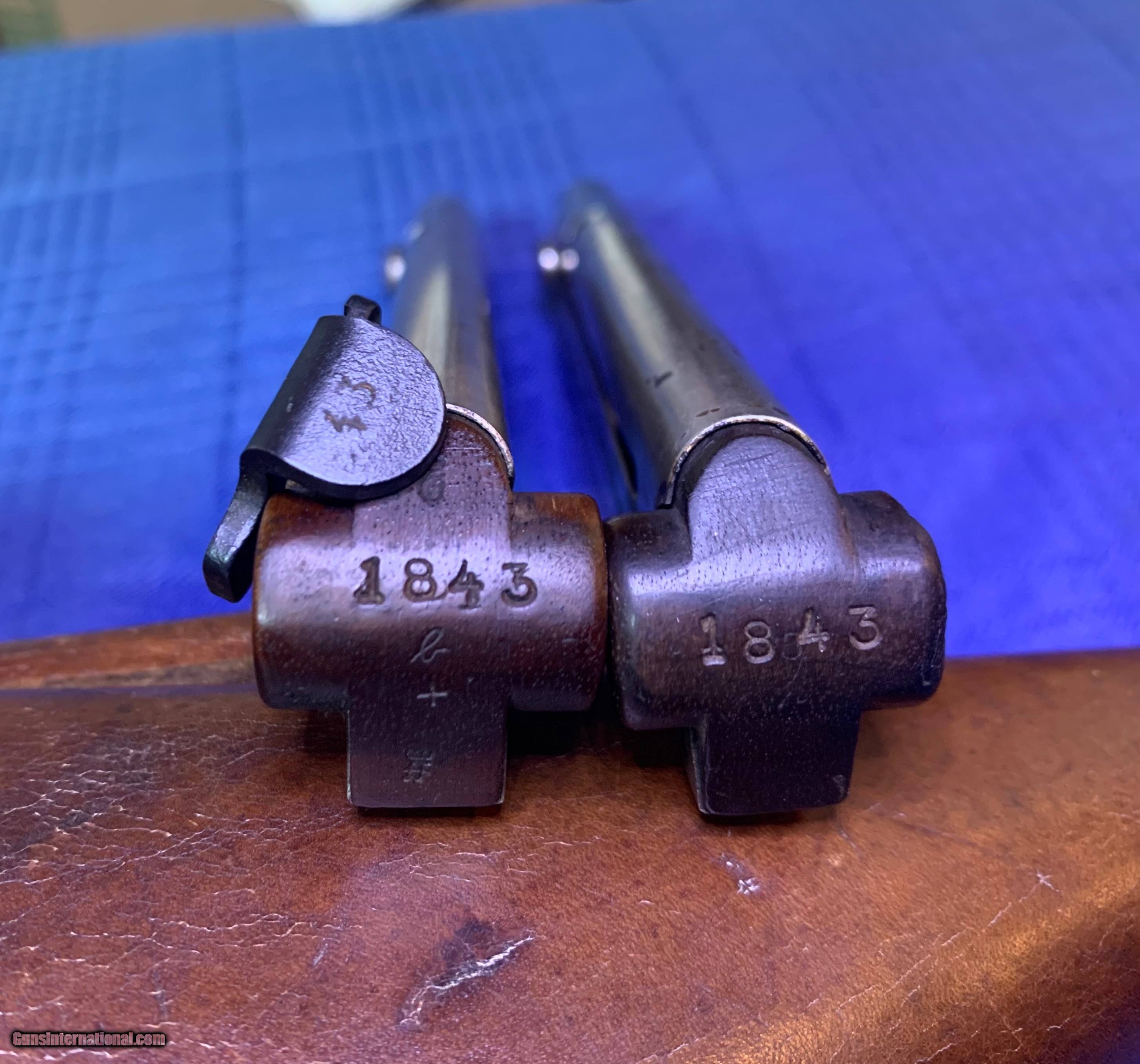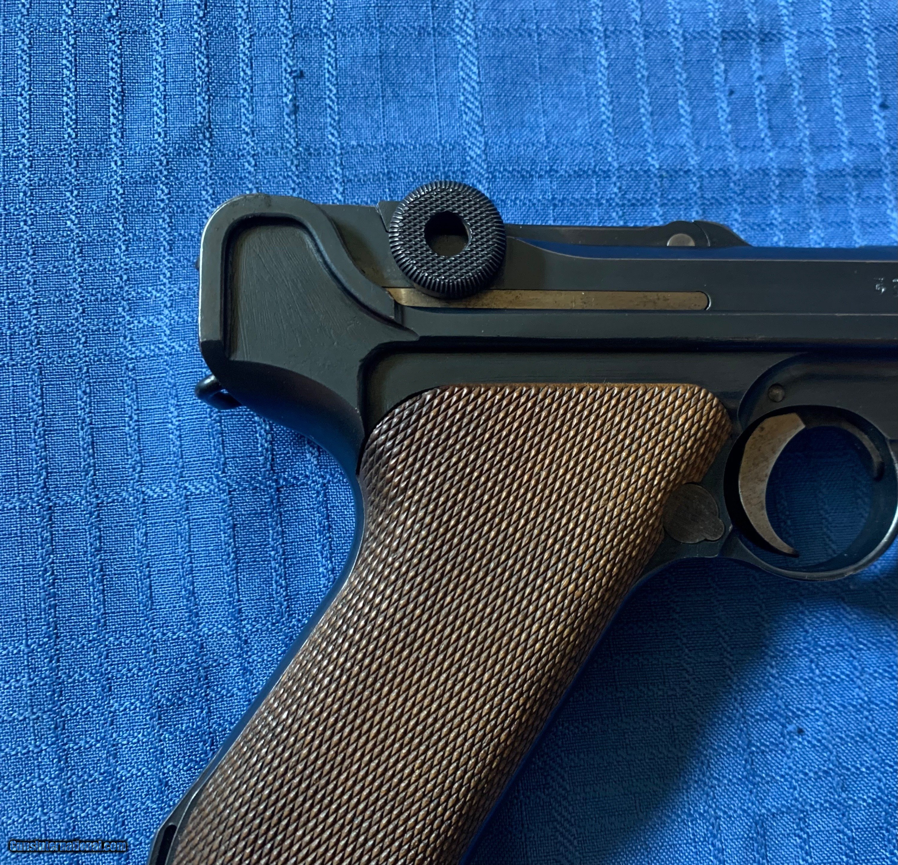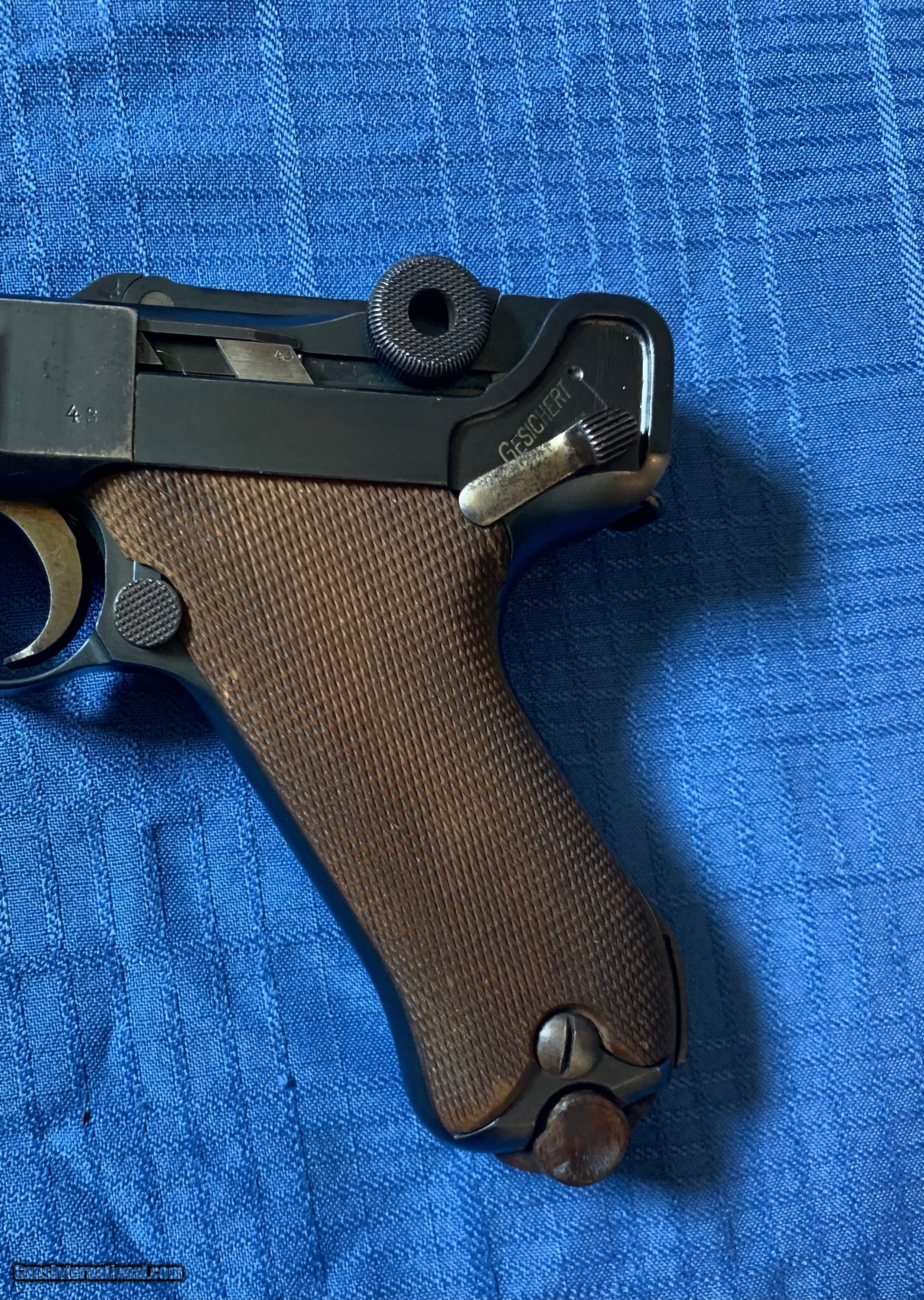 Description: Here a rare German Luger rig ! Luger DWM dated 1916 . All matching numbers. Comes with 2 matching number magazines! Even the Tool is Matching number ! Comes with a original hard holster well maker marked and original to this gun ! Gun is in excellent plus condition with very light wear in a few spots . Gun has all of its original finish still remaining ! Most of the Straw finish still remains on the small parts ! Very sharp markings ! Original grips are in near mint condition ! Gun was unused ! Bore and mechanics are in excellent condition , excellent working condition! Holster is in stunning original condition ! Maker marked . Beautiful holster . This is a Collector Quality Condition Luger with 2 matching numbers magazines and a original hard holster with a matching number tool ! Please review my photos and please email me with any questions ? 3 day inspection as allways ! Thank you for looking, Little Jo SOLD Curio/Relic: Yes Manufacturer: DWM Model: Luger Serial Number: 1843 Condition: Near mint |