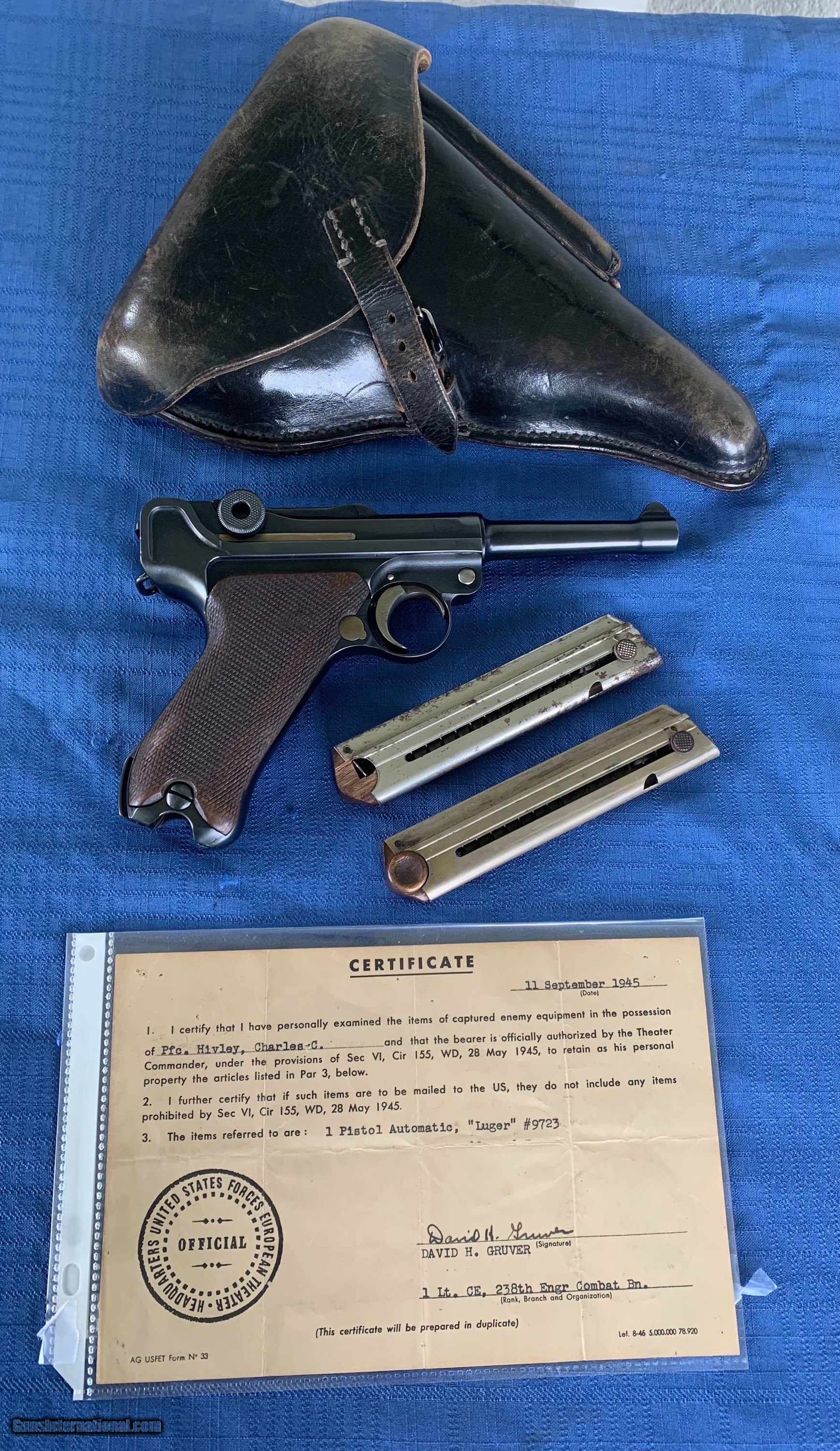 Luger WW2 “CAPTURE PAPERS “ with Original Holster