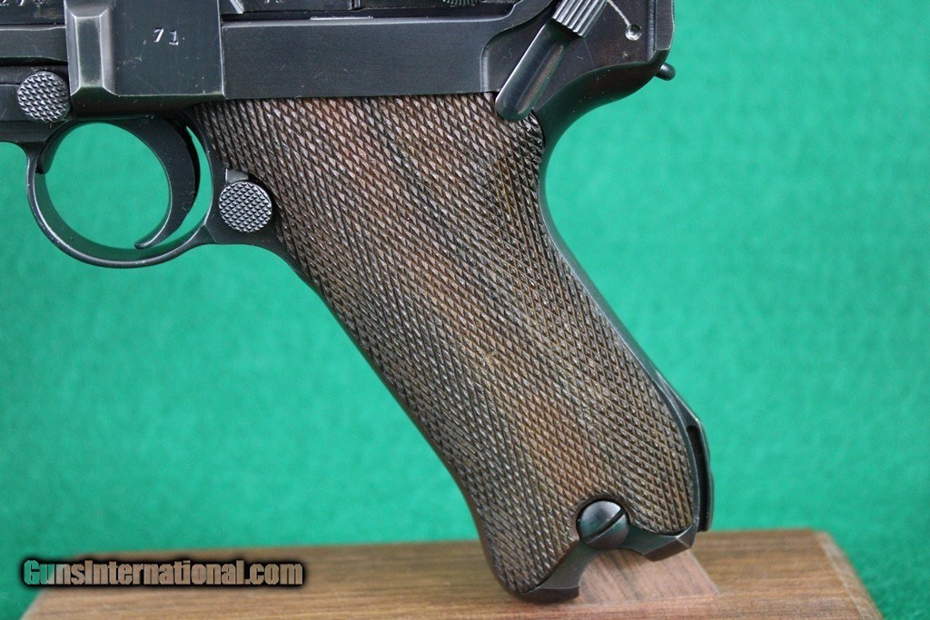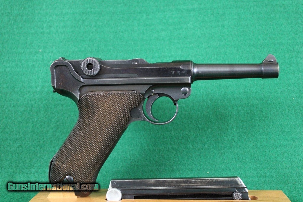 Description: Up for sale is a Pre-WWII German Luger manufactured by Mauser Oberndorf in 1938 for the German Army. Luger is overall in excellent condition with only some minor high point wear on the Salt Blue finish. Grips show strong checkering and are numbered matching on the inside. All numbers match on the gun including small parts and firing pin. The magazine is correct for a 1938 Luger and is from the same letter block but not matching. The Luger is THE iconic German handgun of the Second World War and a favorite of American GI’s who hunted for these to bring back home as souvenirs. Overall this would be a difficult gun to upgrade, the bluing and condition are near 99%. This gun is factory original with no touch up or later enhancements. Includes 3 day Inspection and must ship to an FFL Shipping is via USPS Priority, $25 Payment accepted USPS Money Order or Cashier Check Know the laws in your state and what is allowed with firearms. SOLD Curio/Relic: Yes Manufacturer: Mauser Oberndorf Model: P08 Luger Condition: Excellent |