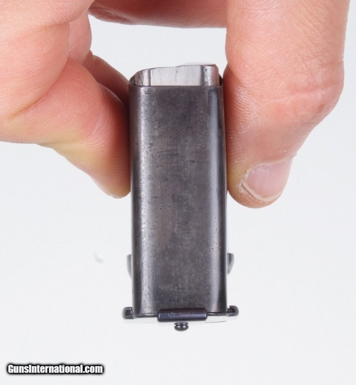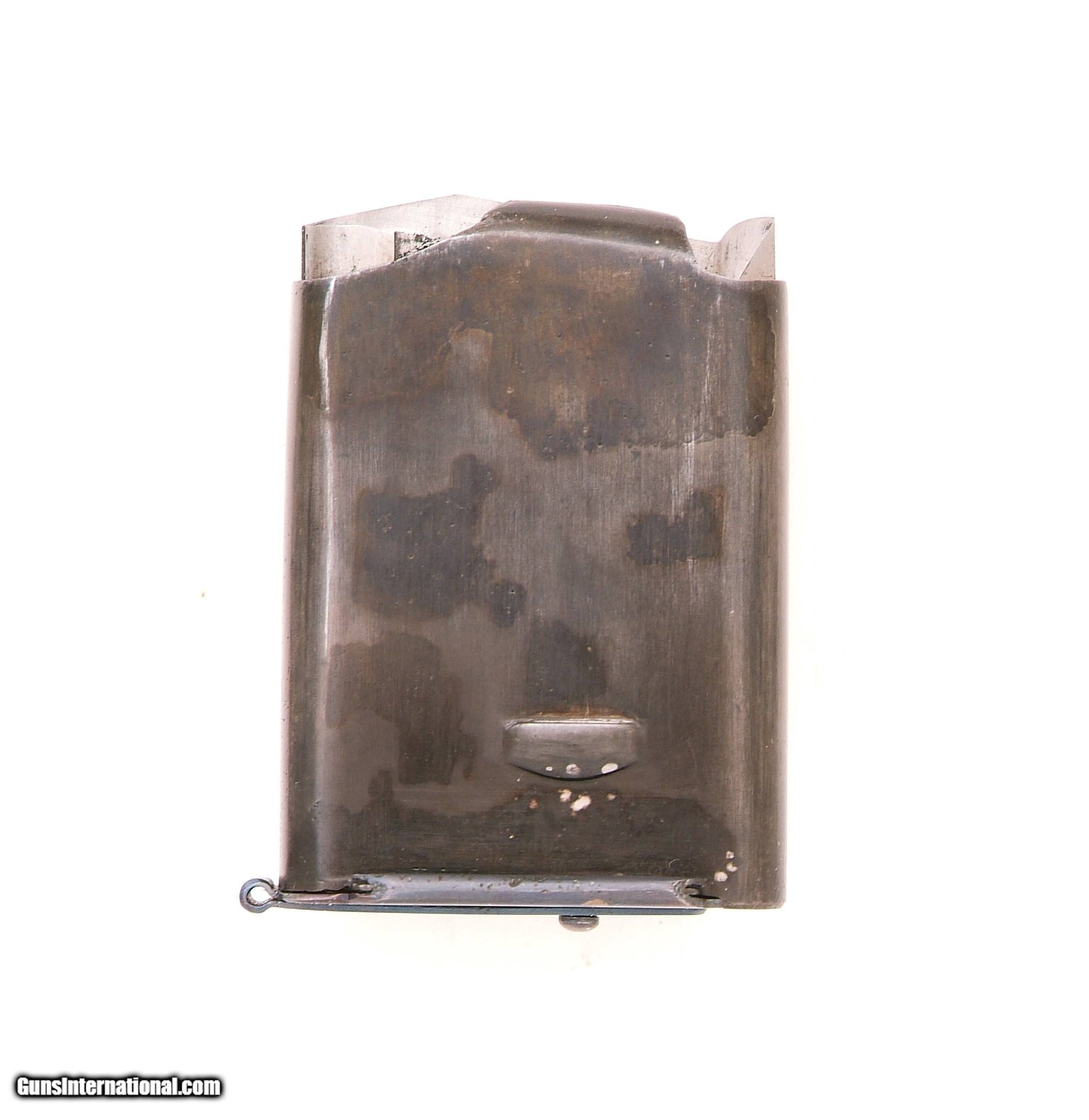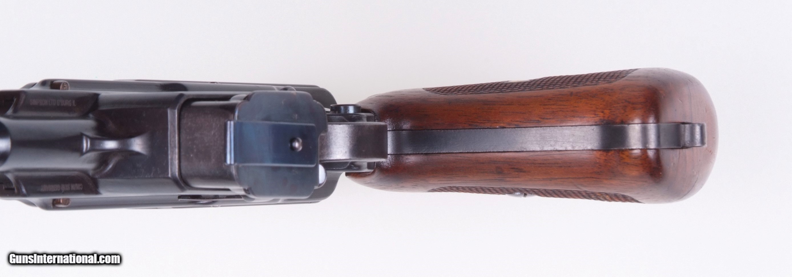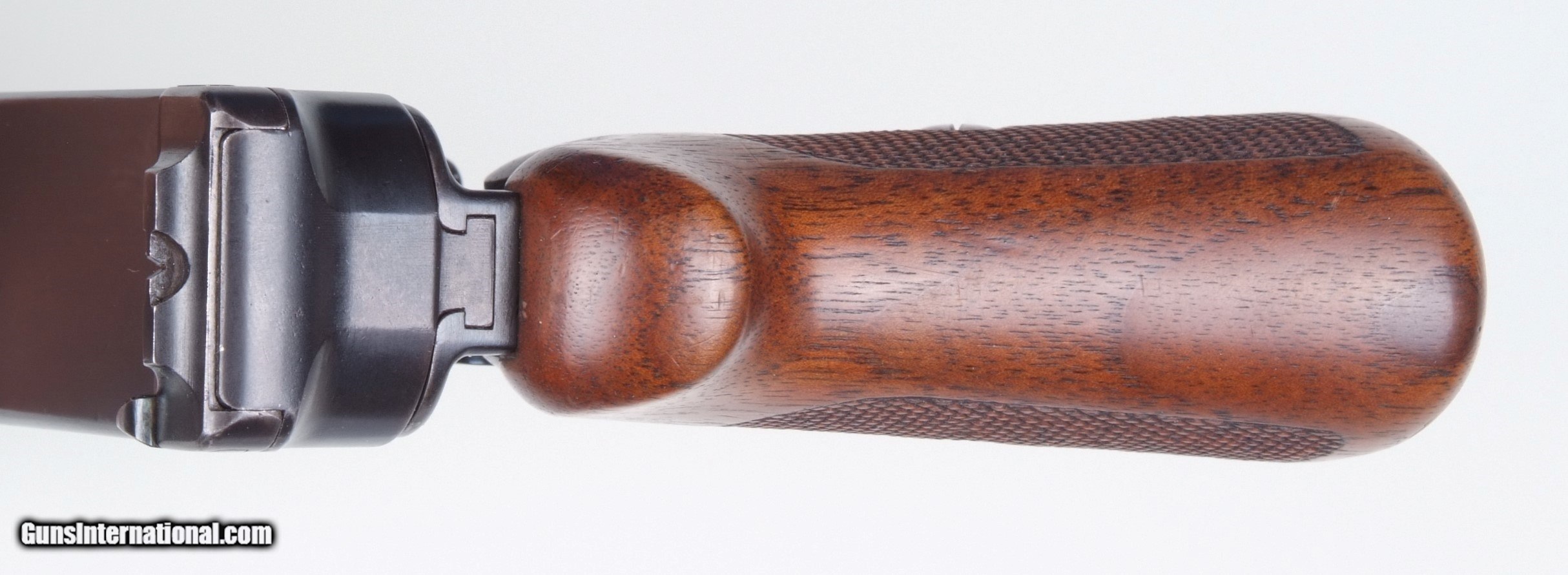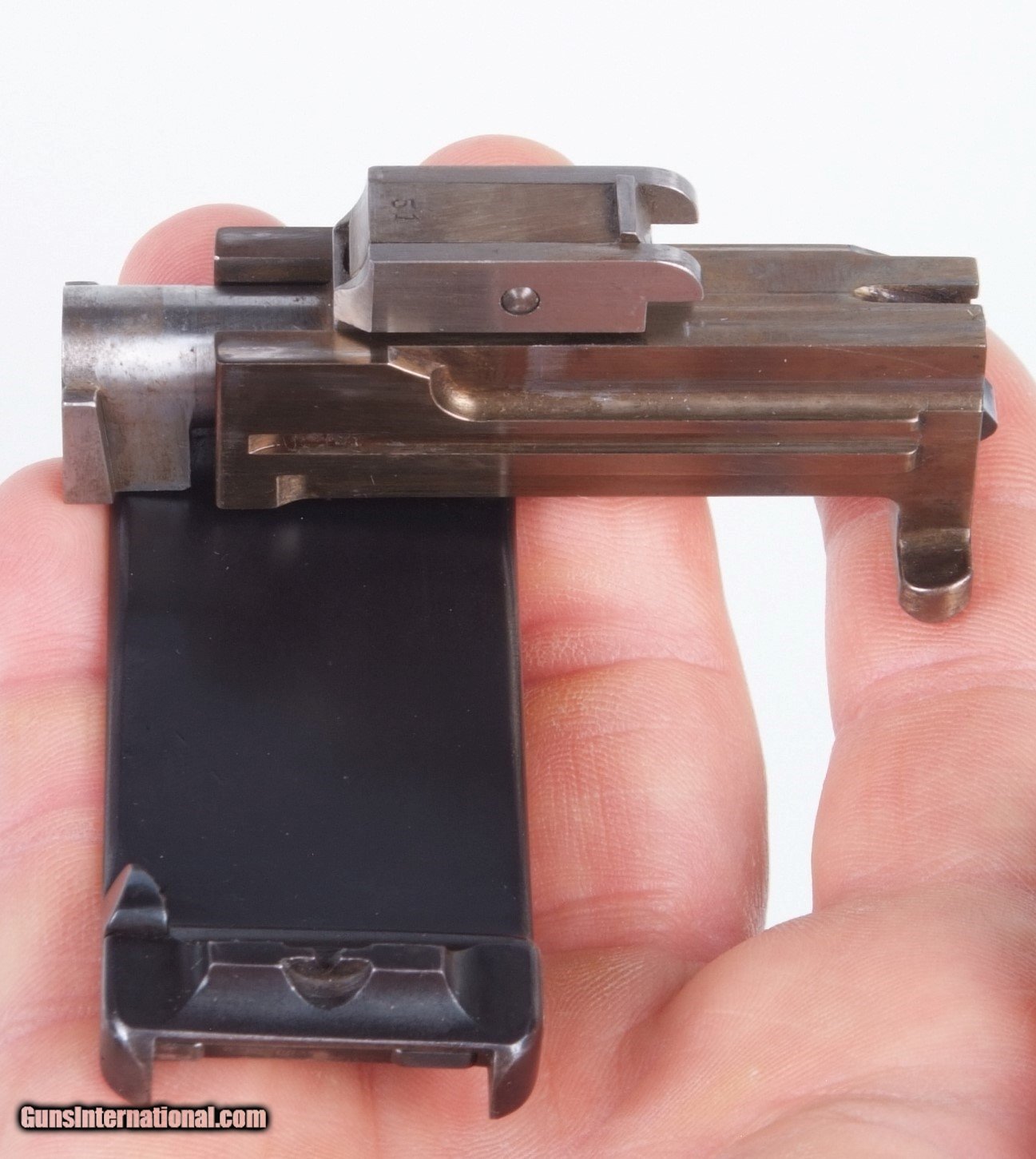 Description: This 2nd variation pistol has a 4" barrel with a banded front sight and a half round-half octagonal barrel whose chamber is hand inscribed "WAFFENFABRIK / MAUSER OBERNDORF A.N.". Major components are rust blued. Bolt is strawed while the extractor, safety, safety release button, trigger, magazine retention spring and grip screw are fire-blued. Disassembly shows all matching numbers except for the magazine whose body is numbered "142" and whose fire-blued base is numbered"72". Impeccable provenance with previous owners including Henk Visser and and Dr. Geoffrey Sturgess. Exact gun illustrated in the Borchardt & Luger Automatic Pistols, Vol 1-3 book but with a 20-shot magazine. Synopsis: Super rare and well documented Mauser M1906-08 experimental pistol, one of fewer than 100 made (highest recorded number is 77), and the first Mauser to have a flap-locked mechanism. Condition: Superb professional restoration with deep chamber markings, flat planes, sharp edges. Major parts with correct rust blue; enhanced fire blue on the small parts. Original grip retaining much of its original varnish. Slight blunting of checkering. Bright bore with sharp rifling. Perfect manual mechanics . One of the most unusual, recognizable and desirable pistols ever made by Mauser that could easily be the centerpiece of any early automatic pistol collection. A HISTORIC INVESTMENT! ~~Insured shipping fee of $155; most packages shipped using FedEx 2nd Day.~~ SOLD Curio/Relic: Yes Manufacturer: Mauser Serial Number: 51 Caliber Info: 9x25 mm |