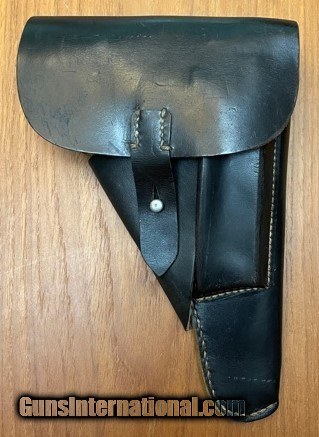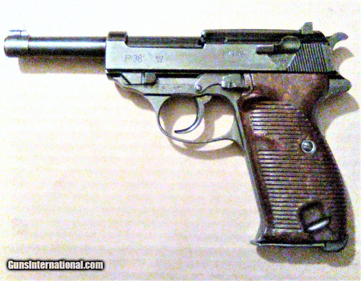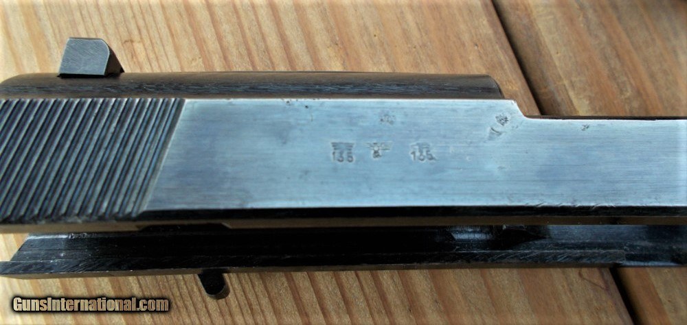 Description: WWII Mauser (byf code) P-38 made December 1943, holster dated 1944. Not import marked. All numbers match, except mag. Great bore, strong rifilng. WaA 135 stamped slide. As to be expected, bluing is thin on high spots & forestrap: overall pistol retains 93%+ bluing. Bakelite Grips have no chips or cracks. (When these pistols were made the finish was not a big concern. The tooling marks on the Mauser P-38s weren't polished out as well as earlier Walther P-38s pistols, but were better than the Spreewerk P-38s.) Not import marked. Holster is in excellent condition, marked gxy 1944. Compare to other sites. As a private seller I do not collect taxes. Shipping & Ins. is $40.00. C&R eligible. SOLD Curio/Relic: Yes Handgun Caliber: 9x19mm Parabellum (9mm Luger, 9x19mm NATO) |