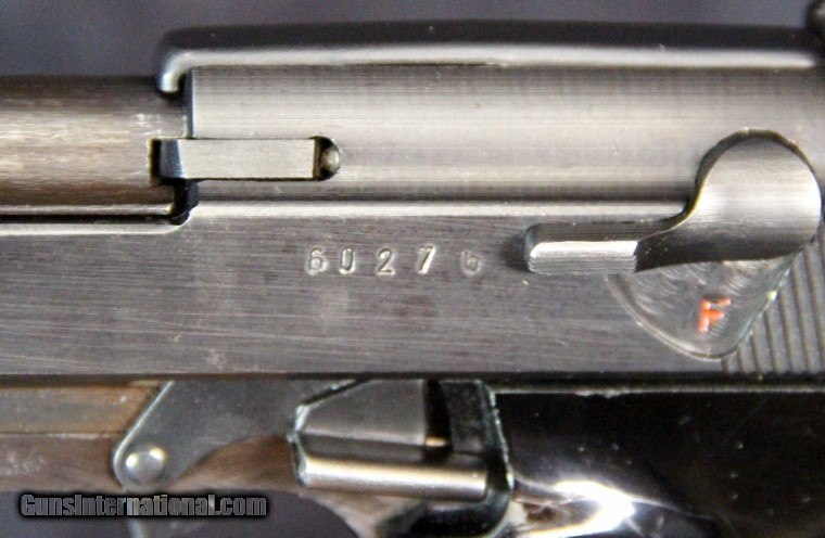 Description: 9mm, #6027b, 5 inch barrel, blue finish, 2 piece bakelite grips, correct markings, holster marked 1944, 2 magazines. Condition: excellent overall Price: $2,500.00 Contact Seller |