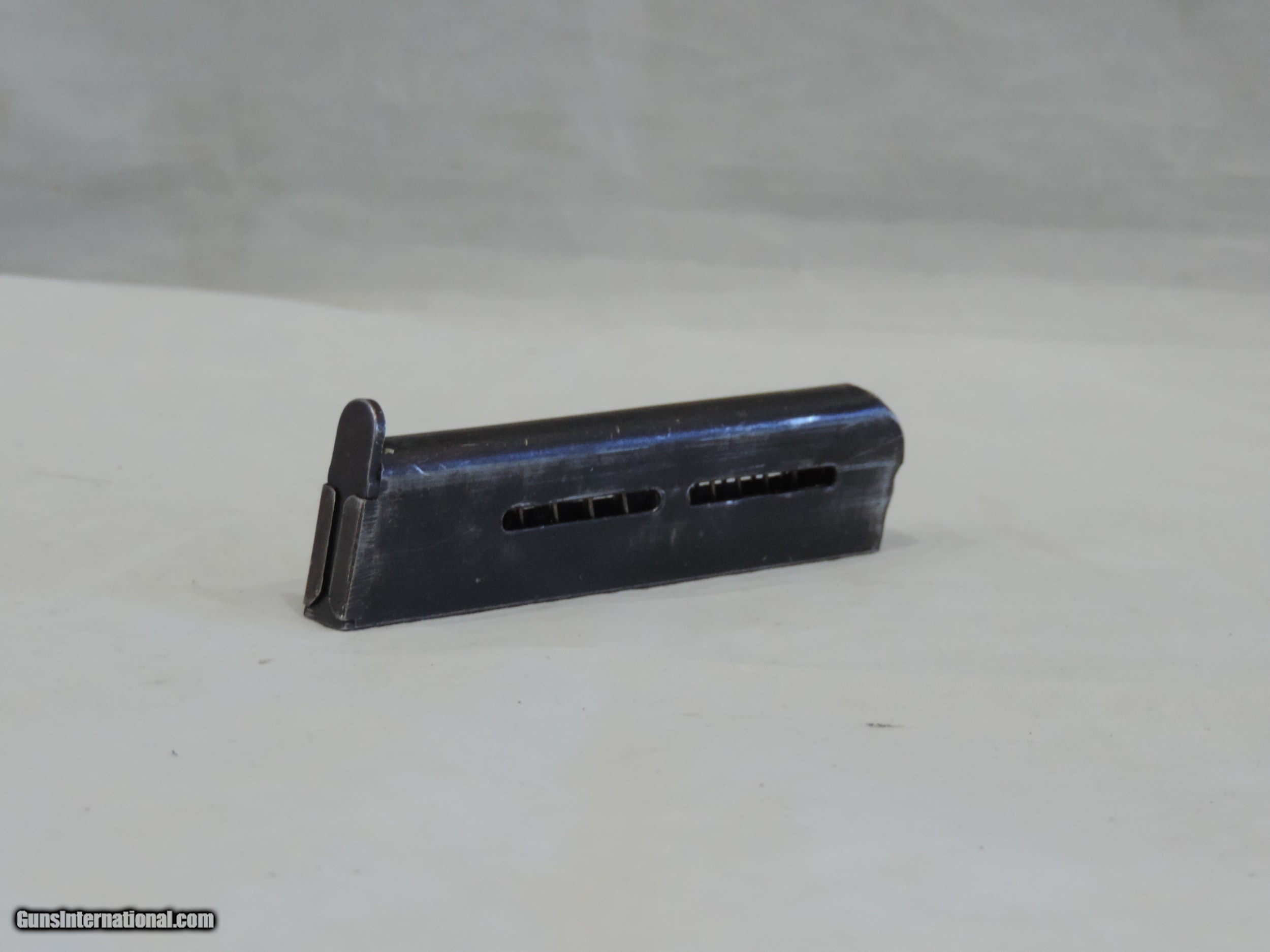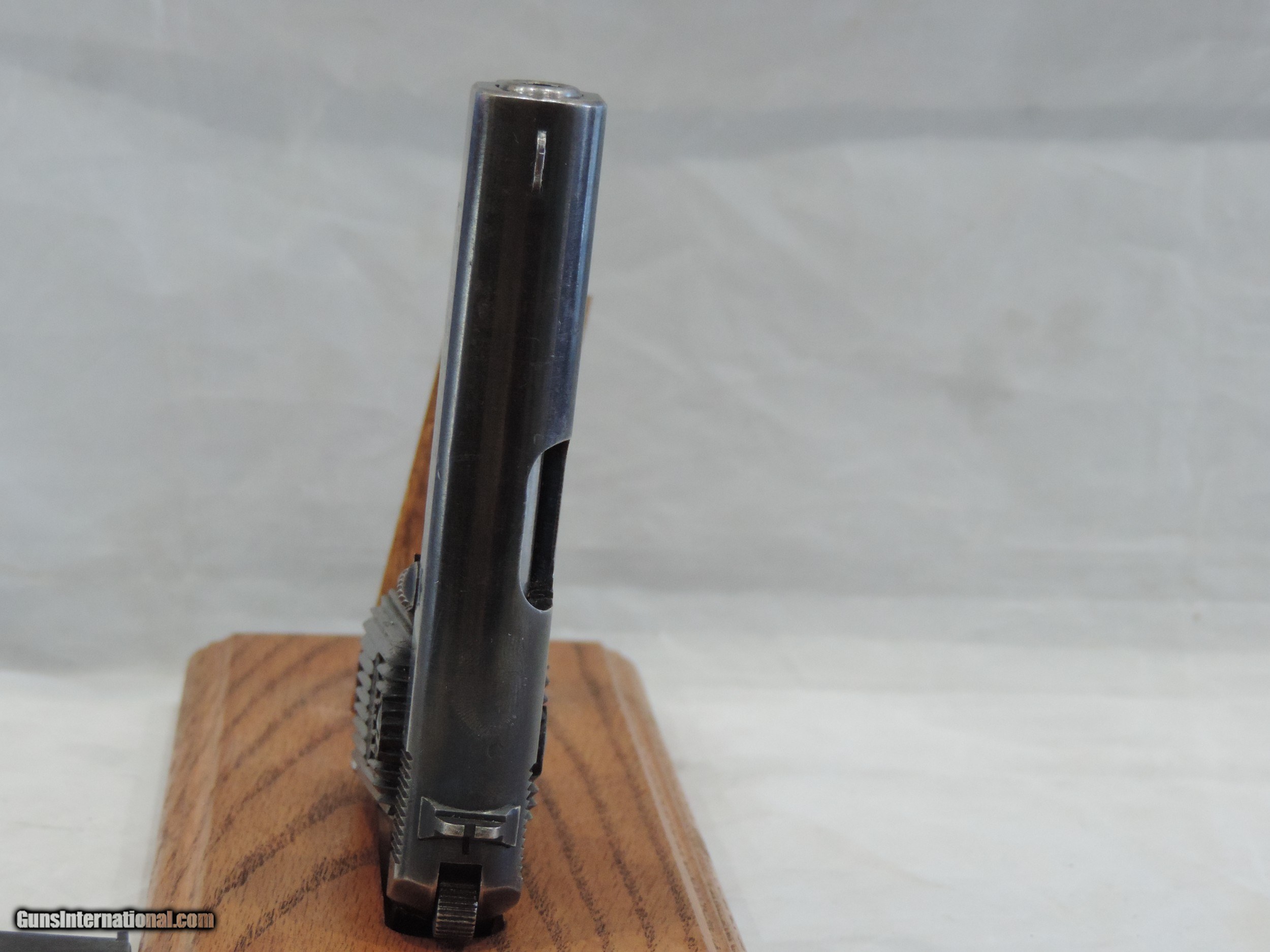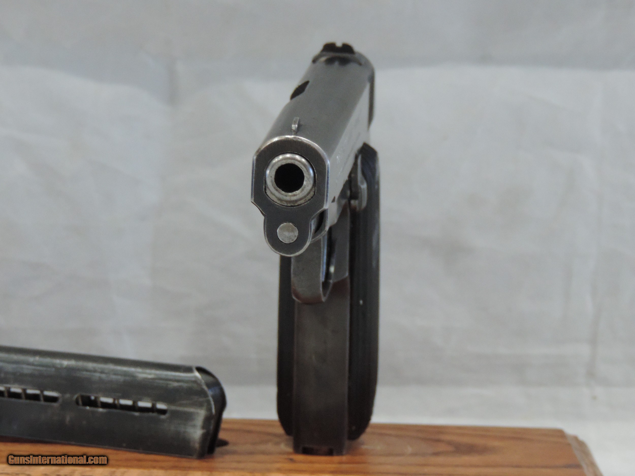 Description: INV. 10378 NAZI, FRENCH "UNIQUE", KREIGSMODEL, CAL 7.65, SERIAL 753I9. THIS G.I. BRINGBACK HAS RETAINED ABOUT 97-98% 0F THE ORIGINAL FACTORY BLUE. THE LITTLE LOSS THERE IS, IS DUE TO SOME SHARP EDGE SILVERING, SOME TINY SURFACE FLAKNG AND MILD TONING OF THE GRIP STRAPS. ALL MOSTLY FROM HOLSTER WEAR. THE FRAME, SLIDE AND BARREL MATCH AND HAVE THE CORRECT WAFFENAMT**. THE PLASTIC GRIP PANELS ARE PERFECT AS ARE THE GRIP SCREWS. THEY ARE CORRECTLY STAMPED IN GERMAN "7.65/ 9 SCHUSS". THE SLIDE RAILS, BOLT FACE AND FEED RAMP SHOW VERY MODEST USE. THE BORE IS MIRROR BRIGHT WITH RAZOR SHARP RIFLING AND NOT A WHISP OF FROST THE GUN COMES WITH ONE CORRECT 9 SHOT MAGAZINE AND ONE UNMARKED KREIGMODEL UNIQUE HOLSTER. THIS IS A RATHER UNCOMMON WWII BRING BACK. IT IS SURE TO PLEASE EVEN THE MOST CRITICAL COLLECTOR. MODESLY PRICED ... $1295.*** **THE HARMLESS WHITE CRAYON IS TO SHOW THE MARKINGS ARE CORRECT. THEY ARE EASILY REMOVED WITH LIGHTER FLUID AND A BRUSH. WE WILL DO IT ON REQUEST. ***100% OF THE GUN'S PURCHASE PRICE IS SATISFACTION GUARANTEED. To purchase this firearm or if you want to request more information contact us at: Email ckguns[at]ymail[dot]com Phone 201-512-0002 Cell 201-575-6838 FAX 201-215-4759 We accept most major credit cards. Prices shown are Discounted 3% for Cash or Check. The buyer must be familiar with all the laws governing the purchase and the ownership of firearms in their own city and state. The Yankee Armorer, Inc is not responsible for any failure to comply with or observe these laws. The Yankee Armorer, Inc will only ship after full payment and receipt of all required documents. Shipping: Add $35.00 for handguns, $45.00 for long guns. New Jersey buyers are subject to a 7% sales tax. The Yankee Armorer, Inc offers a 3 day inspection period with full refund upon return of intact firearm and in the original condition. The Yankee Armorer, Inc offers a no interest lay away program - 25% down; 25% in 30 days; 25% in 60 days; and full payment in 90 days. Any violation of this policy is subject to restocking and forfeiture of all payments. Any variation from this policy must be agreed to in advance. Unshipped Cancelled sales are subject to a 20% restocking fee. Be advised that all firearms sold by The Yankee Armorer, Inc. or the Gun Exchange, LLC (SELLER) are sold as collector’s items. They have not been fired or tested for safety and must be examined by a license gunsmith prior to use. By purchasing any item from the (SELLER), you are agreeing to hold the (SELLER) free from any damages or lawsuits of any nature. Any item left for transfer or storage will be charged to $25.00 per month, per item from the day of its receipt. Any variation from this policy must be agreed to in advance. Store hours 10:00 am to 5:00 pm Tuesday -Saturday. It's always best to call for appointment. Store 201-512-0002, cell 201-575-6838. SOLD |