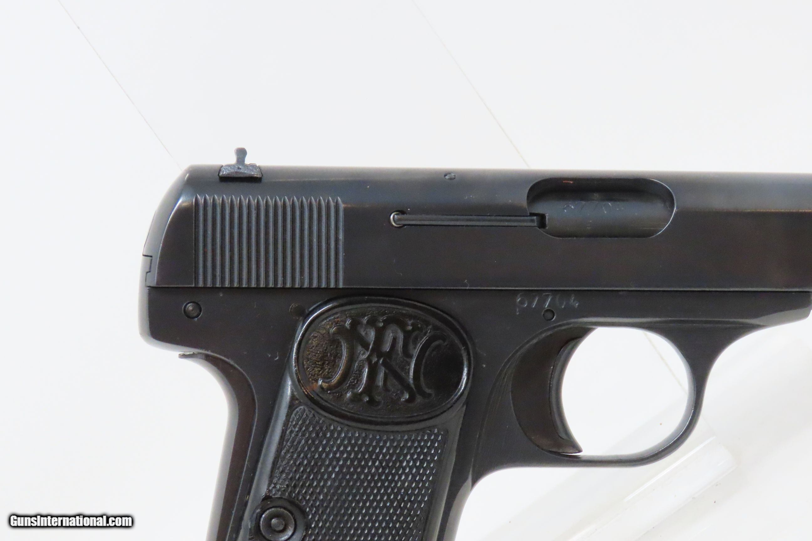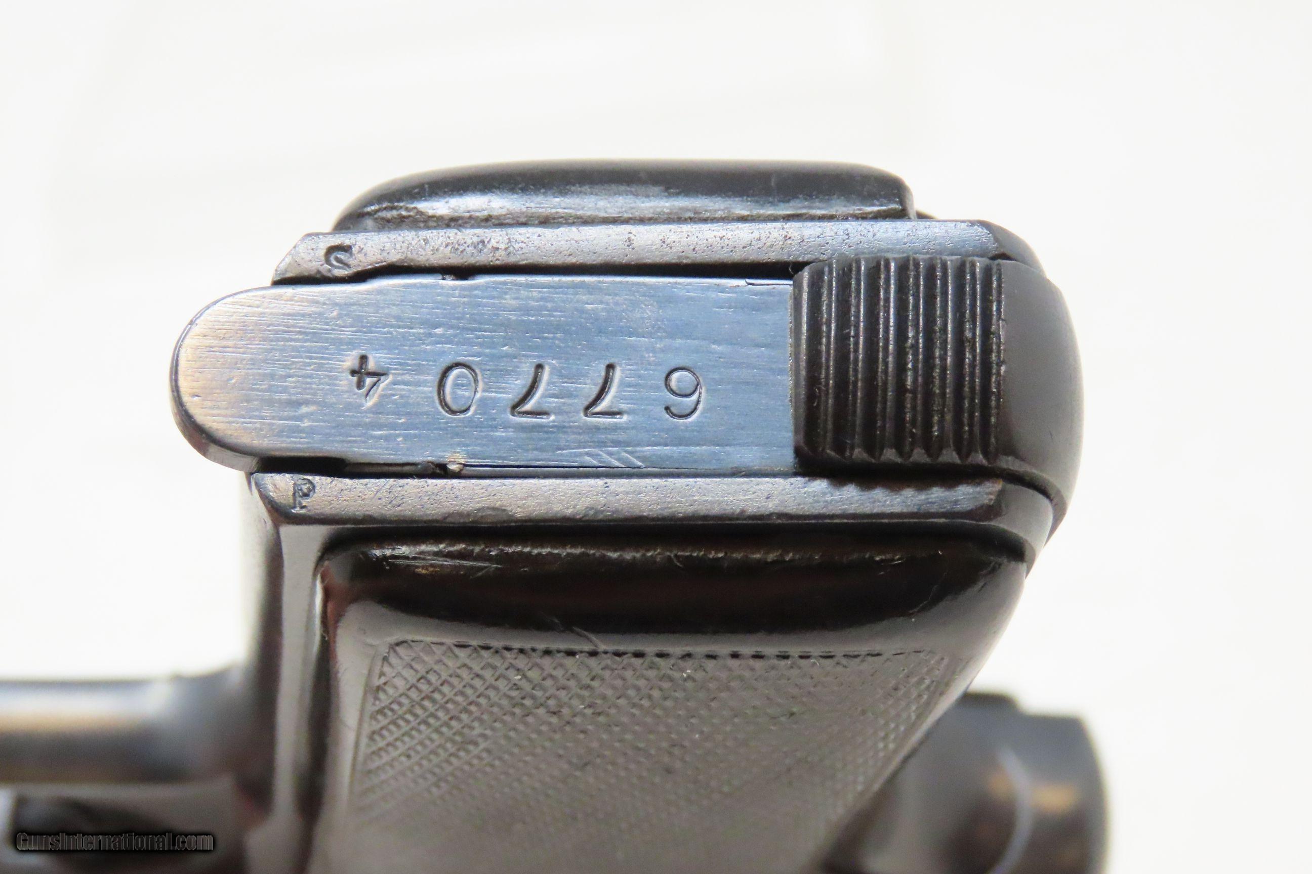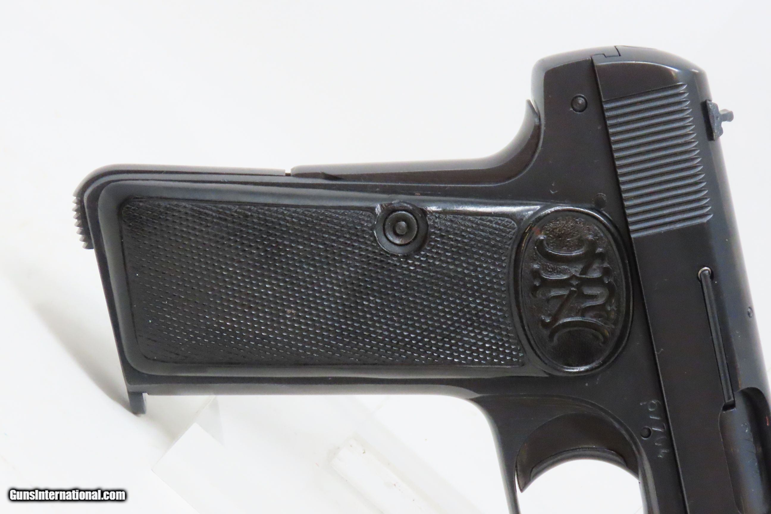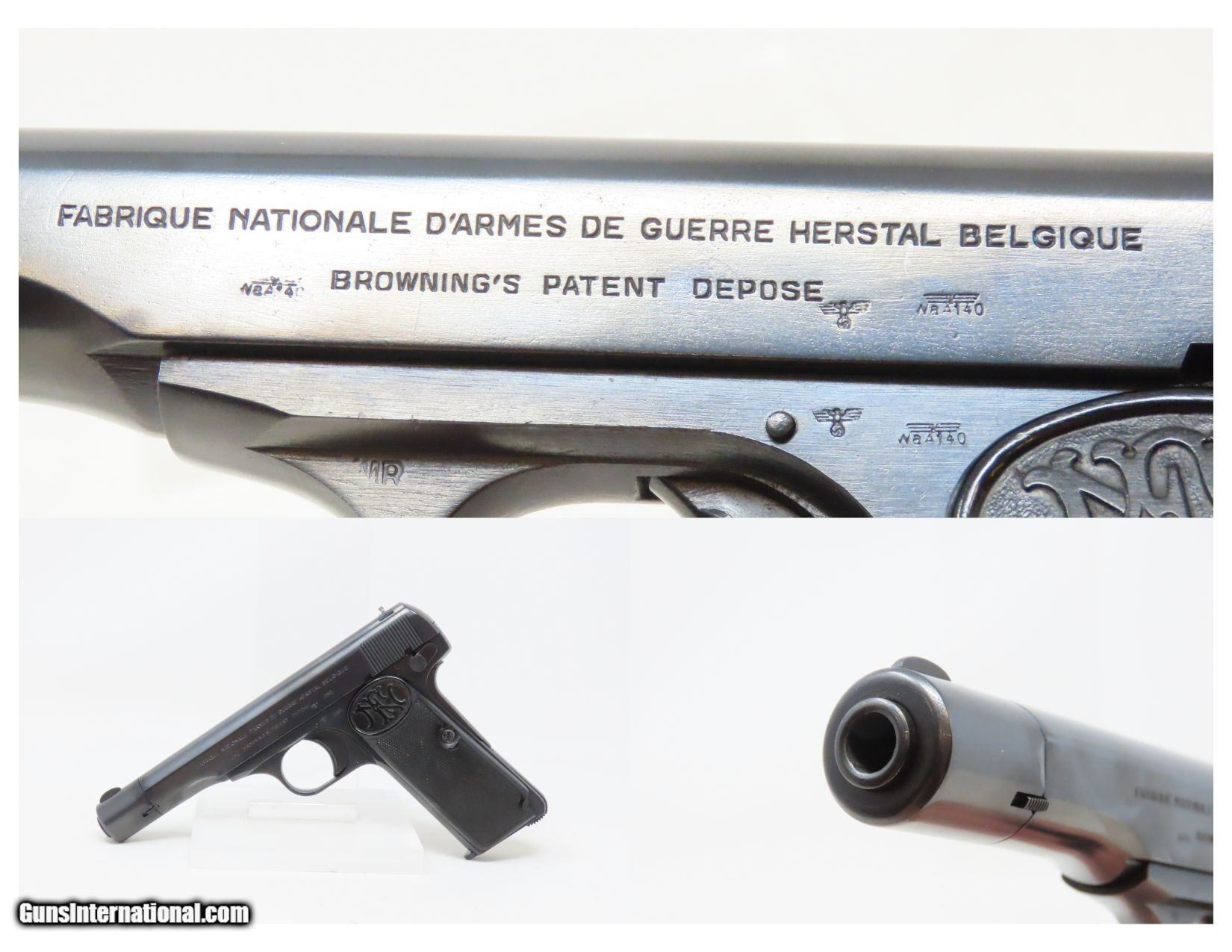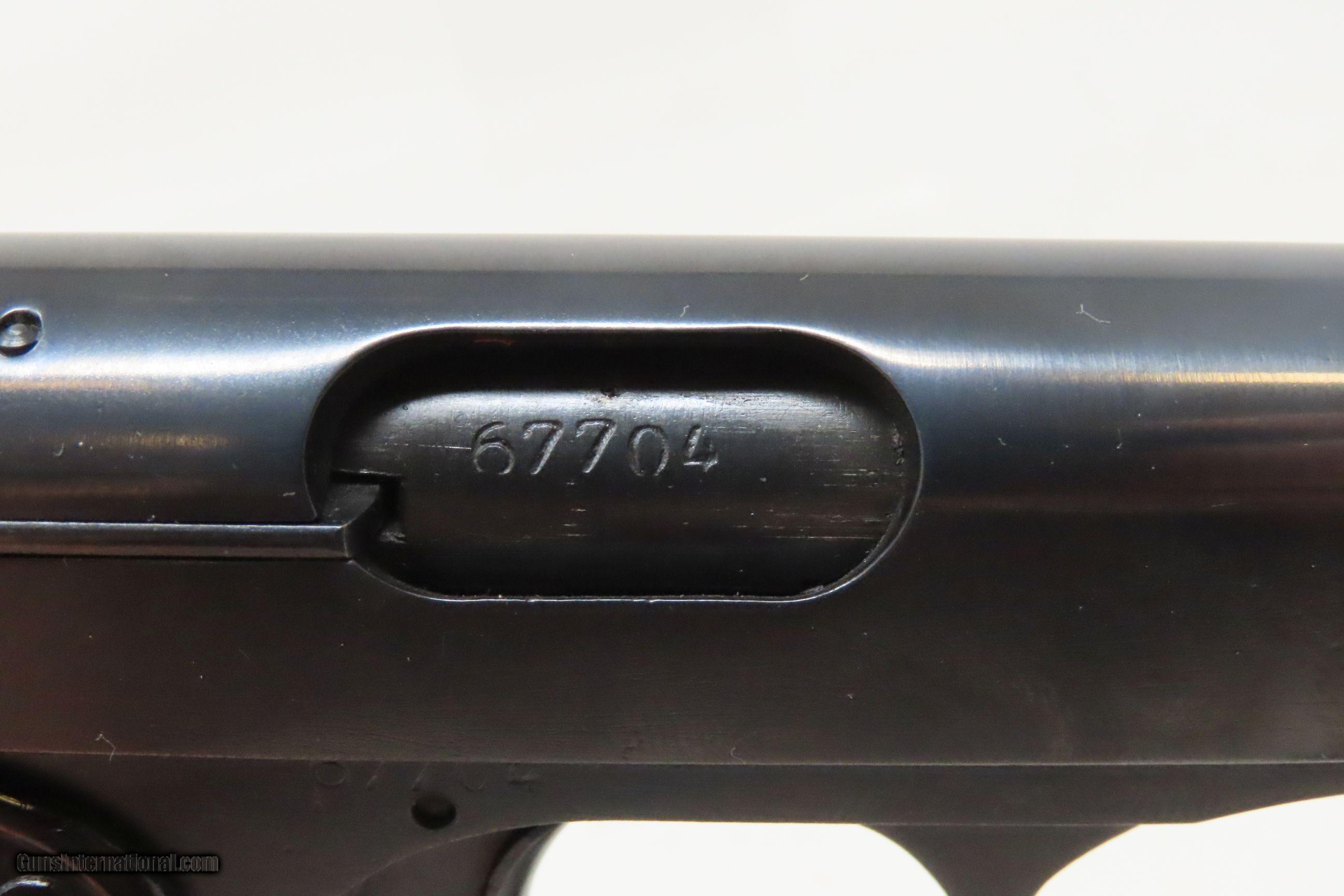 Description: OCCUPATION Marked FABRIQUE NATIONALE Model 1922 7.65mm BELGIAN C&R Pistol Third Reich EAGLE/SWASTIKA PROOFED Here we present a Fabrique Nationale Model 1922, made circa 1942 in Herstal, Belgium, near Liège. This pistol is a variant of the Model 1910 and is known as the Model 1922 or 1910/22 with a production run beginning with the Model 1910 in 1910 and continuing with the Model 1922 until 1983. This FN Model 1922 semi-automatic pistol was designed by John Browning and manufactured by Fabrique Nationale of Belgium. As is this pistol, Model 1910/1922 pistols went on to see extensive service in World War II and continued to be manufactured by the Germans after their occupation of Belgium and seizure of the FN factory. This example has Third Reich production stamps, and the earlier plastic grips bearing the FN logo. While the Model 1910 was widely sold on both civilian and military markets, the Model 1922 was considered specifically a military and police pistol, with FN offering it to individual civilians only by special order. Compared to the Model 1910, it was a larger model with a longer barrel, slide extension, and a longer grip frame to accommodate an extra two rounds. This example has the Third Reich proof marks of “Eagle/WaA140” and “Eagle/Swastika”. Historically speaking, an FN Model 1910, serial number 19074, was the handgun used by Gavrilo Princip to assassinate Archduke Franz Ferdinand of Austria in Sarajevo on June 28, 1914, the act that precipitated the First World War. During both World War I and World War II, the FN 1910 was used by the militaries of Germany, Belgium, the Netherlands, France, Finland, and Japan. The overall condition is good. Excellent action. Bright, rifled bore. Both grips are seated firmly with an average amount of wear. Sharp markings. This example has been refinished. Numbers match. This firearm is classified as a Curio & Relic. Barrel is 4-1/4 inches. Caliber: 7.65mm Auto Overall condition as seen in photos. Very Fast. Very Safe. FREE SHIPPING. Will need to be sent to your local FFL or C&R licensee. This firearm is classified as a Curio & Relic. Guaranteed AUTHENTIC & Includes CERTIFICATE OF AUTHENTICITY. ancestryguns $1500 #233374 SOLD Antique: Yes |