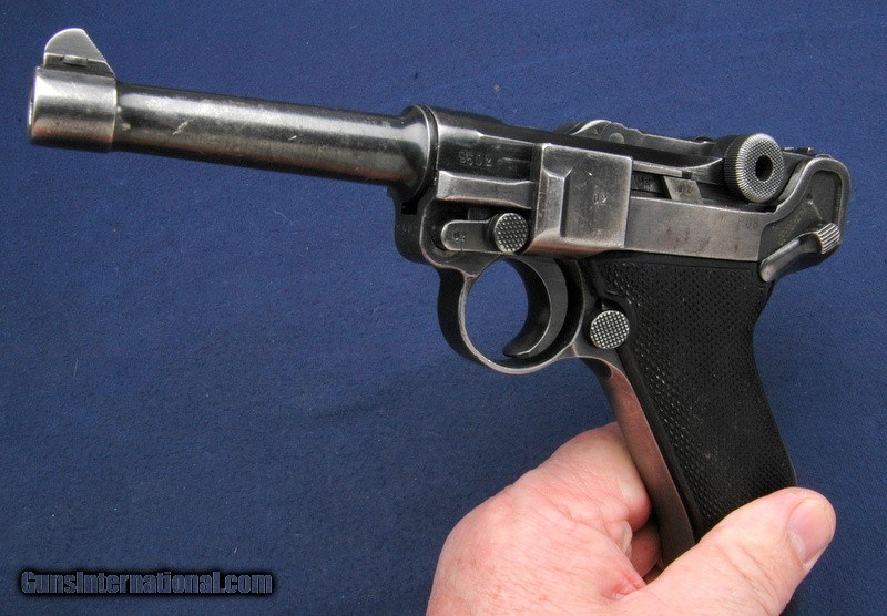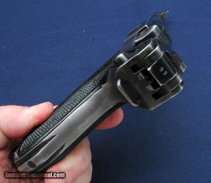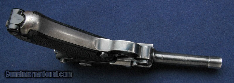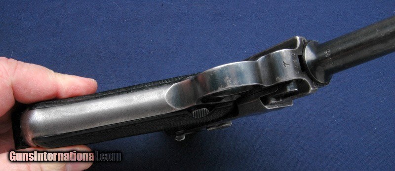 Description: This Black Widow was well used, retaining approx 50% of the original blue. The sideplate is not as bright as it appears in the picture, that is a reflection. That being said, it has an excellent clean bore and all visible numbers are matching except for the magazine. The toggle is simply marked byf. The magazine has a commercial Mauser stamp on the spine, and if I were to hazard a guess, is likely a commercial magazine from the run of Mauser pistols built during the 70's. Serial number is 9502, and I believe the letter suffix is i. It has eagle over 135 Waffenampts and of course, the classic Black Widow black bakelite grips. They are not numbered. Gun works perfectly and is clean and oiled. $50 shipping to the lower 48, 3% surcharge for using a CC. If you choose to pay with a personal check, we will hold the item for up to 10 days to make sure that it clears. Please expedite such pymts as we will hold an item on your word for 5 days. SOLD Handgun Caliber: 9x19mm Parabellum (9mm Luger, 9x19mm NATO) |