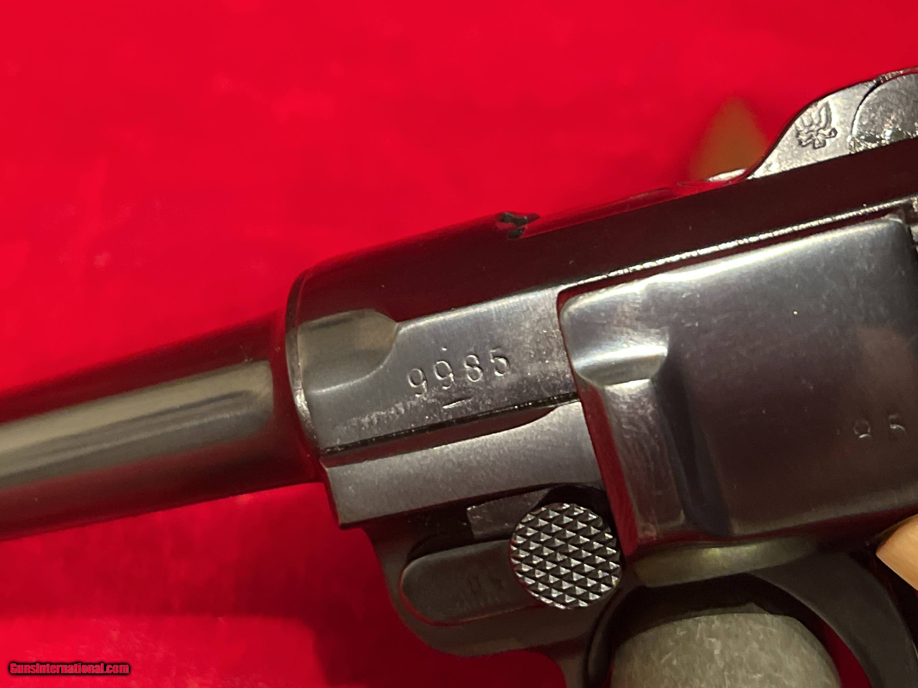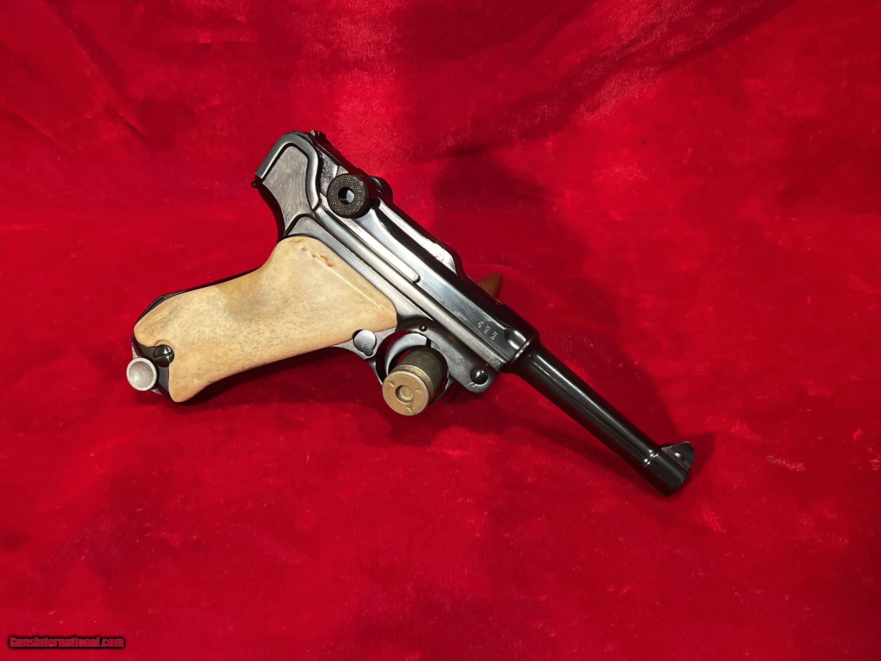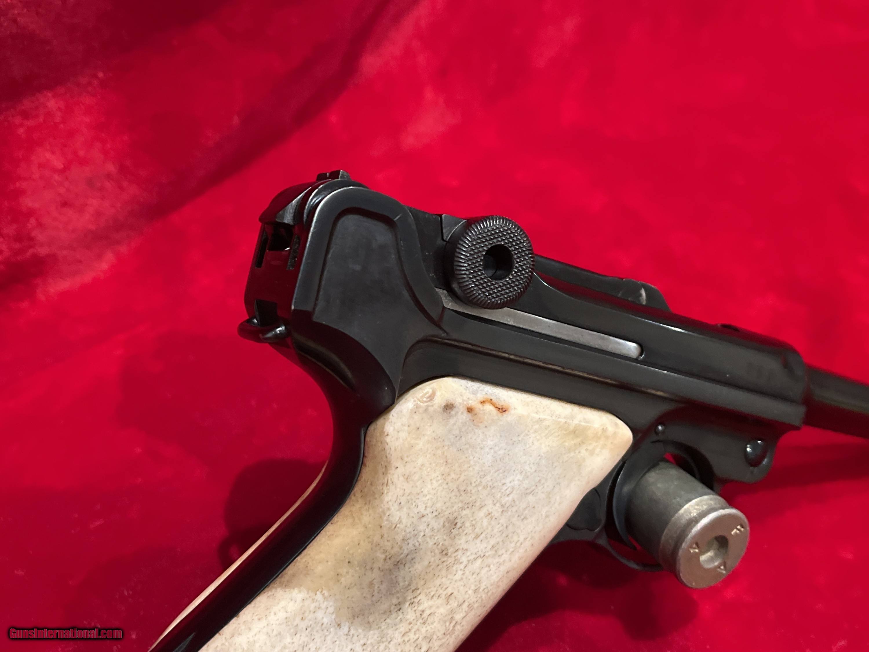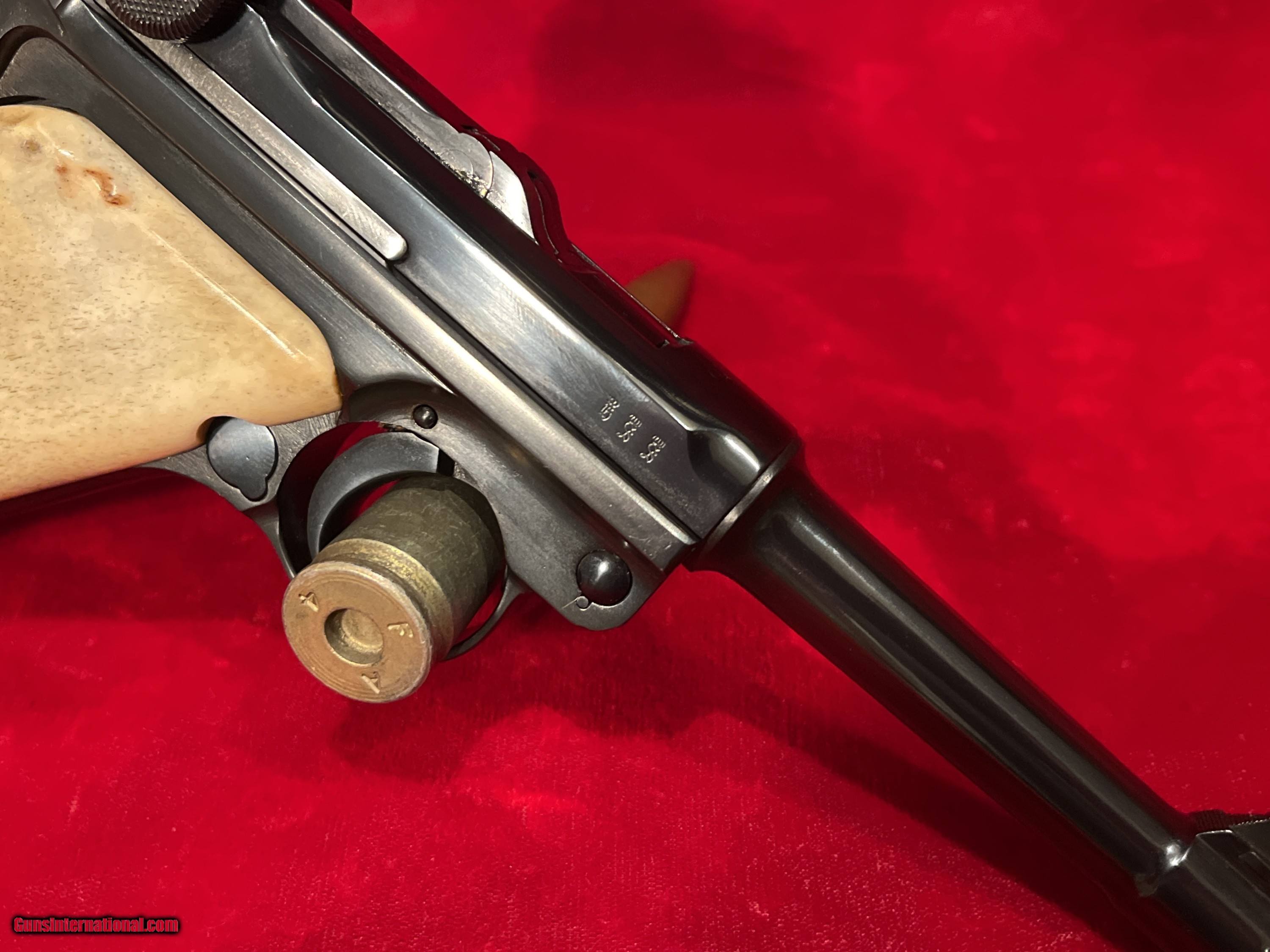 Description: Up for sale we have a DWM Luger 1914 Model Military semi-automatic pistol in 9mm. Serial number - 9985. Mfg Date 1916. This pistol is in great condition and includes an aluminum bottom magazine. The pistol is completely matching for all parts to include the frame, barrel and all other marked parts, 1916 Dated, DWM (Deutsche Waffen und Munitions Fabriken) WWI Imperial Luger. This is chambered for 9mm and has a standard 4 inch (100mm) barrel with fixed sights and custom grips. This WWI Luger was manufactured for standard issue firearm to the German military. A very unique specimen in great mechanical shape and has an amazing bore with a lot of history! As is clearly evident, this Luger was refinished at some point and now bears a brilliant bright belguim style blue vice the original wartime finish. Additionally, the pistol now what appear to be either bone or stag custom grips. The pistol is well done although it probably would have been worth more as a collectible item had it not been refinished. As it stands now, its rather striking in appearance and quite beautiful, just far from original. These series of Lugers were produced from 1914 until 1918 for the German Military. Could have been a "bring back" that got a little too much love at the local gunsmiths shop. It is priced accordingly! Reasonable offers will be considered. To purchase this firearm simply send me a message via GI with your contact info. I will respond via e-mail with all the information required to complete the purchase. If you must contact me via phone, please text. I work a full time job and its not in a gun store. Keep in mind I am on the West coast and if you call me at 4AM before I've had my coffee we will be off to a rough start. I am an FFL. I will provide my FFL with the shipped item. Total price is sales price plus shipping price plus insurance if desired (1.50 per 100 dollars declared value-optional but recommended) . SOLD Curio/Relic: Yes Handgun Caliber: 9x19mm Parabellum (9mm Luger, 9x19mm NATO) |