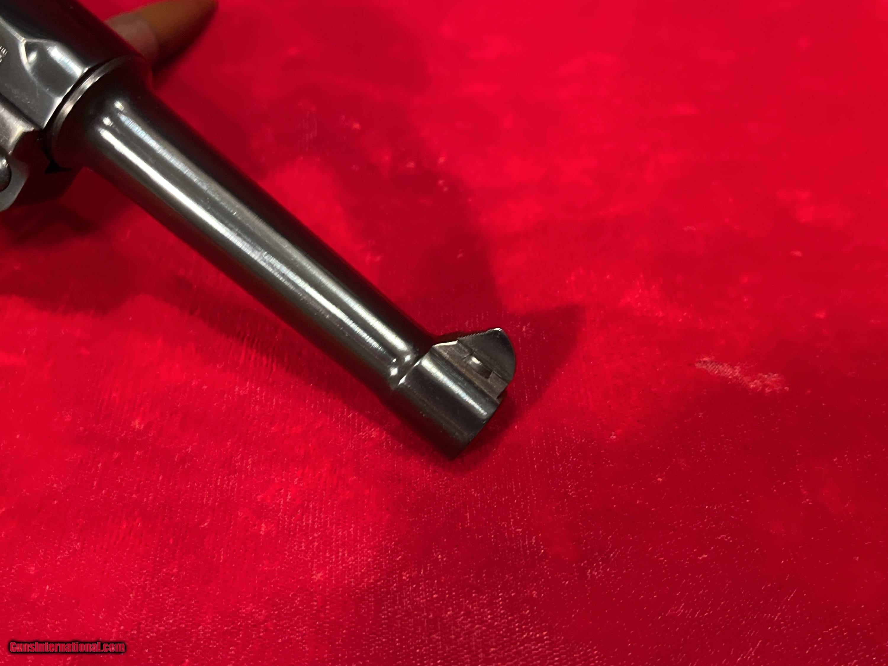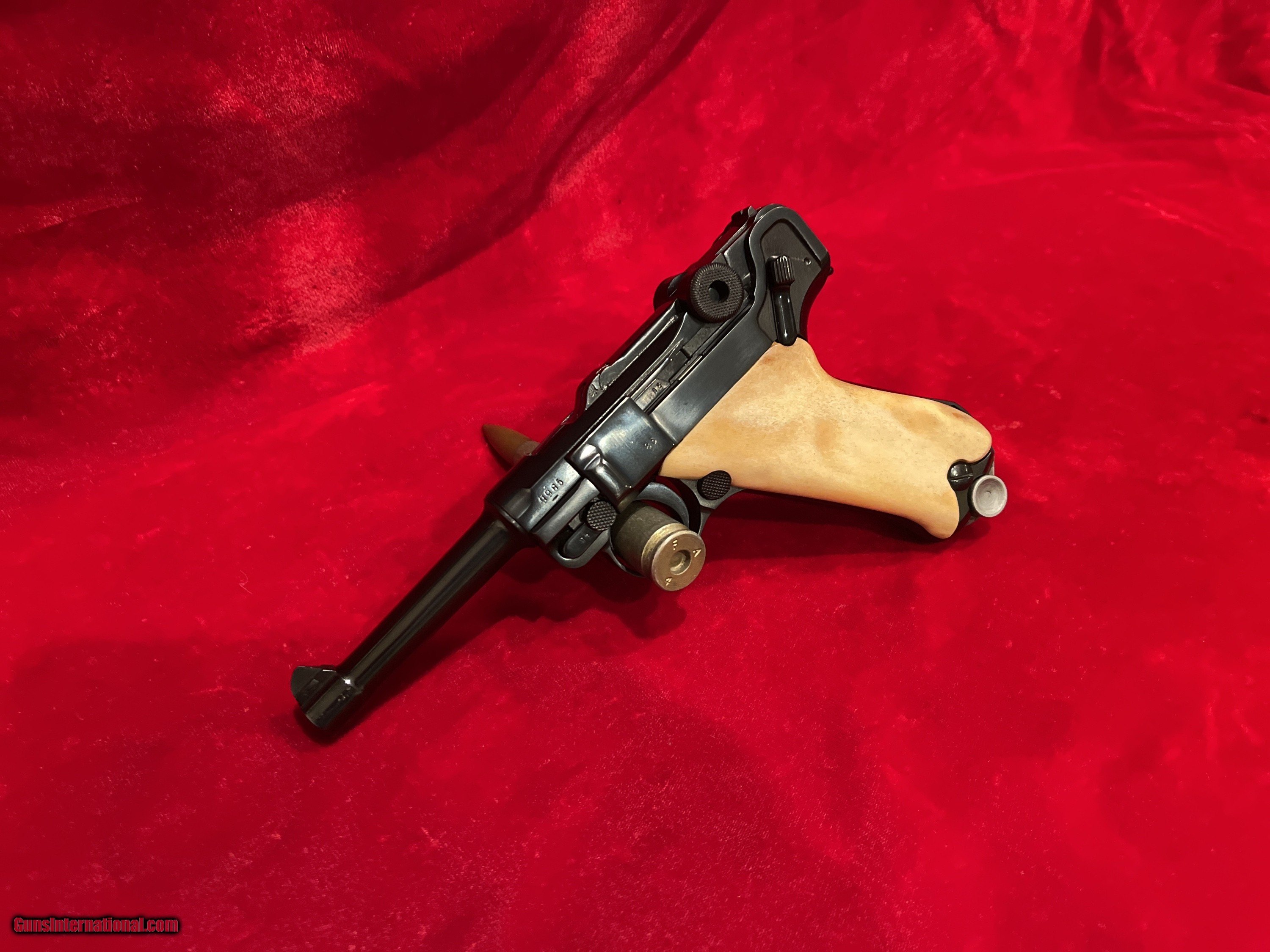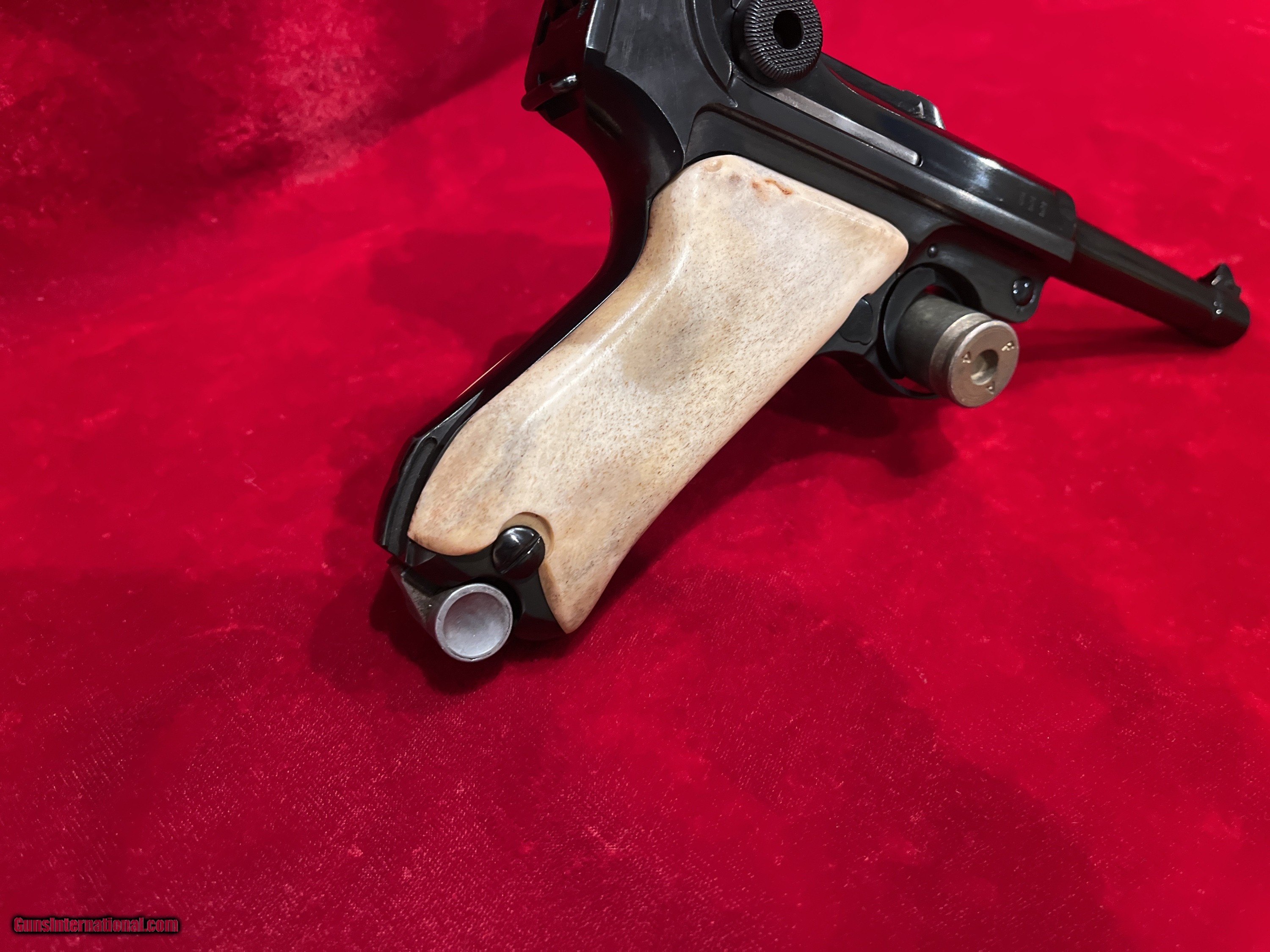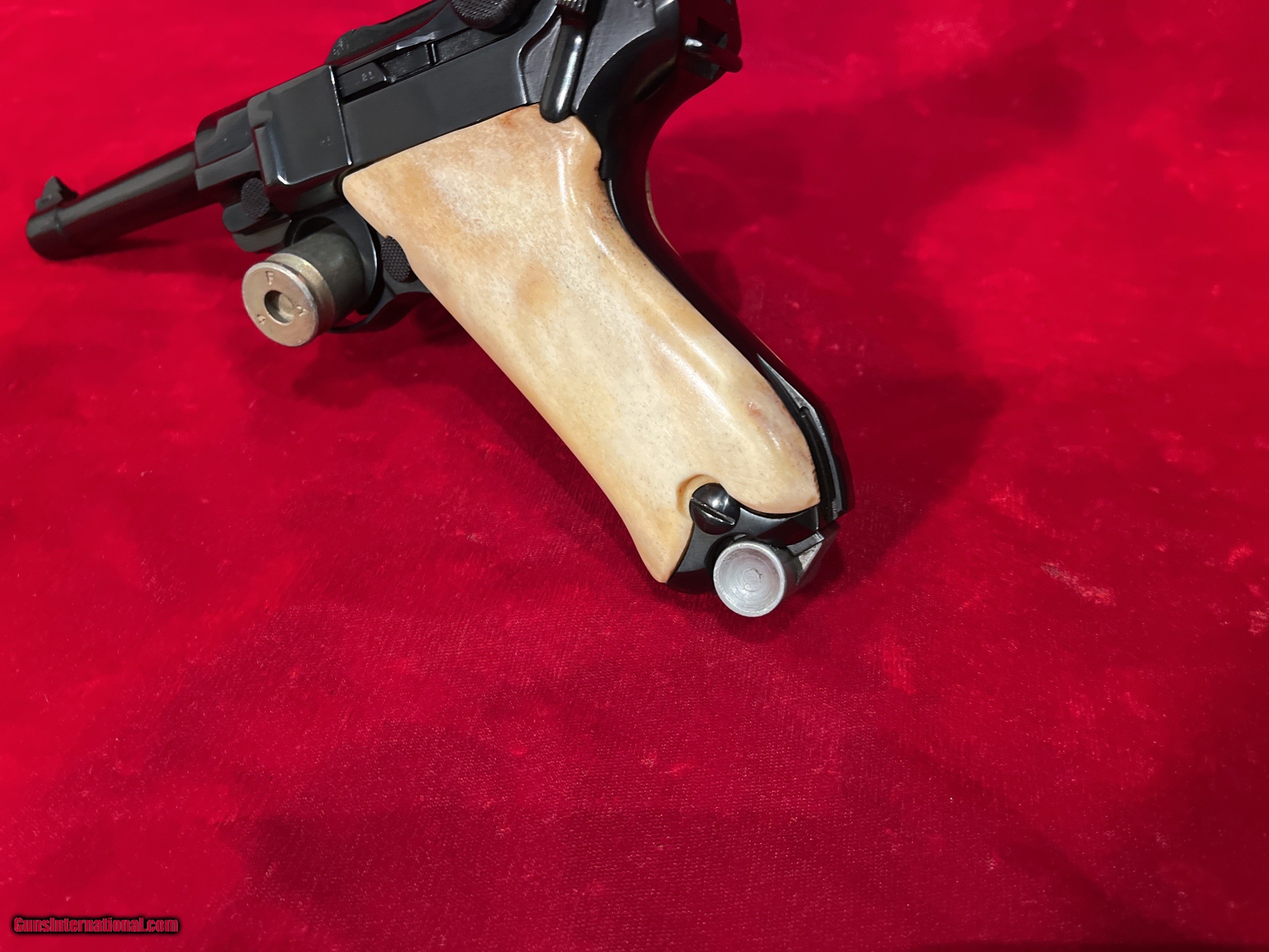 Description: Up for sale we have a DWM Luger 1914 Model Military semi-automatic pistol in 9mm. Serial number - 9985. Mfg Date 1916. This pistol is in great condition and includes an aluminum bottom magazine. The pistol is completely matching for all parts to include the frame, barrel and all other marked parts, 1916 Dated, DWM (Deutsche Waffen und Munitions Fabriken) WWI Imperial Luger. This is chambered for 9mm and has a standard 4 inch (100mm) barrel with fixed sights and custom grips. This WWI Luger was manufactured for standard issue firearm to the German military. A very unique specimen in great mechanical shape and has an amazing bore with a lot of history! As is clearly evident, this Luger was refinished at some point and now bears a brilliant bright belguim style blue vice the original wartime finish. Additionally, the pistol now what appear to be either bone or stag custom grips. The pistol is well done although it probably would have been worth more as a collectible item had it not been refinished. As it stands now, its rather striking in appearance and quite beautiful, just far from original. These series of Lugers were produced from 1914 until 1918 for the German Military. Could have been a "bring back" that got a little too much love at the local gunsmiths shop. It is priced accordingly! Reasonable offers will be considered. To purchase this firearm simply send me a message via GI with your contact info. I will respond via e-mail with all the information required to complete the purchase. If you must contact me via phone, please text. I work a full time job and its not in a gun store. Keep in mind I am on the West coast and if you call me at 4AM before I've had my coffee we will be off to a rough start. I am an FFL. I will provide my FFL with the shipped item. Total price is sales price plus shipping price plus insurance if desired (1.50 per 100 dollars declared value-optional but recommended) . SOLD Curio/Relic: Yes Handgun Caliber: 9x19mm Parabellum (9mm Luger, 9x19mm NATO) |