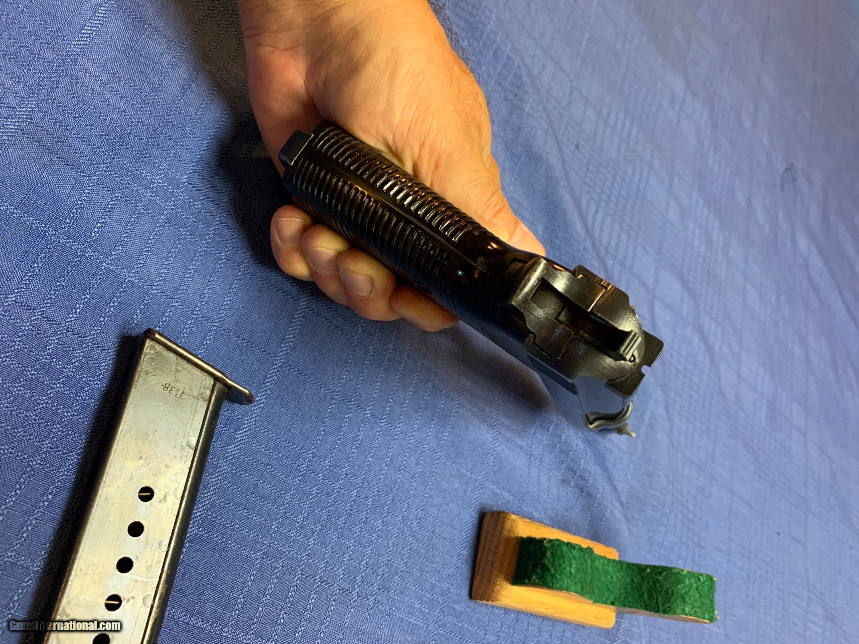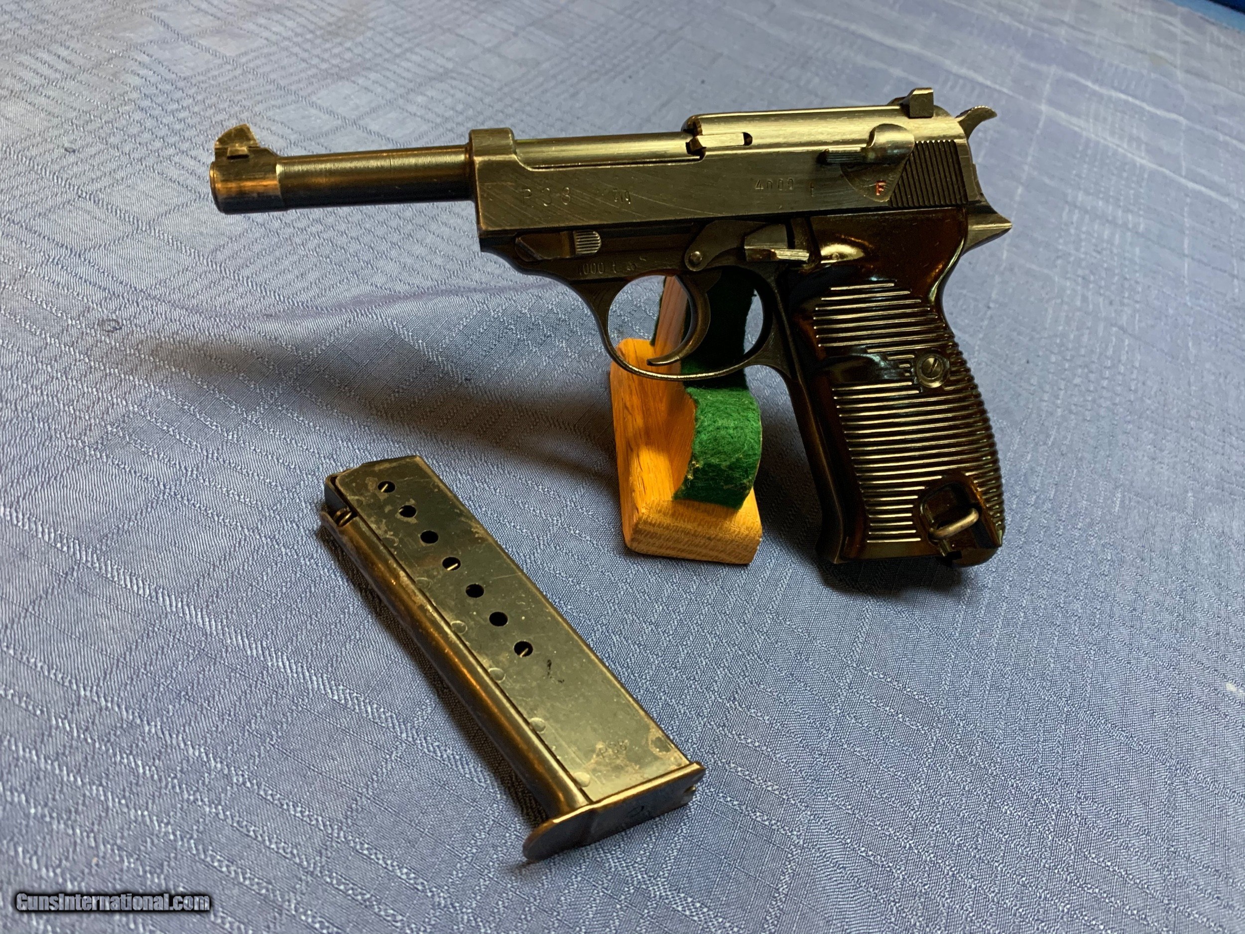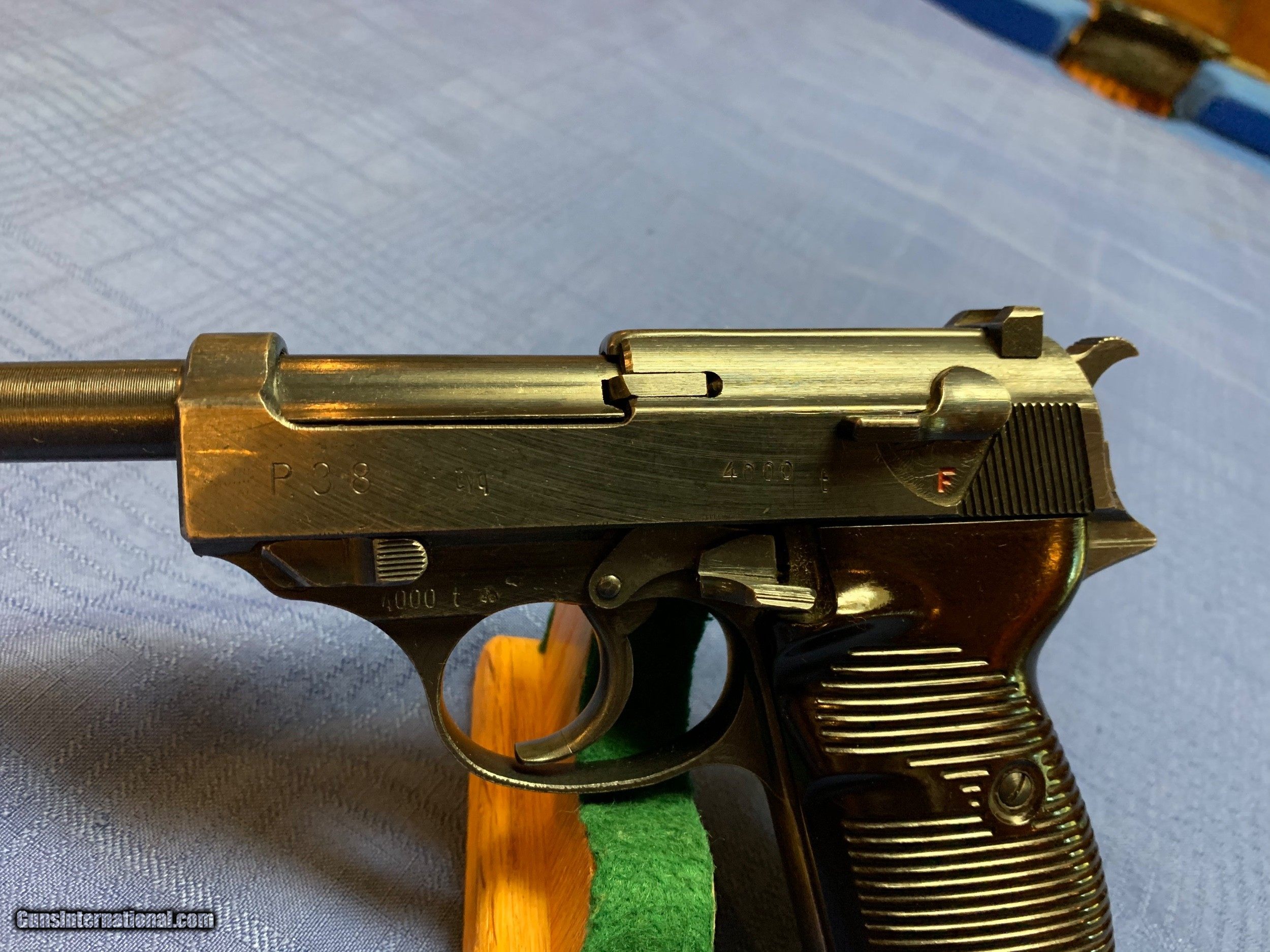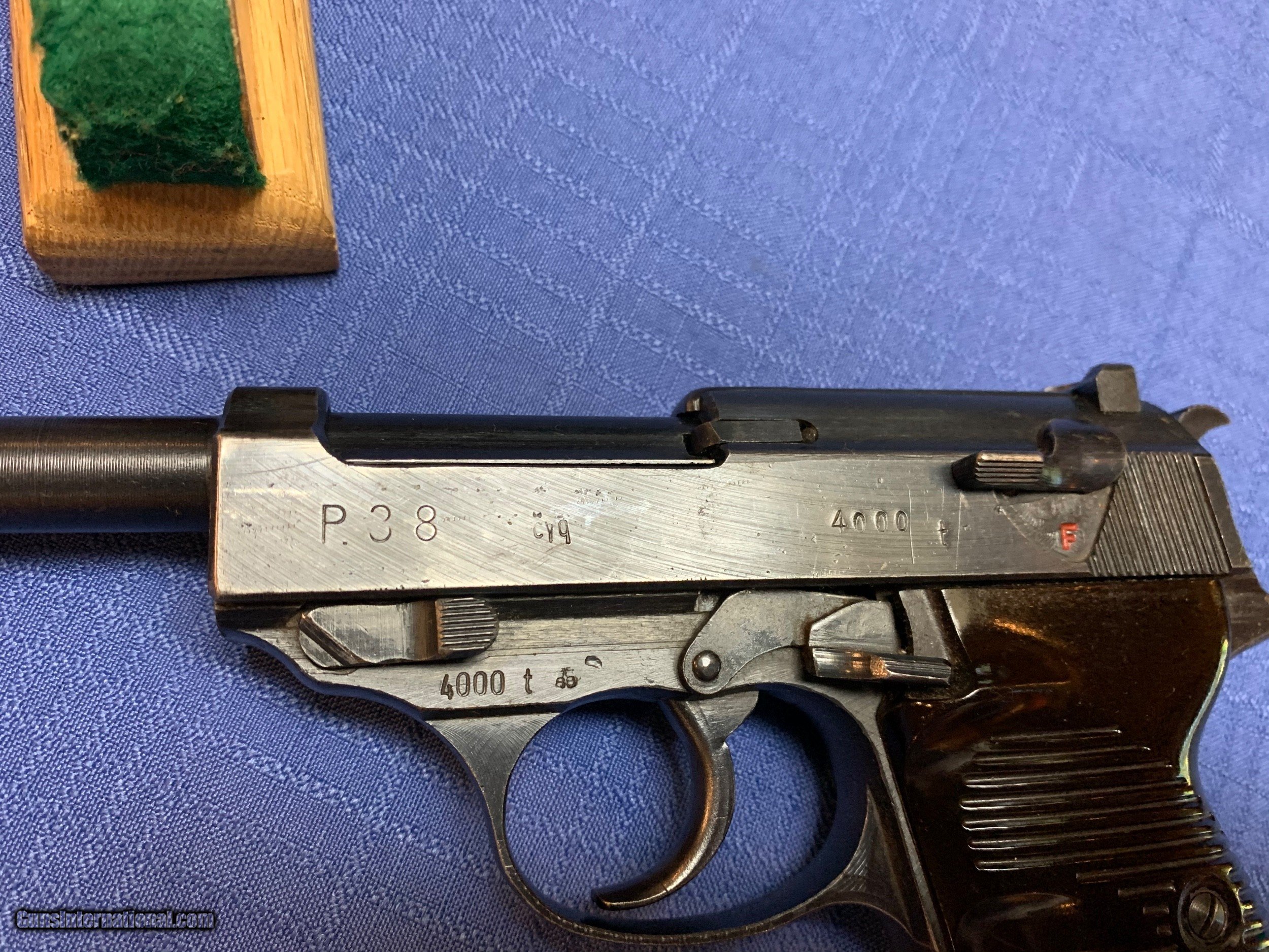 Description: Heres a excellent Example of a WW2 P38 all matching numbers . CYQ Model . Proper Nazi inspector marks . Serial number 4000 . No import marks . Super nice WW2 P38 . Has correct Magazine also Nazi marked . Bore and mechanics are excellent. Please review my photos and email me with any questions ? 3 day inspection . Thank you for looking, Little Jo SOLD Curio/Relic: Yes Manufacturer: CYQ Model: P38 Serial Number: 4000 |
