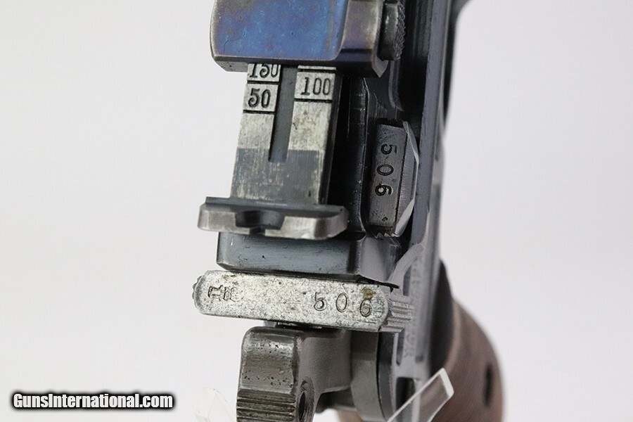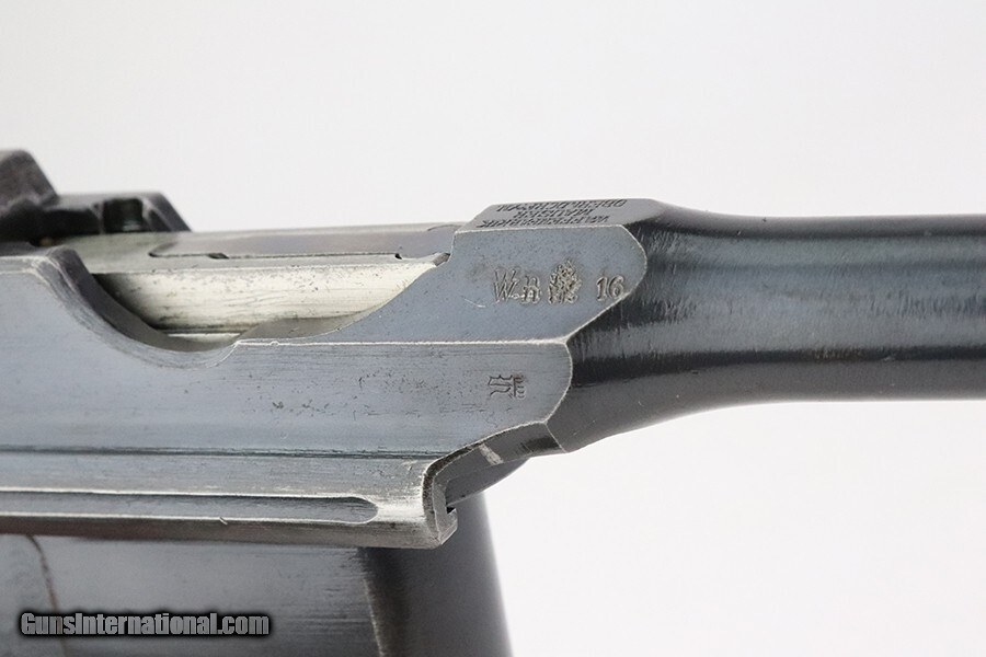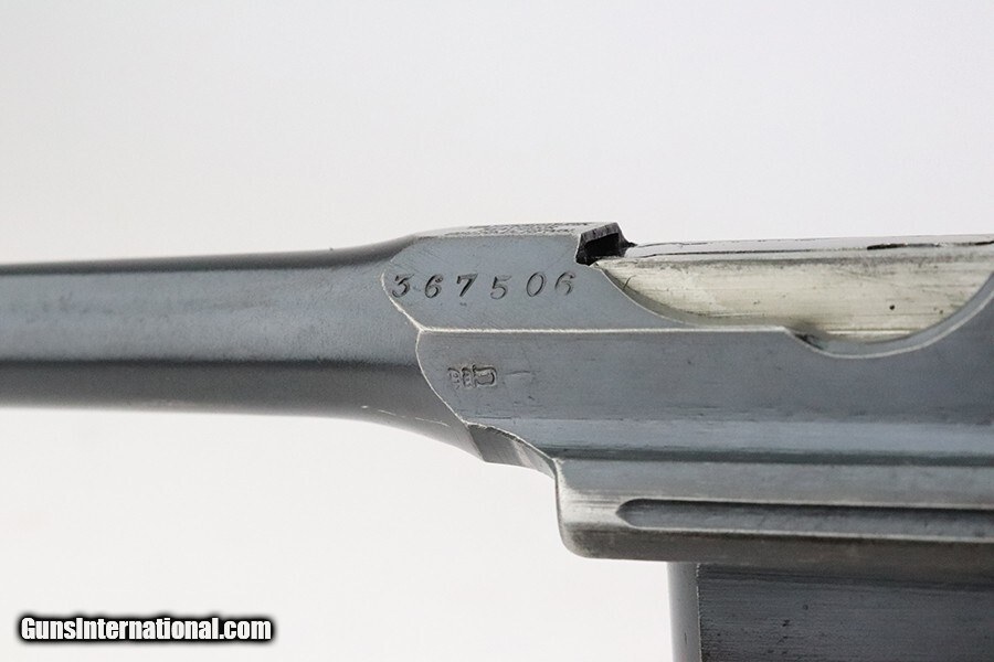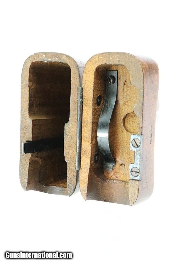 Description: This is a stunning example of an early Mauser C96 Austrian Imperial contract rig made in 1916. This very rare pistol retains around 94-95% of its original blue, with high edge wear and minor thinning/finish loss under the barrel from being stored in its matching shoulder stock. A bit of wear on the underside of the magazine well, and a couple scattered surface scratches/scuffs Austrian contract guns were taken directly from the Imperial German contract, and as a result, have a German acceptance stamp on the right chamber and on the shoulder stock. In addition, an Austrian Imperial proof, consisting of 'W.n.', an Imperial Eagle and the date were struck on the right diagonal flat over the chamber. Same proof was repeated on the lid of the shoulder stock. The gun is all matching and has an excellent bore and grips, with plenty of fire blue left on the small parts. Matching shoulder stock is equally fantastic shape, with no cracks and both Austrian and German acceptance marks crisply visible. The stock push button is fully functional but slightly tight. Curio/Relic: Yes Handgun Caliber: 7.63x25mm Mauser (30 Mauser) Price: $5,995.00 Contact Seller |