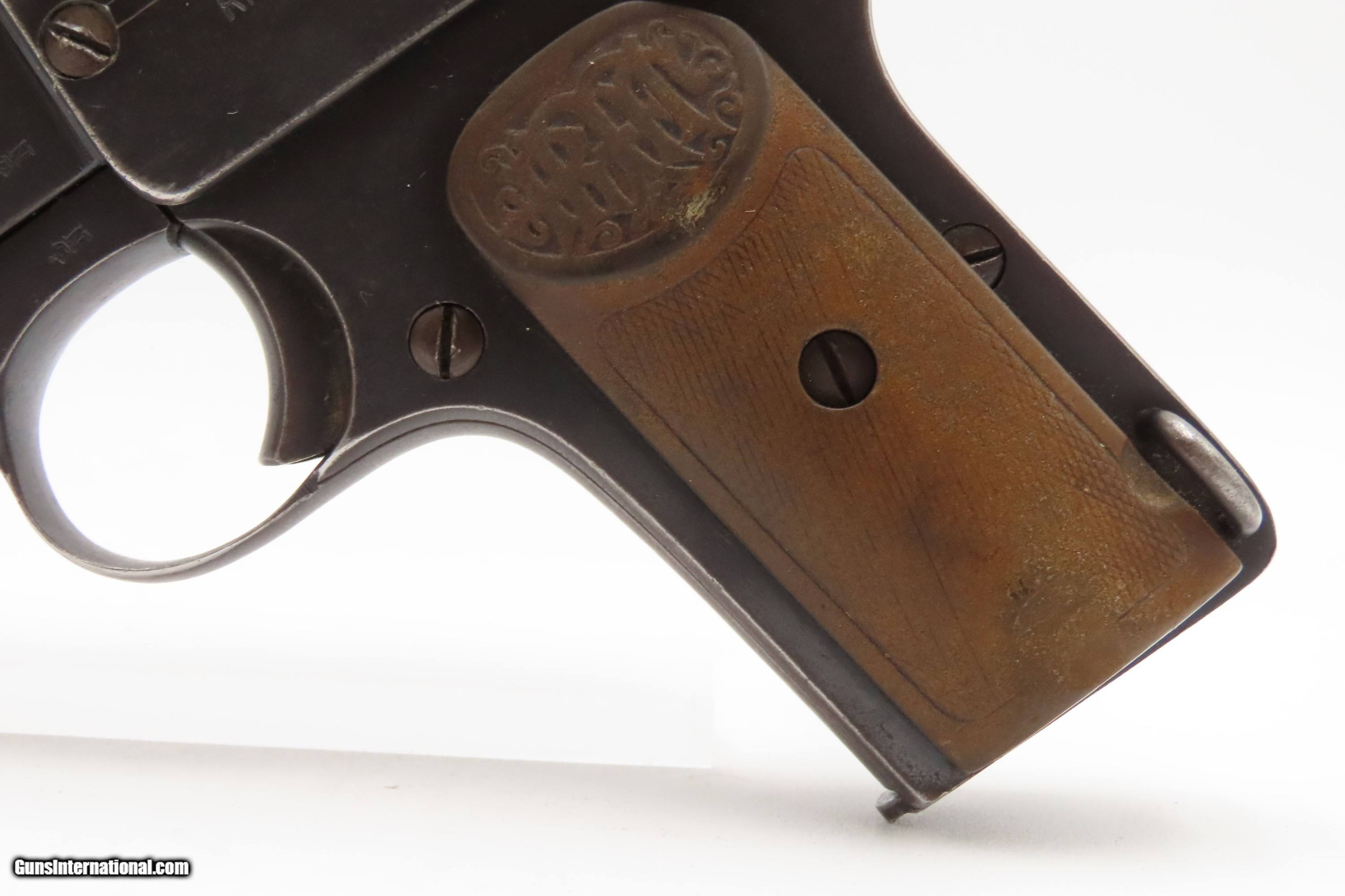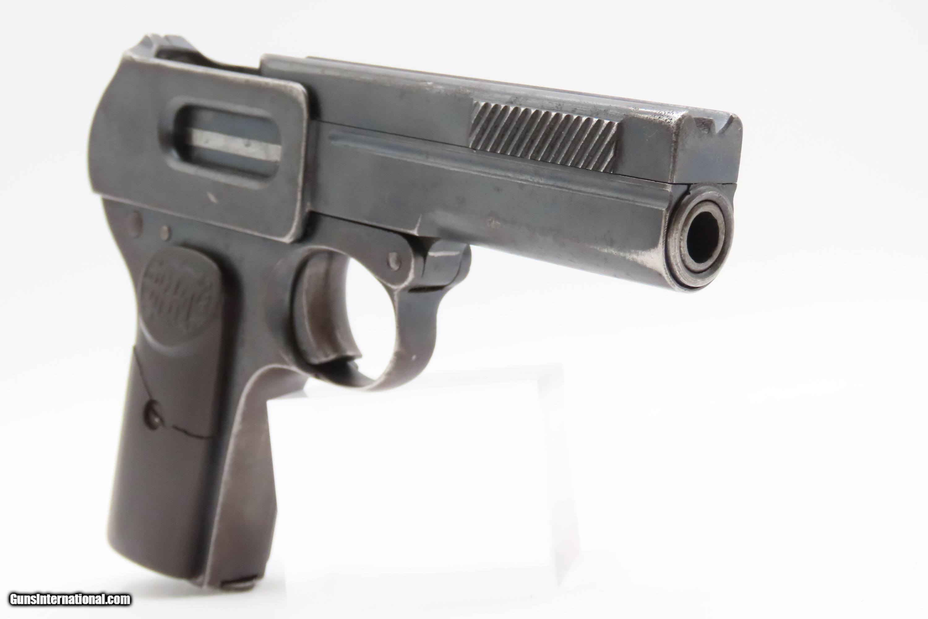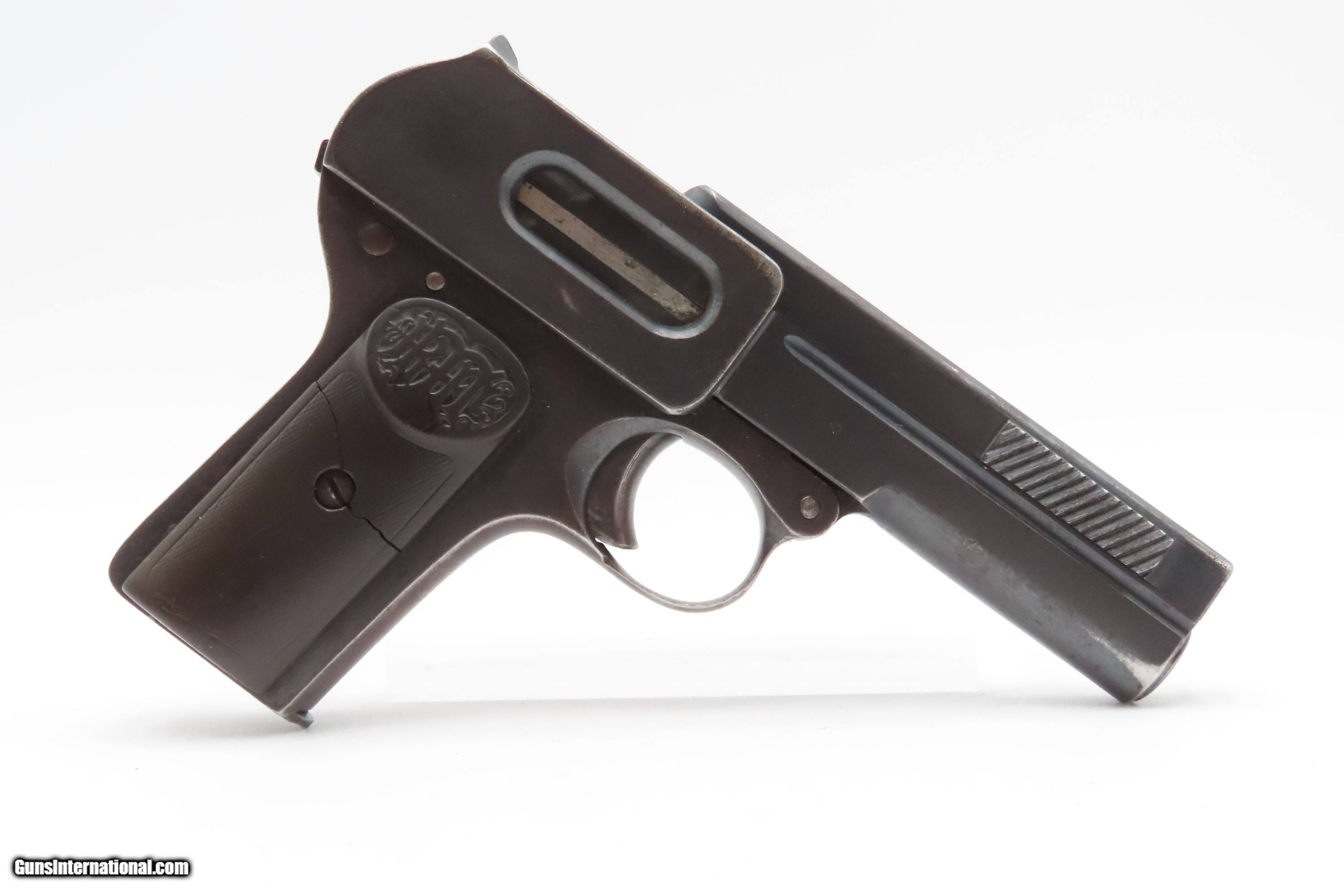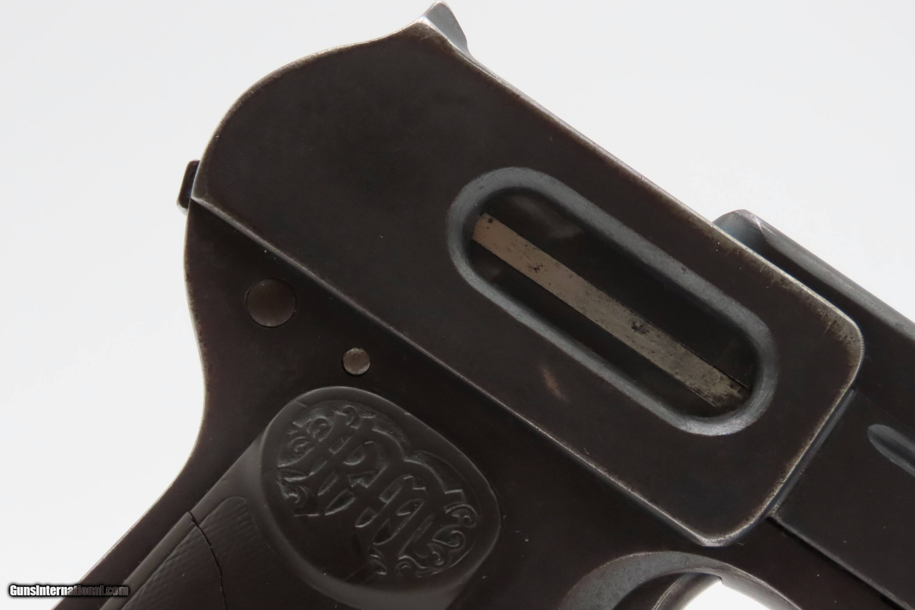 Description: RHEINMETALL Dreyse M1907 7.65 Semi-Automatic SELF-DEFENSE Pistol C&R Small Conceal & Carry Pistol Made Circa 1910 Here we present a C&R Rheinmetall Dreyse Model 1907 Semi-Automatic Pistol, made circa 1910 in Sömmerda, Germany with a production run between 1907 and 1915. The Rheinische Metallwaaren & Maschinenfabrik (RM&M, later known as Rheinmetall) of Sömmerda was an engineering firm founded in 1889 that primarily made field artillery. In 1901 they purchased Waffenfabrik von Dreyse, a manufacturer of sporting rifles and revolvers which had fallen on hard times. Thereafter, RM&M used the Dreyse name for its small arms production, including machine guns and pistols. The Waffenfabrik von Dreyse was founded around 1841 to manufacture the famous Dreyse Needle gun for the Prussian Army, and they also made needle-pistols and caplock revolvers. The Dreyse Factory went into decline after the German Army adopted the Mauser in 1872. The Dreyse Model 1907 is a semi-automatic pistol designed by Louis Schmeisser. The gun was named after Nikolaus von Dreyse, the designer of the Dreyse Needle Gun. The pistol had an interesting feature for the time, that when the gun was ready to fire, the firing pin projected through the back of the breech block, serving as an early handgun-cocking indicator. The pistol and its derivatives, which were the Dreyse Model 1907 Pocket Pistol and the Dreyse Model 1912 Parabellum, all had a simple blowback recoil operation, though of unusual design. The same company also manufactured a 6.35mm pocket version (also named Model 1907). In 1912 the 9 mm Parabellum Dreyse Model 1912 emerged as the gun's successor. Marked as the RM & M Dreyse, it was chambered for 9mm Parabellum. The overall condition is fine. Original finished is preserved. Strong action. The bore has dimmed with no remaining shimmer and is thinly rifled. Markings are sharp. The right grip is cracked and has a bit of wiggle. The left side is solid. Numbers match. “GERMANY” marked left slide. Own the original! This firearm is classified as a Curio & Relic. Barrel is 3-3/4 inches. Caliber: 7.65mm Auto (.32 ACP) Overall condition as seen in photos. Very Fast. Very Safe. FREE SHIPPING. Will need to be sent to your local FFL or C&R licensee. This firearm is classified as a Curio & Relic. Guaranteed AUTHENTIC & Includes CERTIFICATE OF AUTHENTICITY. ancestryguns $1200 #250036 SOLD Curio/Relic: Yes |